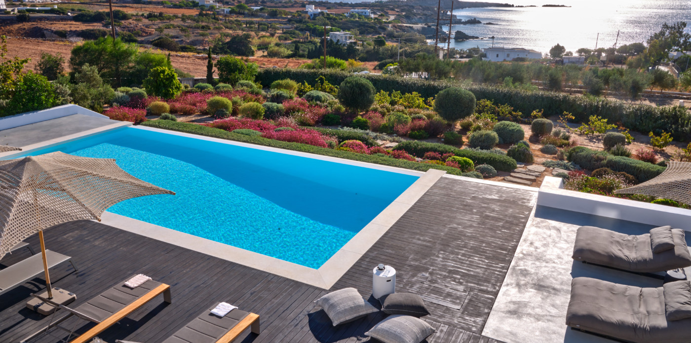 Πέτρινα μονοπάτια οδηγούν γύρω από το ακίνητο μέσα από έναν μεσογειακό κήπο με νησιώτικη βλάστηση και αρωματικά βότανα. Η θέα στη θάλασσα θα σας ενθουσιάσει όλες τις ώρες της ημέρας.