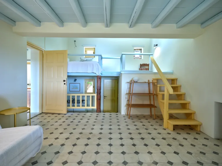 Σχεδιασμένο από διάσημο Έλληνα αρχιτέκτονα, το Aroma σας καλωσορίζει σε ένα καθιστικό με εντυπωσιακό τζάκι που περιβάλλεται από ενσωματωμένες βιβλιοθήκες, μια τραπεζαρία με δοκάρια στην οροφή και μια ζεστή κουζίνα. Το κύριο επίπεδο ανοίγει στη βεράντα, όπου μπορείτε να απολαύσετε ειδυλλιακή, γραφική θέα. Επιπλέον, υπάρχουν επτά υπνοδωμάτια με ιδιωτικό μπάνιο και δύο ανεξάρτητες σουίτες επισκεπτών, με δική τους μικρή κουζίνα.