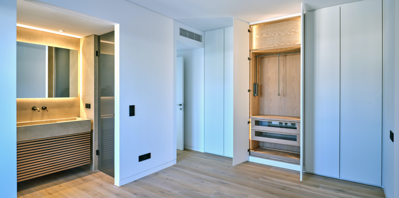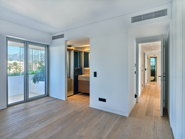 Οι πολυπόθητοι εσωτερικοί χώροι του διαμερίσματος του 3ου ορόφου διαθέτουν ένα κύριο υπνοδωμάτιο με ιδιωτικό μπάνιο, δύο υπνοδωμάτια με κοινό μπάνιο, έναν ευρύχωρο ενιαίο χώρο καθιστικού-τραπεζαρίας και μια εκτεταμένη ανοιχτή κουζίνα. Πολυτελείς ανέσεις, όπως έξυπνες οικιακές λειτουργίες, ενδοδαπέδια θέρμανση και συσκευές υψηλής ποιότητας της Gaggenau, καθιστούν το Atrium ένα σύγχρονο θαύμα που ταιριάζει απόλυτα σε κάθε ιδιοκτήτη σπιτιού.