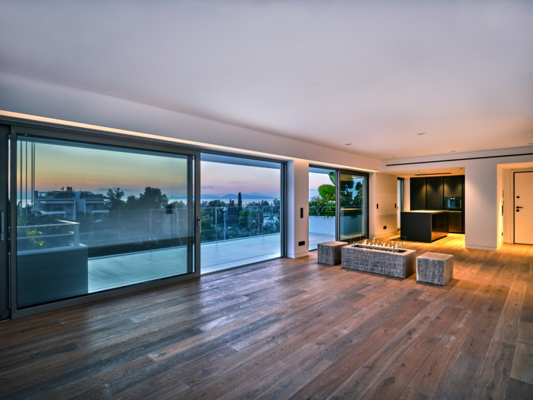 Οι εξωτερικοί χώροι διαβίωσης περιβάλλουν το διαμέρισμα με τη μορφή ευρύχωρων μπαλκονιών, που είναι ιδανικά για ώρες χαλάρωσης στον ελκυστικό καιρό της Αθηναϊκής Ριβιέρας. Απολαύστε τον υπέροχο ελληνικό ήλιο και τη θέα στη θάλασσα την ημέρα, προτού εγκατασταθείτε για μια θεαματική προβολή του ηλιοβασιλέματος τα βράδια.