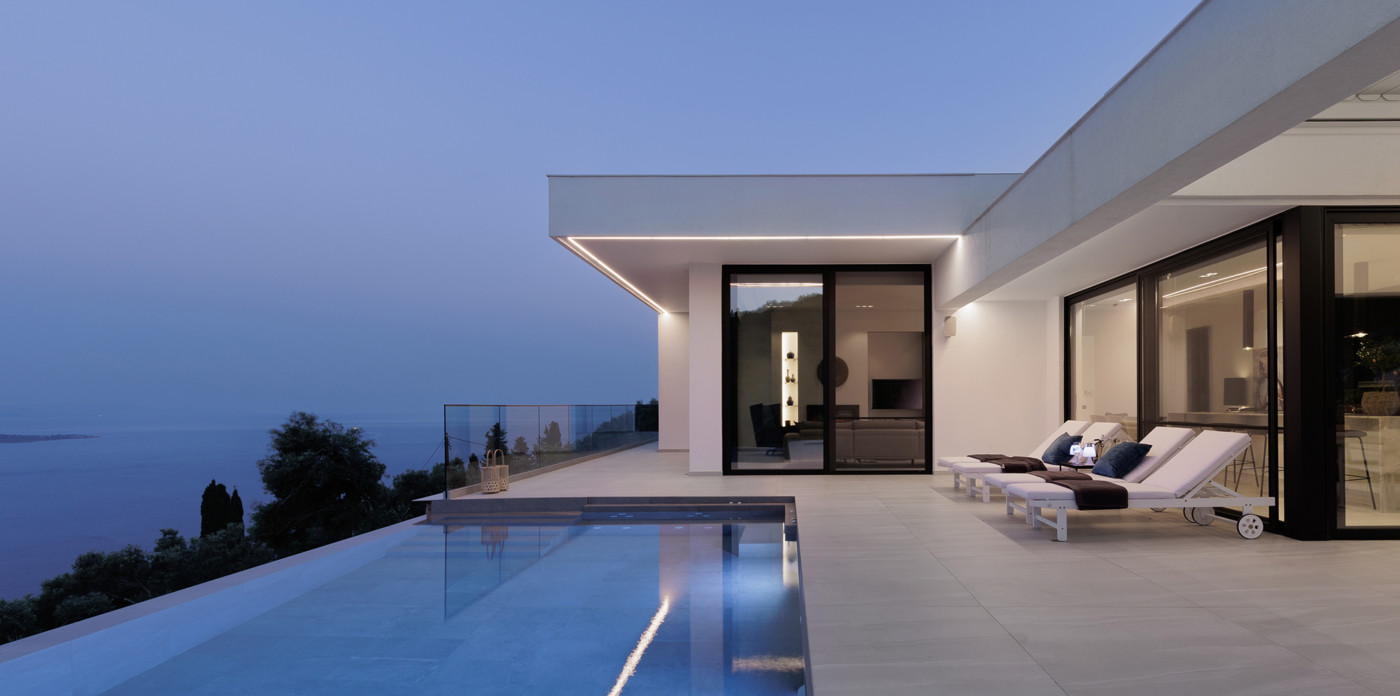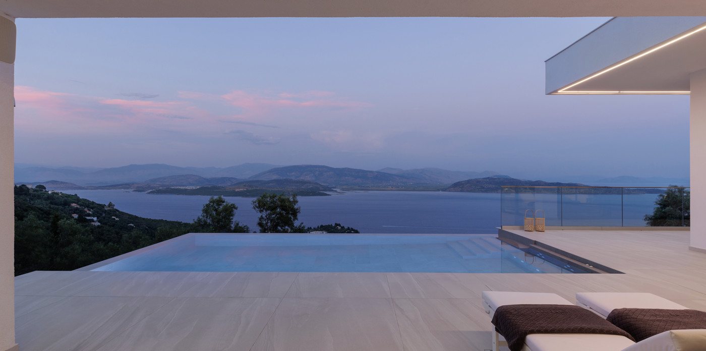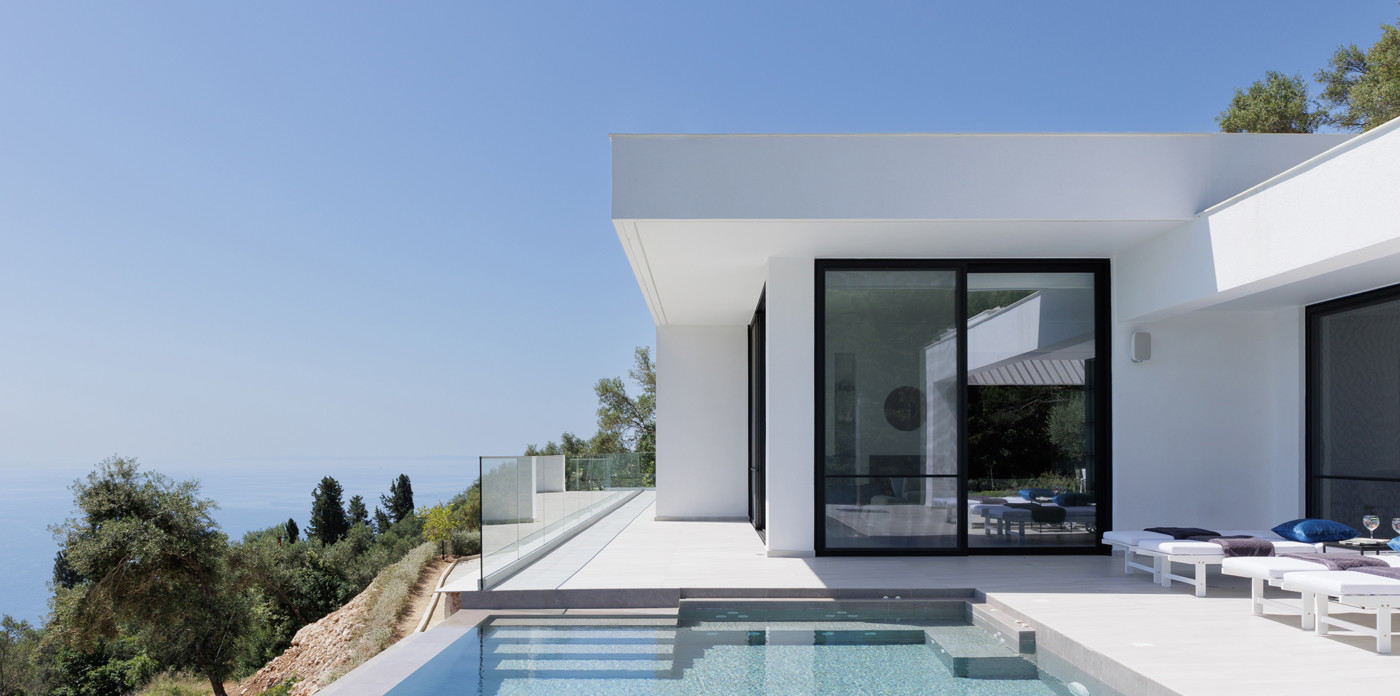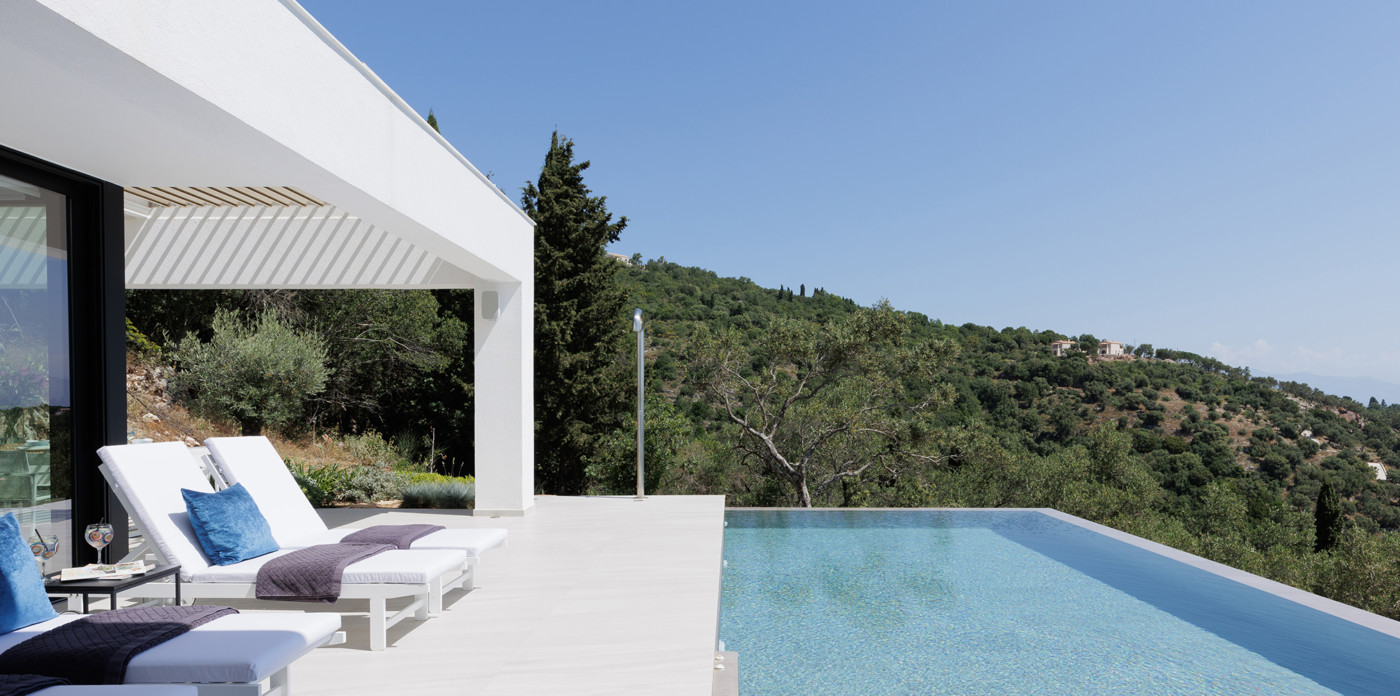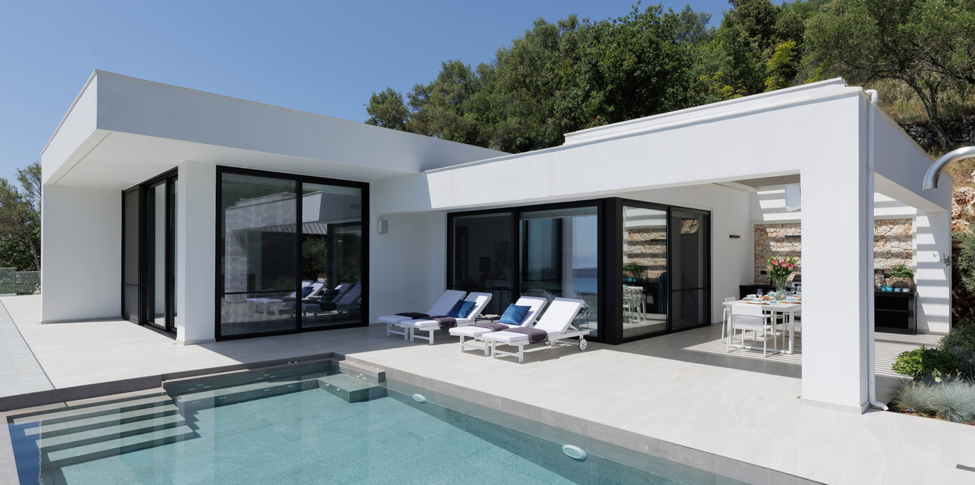 Η πανοραμική θέα του ακινήτου είναι απλά εντυπωσιακή, ενσωματώνοντας τα διάσημα σμαραγδένια νερά του Ιονίου με τα καταπράσινα τοπία της βορειοανατολικής ακτής.