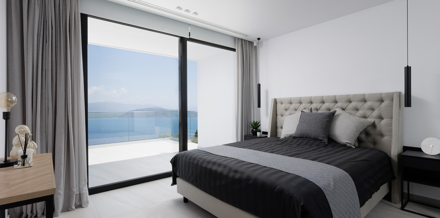 Η βίλα διαθέτει 3 υπνοδωμάτια με ιδιωτικό μπάνιο, με άμεση πρόσβαση σε μια μεγάλη βεράντα που προσφέρει πανοραμική θέα στη θάλασσα.