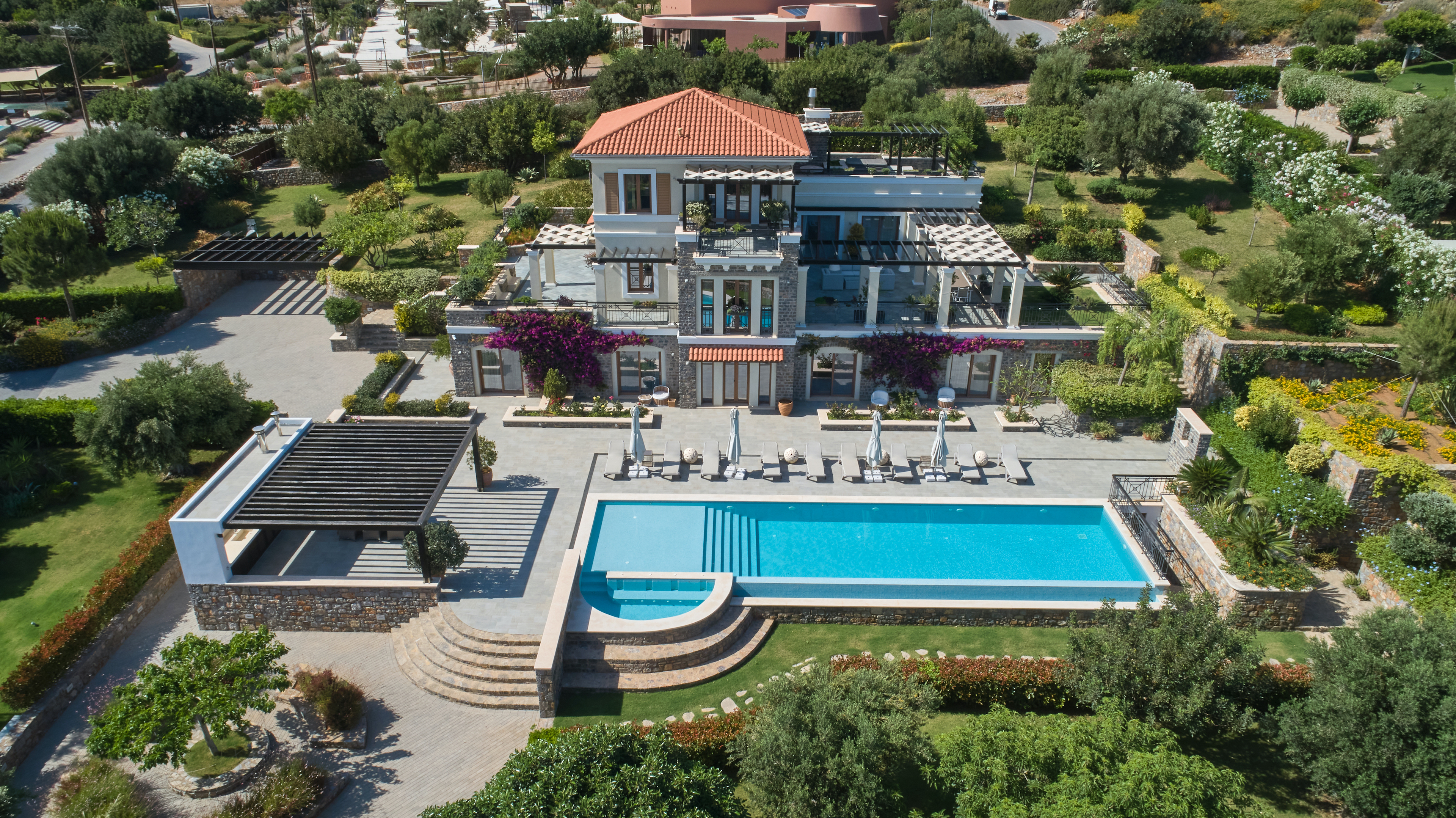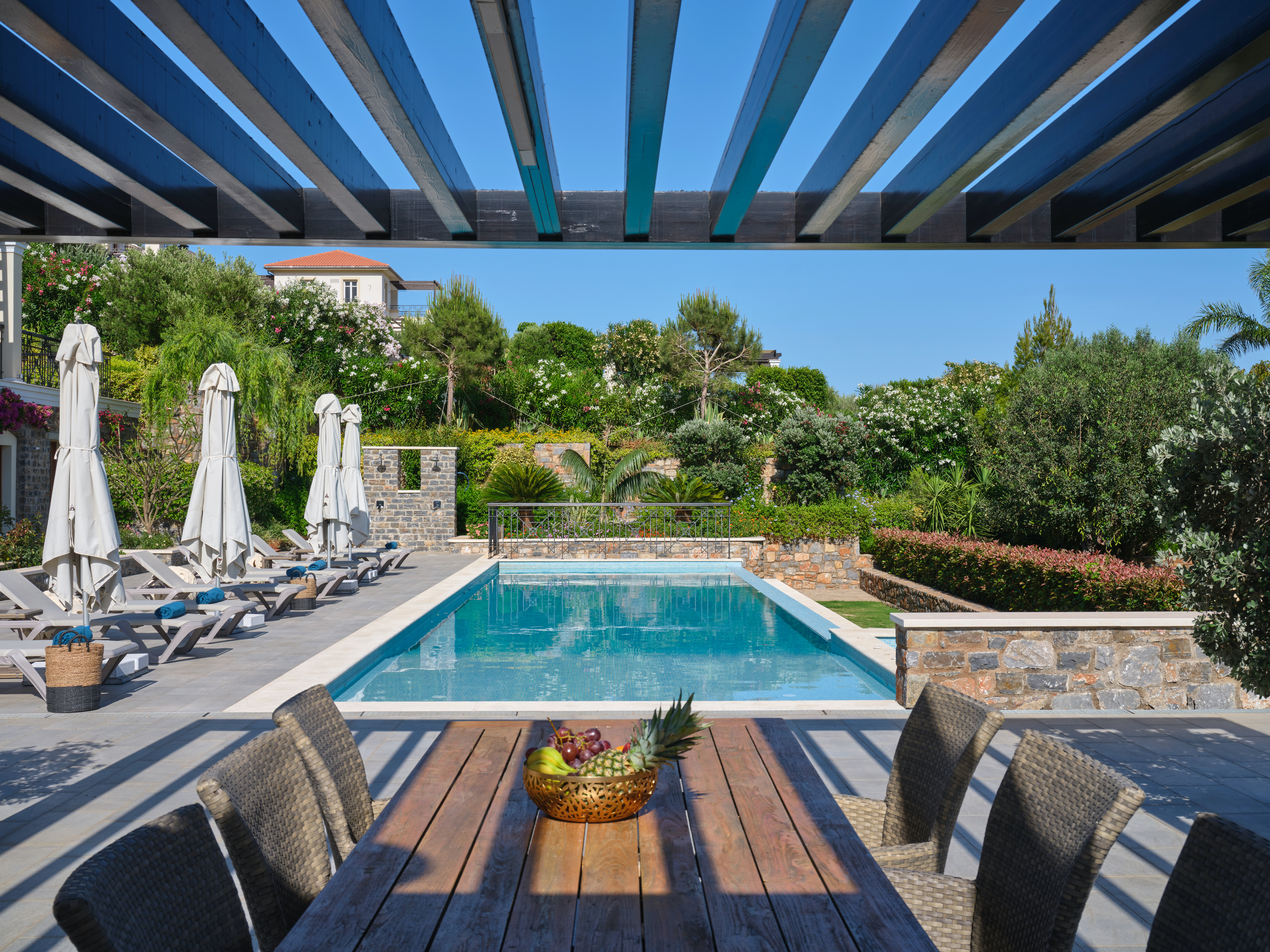 Οι μοντέρνες γραμμές συναντούν την εξαιρετική κομψότητα και περιλαμβάνουν ένα καθιστικό με τραπεζαρία, μια πλήρως εξοπλισμένη κουζίνα και πέντε υπνοδωμάτια με ιδιωτικό μπάνιο. Ετοιμάστε τοπικά προϊόντα στο υπαίθριο μπάρμπεκιου και απολαύστε τα στο πέτρινο τραπέζι δίπλα στην πισίνα. Η πισίνα έχει γλυκό νερό και πλαισιώνεται από ένα ευρύχωρο κατάστρωμα.