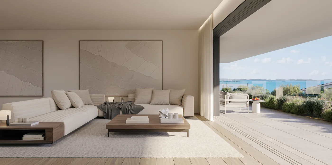 Η Cabana βρίσκεται στον δεύτερο όροφο, διαθέτει ένα κομψό και λαμπερό σαλόνι, τρία ευρύχωρα υπνοδωμάτια και λειτουργίες έξυπνου σπιτιού τελευταίας τεχνολογίας, και έχει απαράμιλλη βαρύτητα. Με καθαρές γραμμές και ουδέτερα χρωματικά ένθετα, η πλούσια φύση της Μεσογείου ακτινοβολεί σε κάθε δωμάτιο.