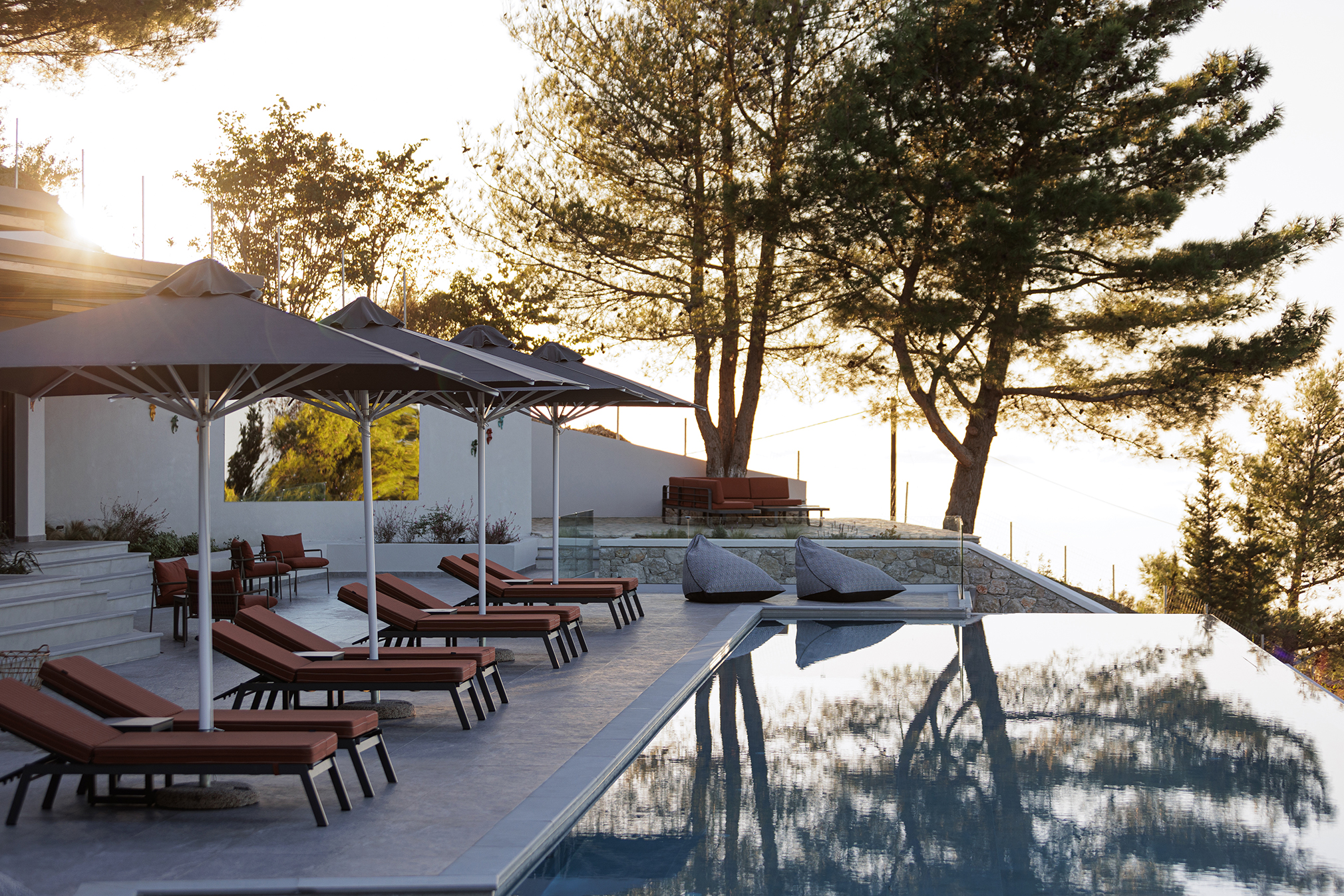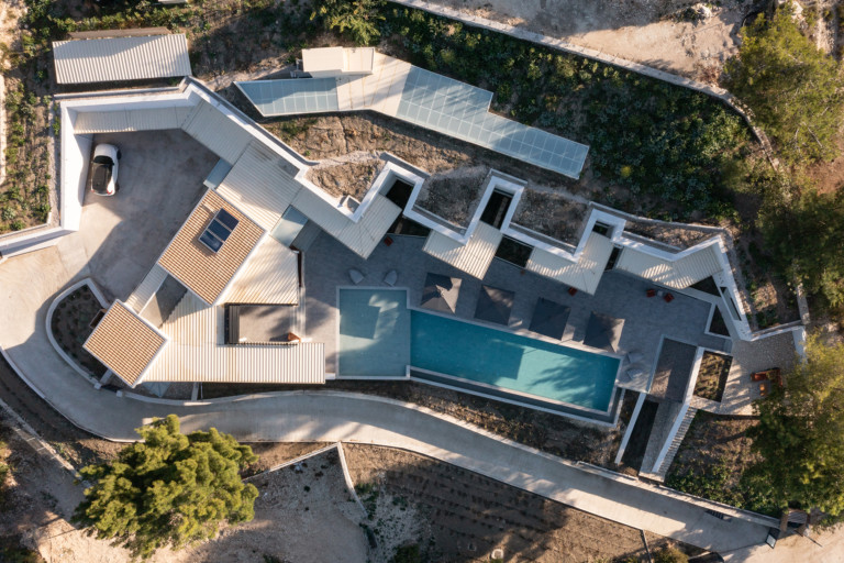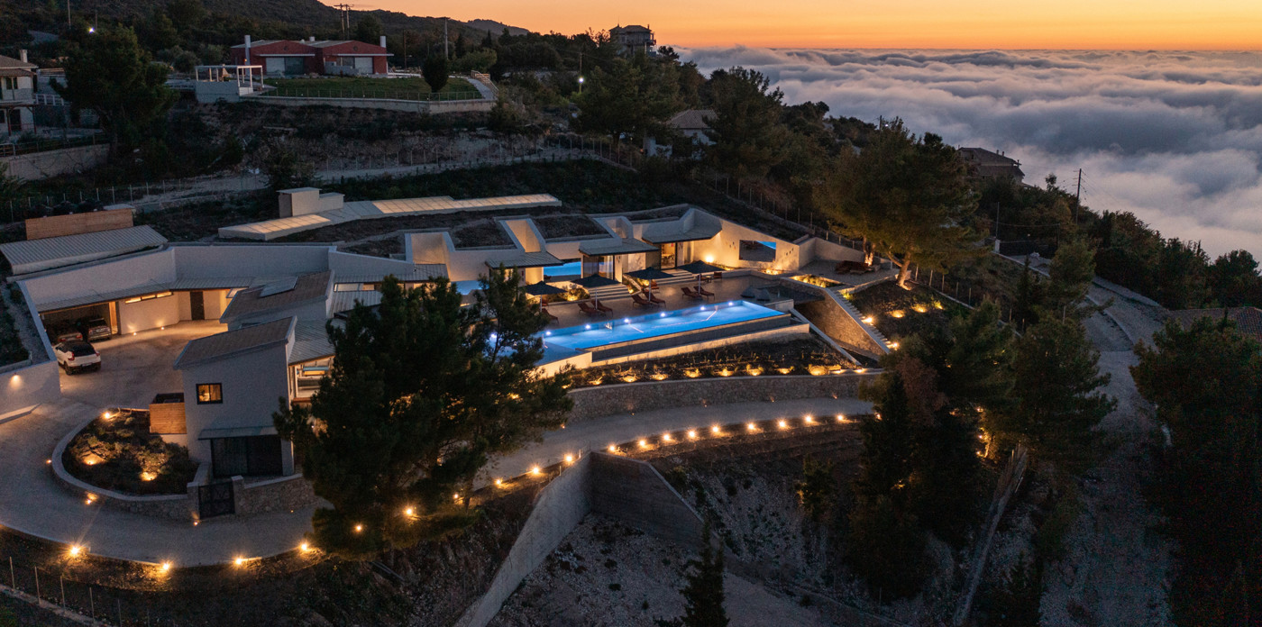 Καλώς ήρθατε στον Κάδμο, μια κομψή, υπόγεια βίλα με θέα στη θάλασσα μέχρι εκεί που φτάνει το μάτι.