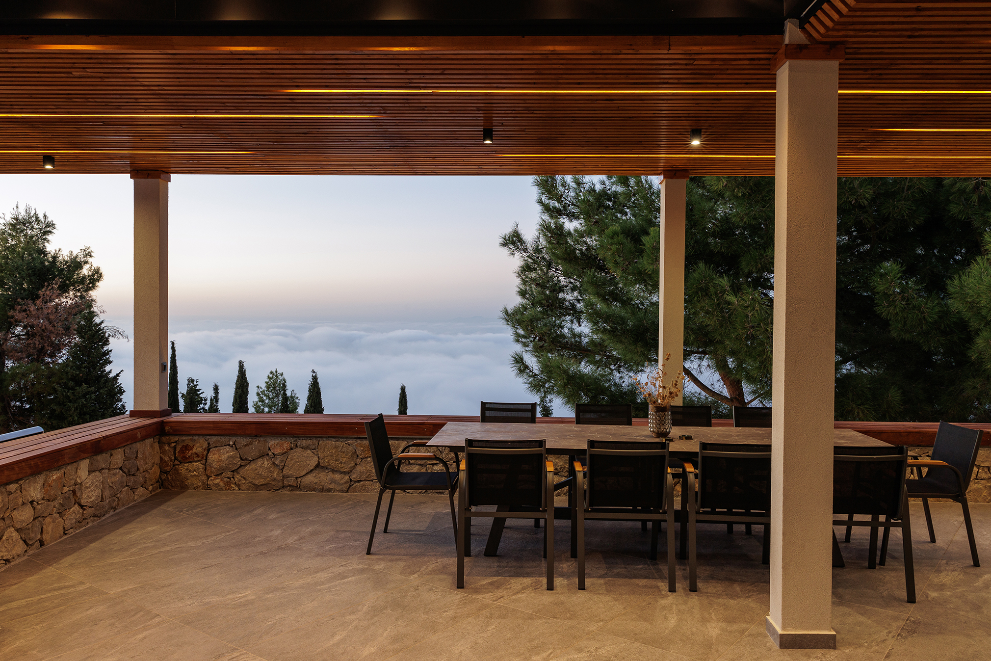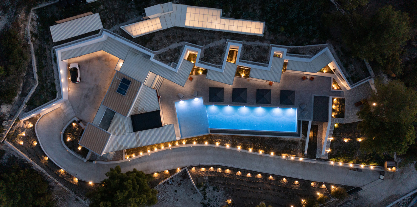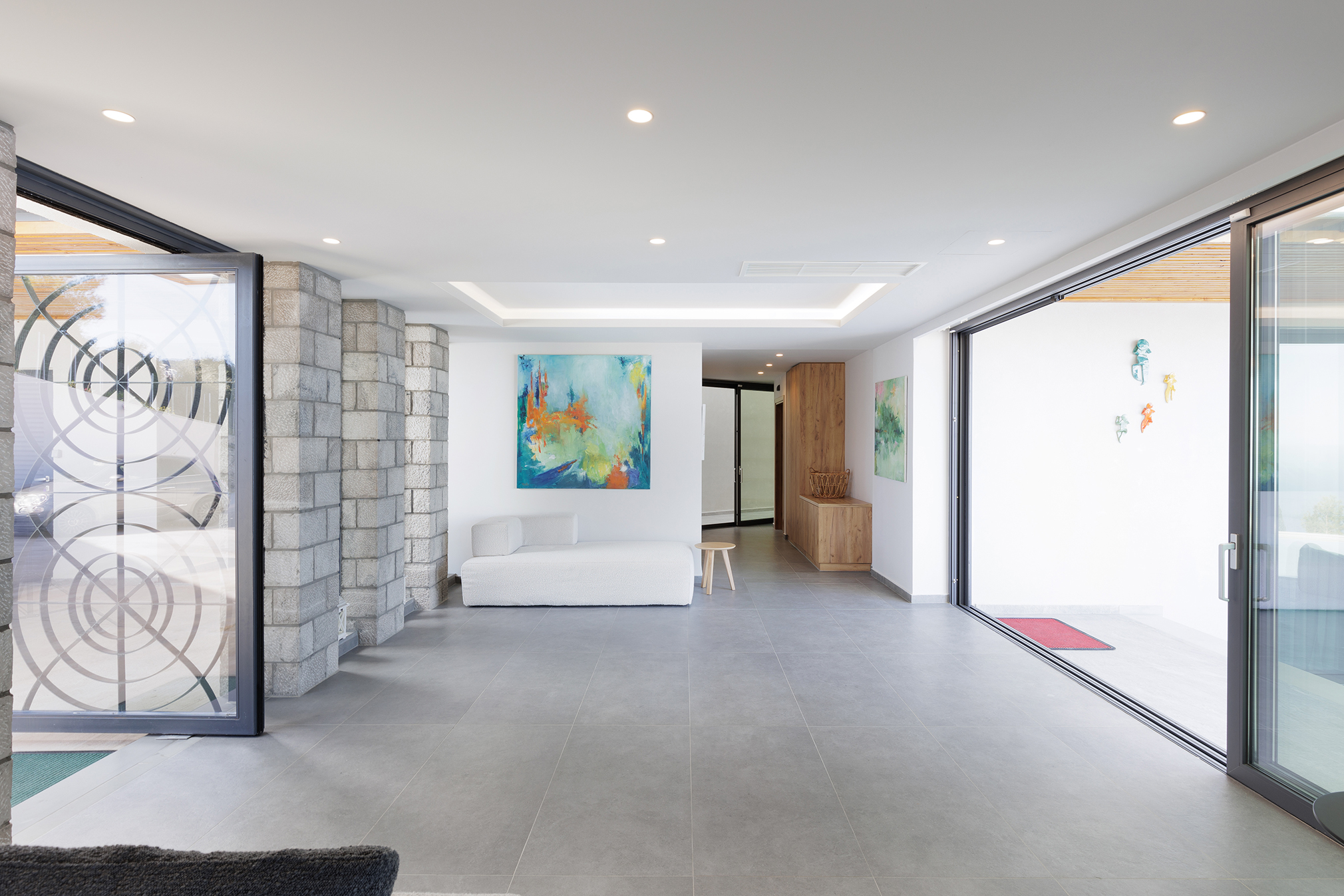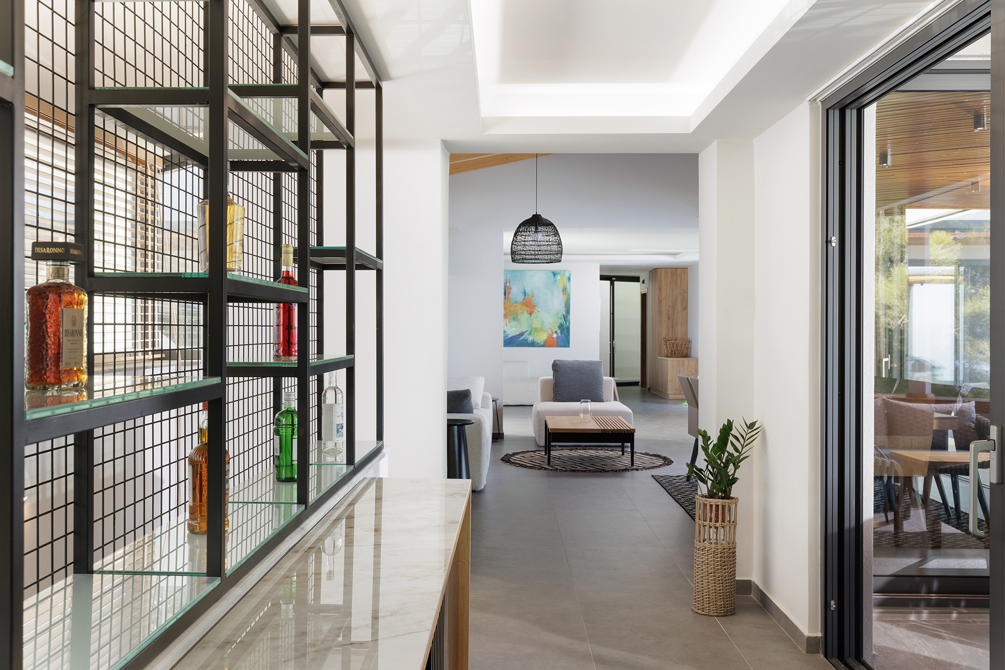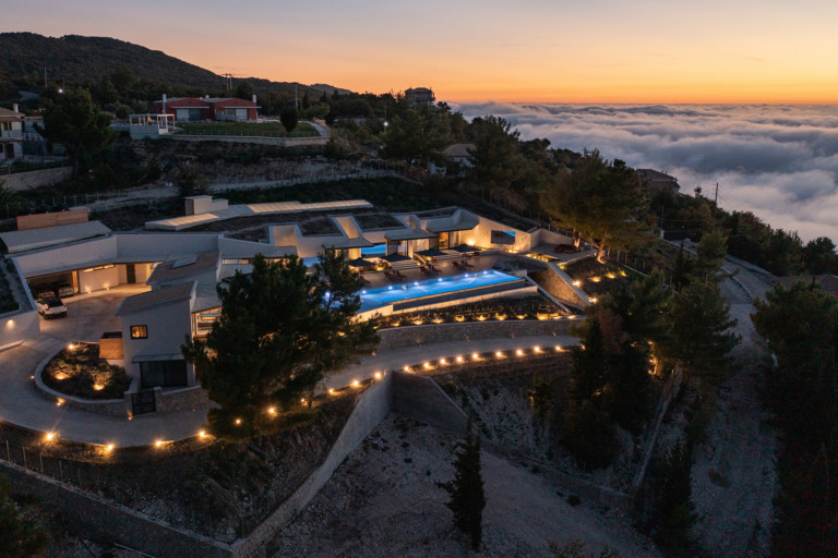 Η διαμονή είναι πλήρης με ανοιχτή μοντέρνα κουζίνα και τραπεζαρία, ένα άνετο σαλόνι και έξι φωτεινά υπνοδωμάτια με μεγάλα παράθυρα σε όλα, αποκαλύπτοντας το εντυπωσιακό πανόραμα της Μεσογείου.