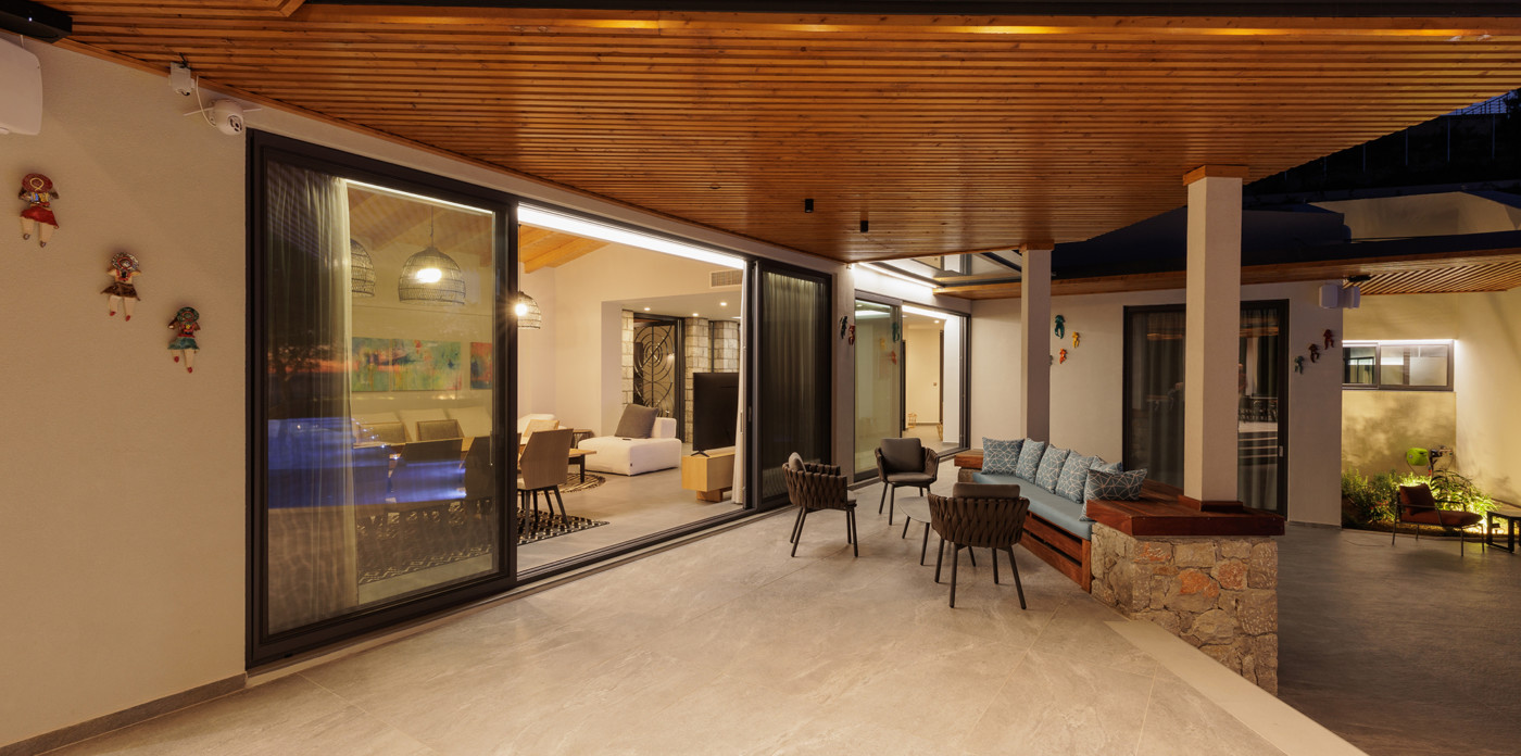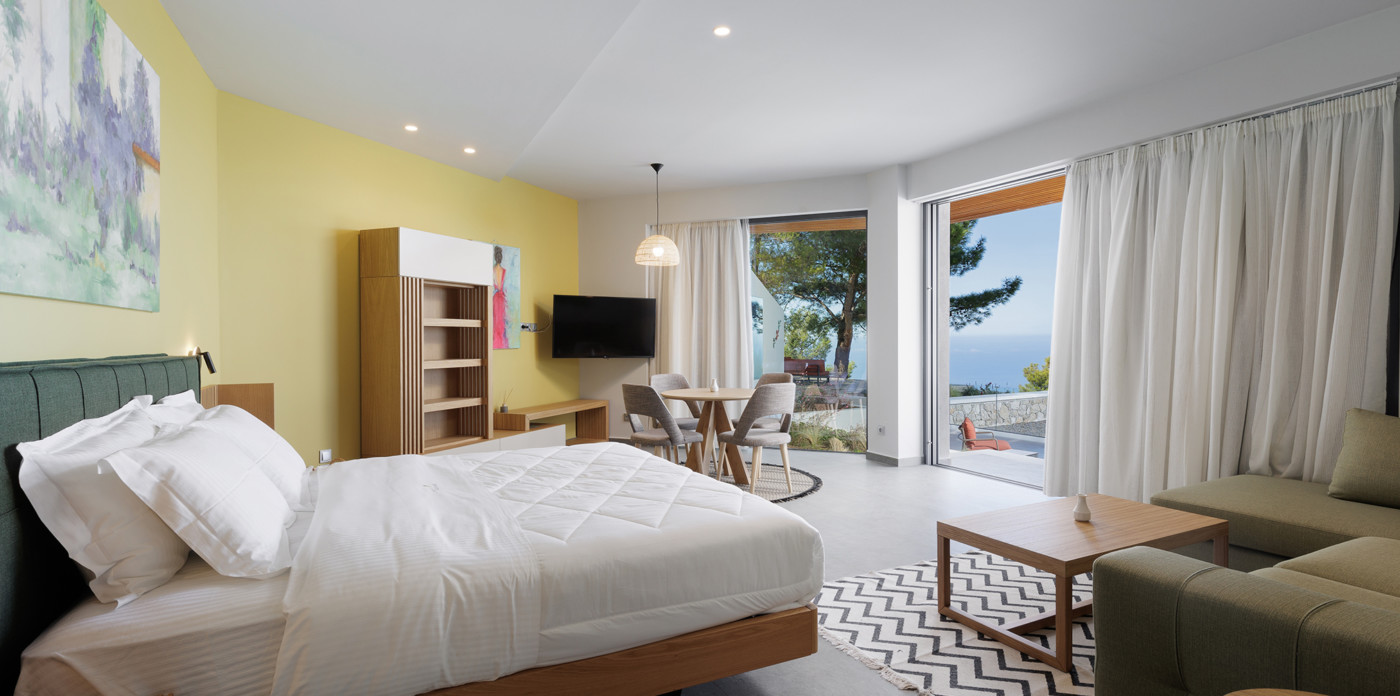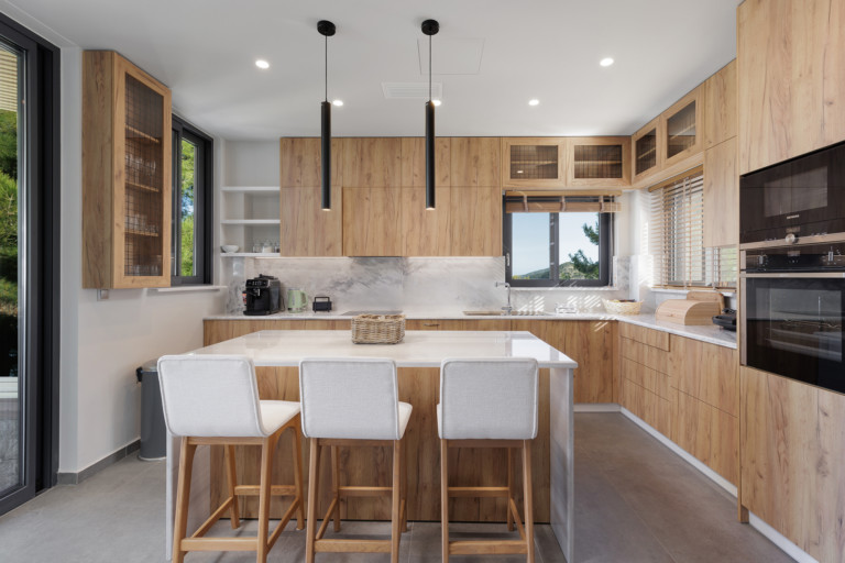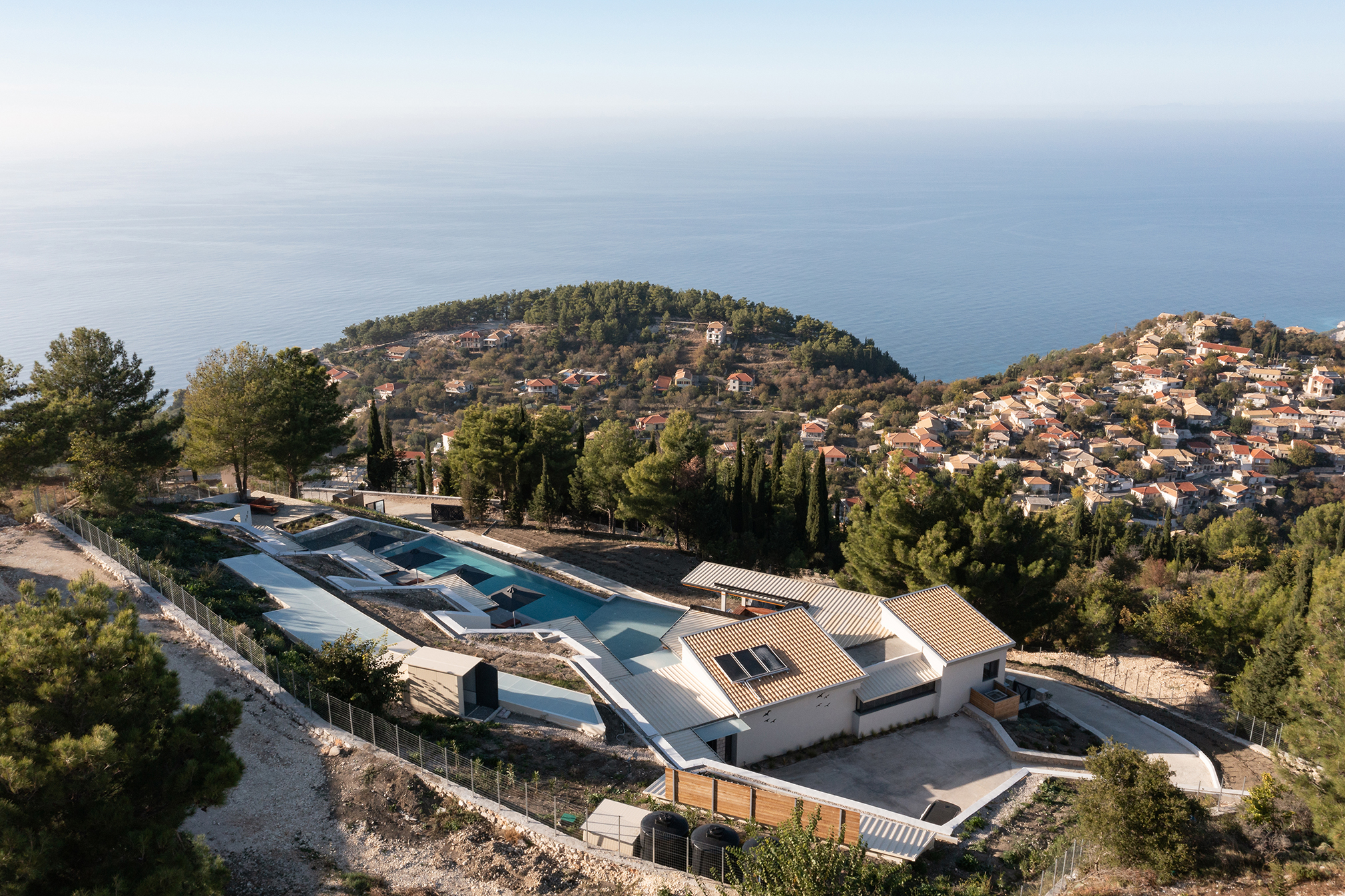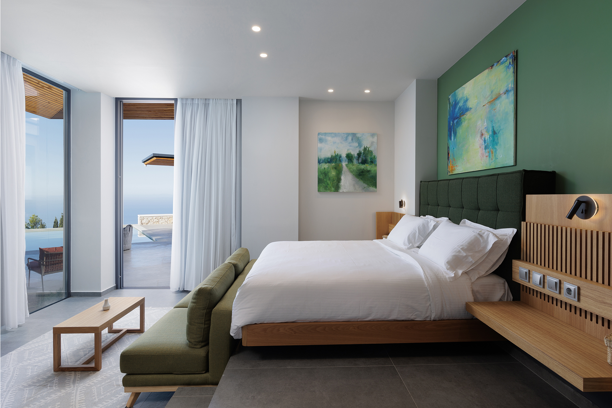 Η διαμονή είναι πλήρης με ανοιχτή μοντέρνα κουζίνα και τραπεζαρία, ένα άνετο σαλόνι και έξι φωτεινά υπνοδωμάτια με μεγάλα παράθυρα σε όλα, αποκαλύπτοντας το εντυπωσιακό πανόραμα της Μεσογείου.