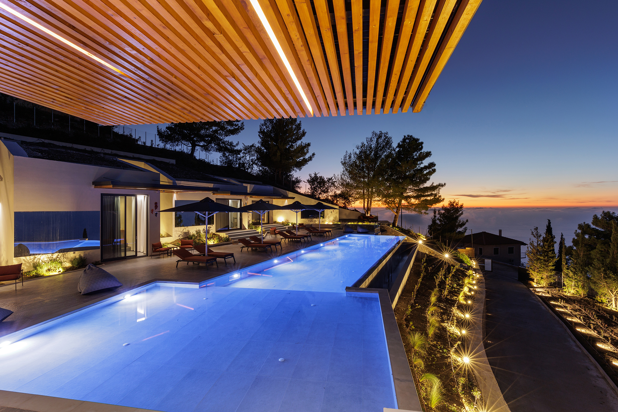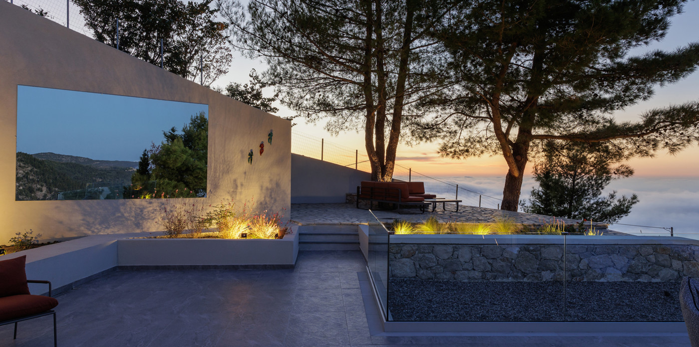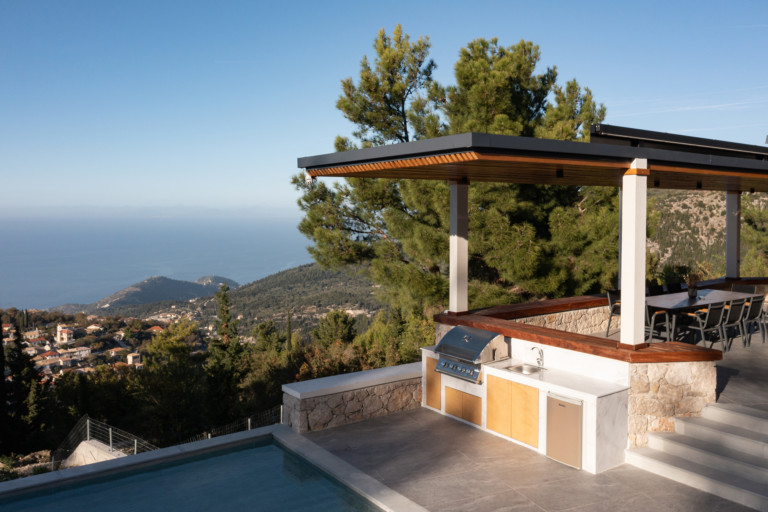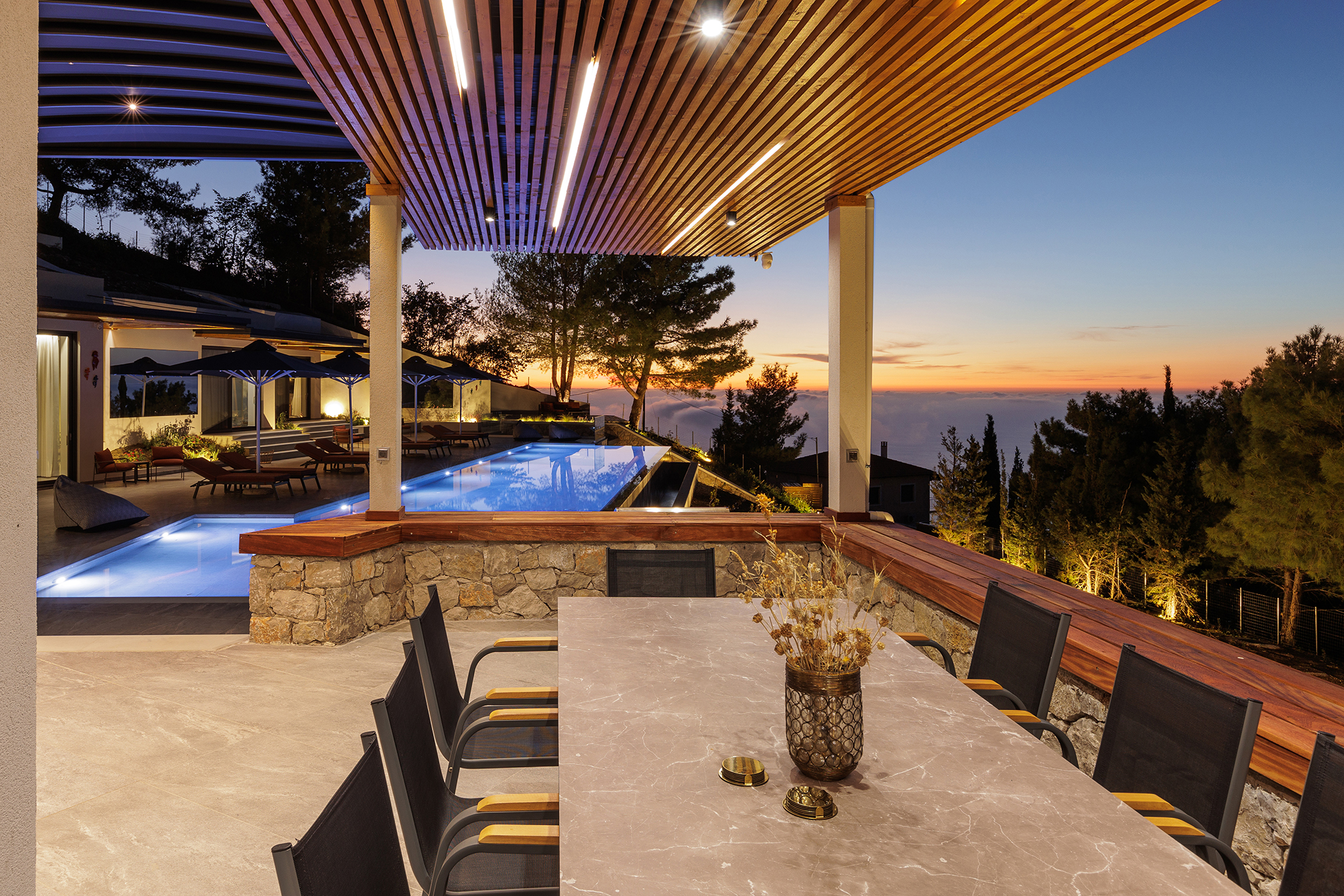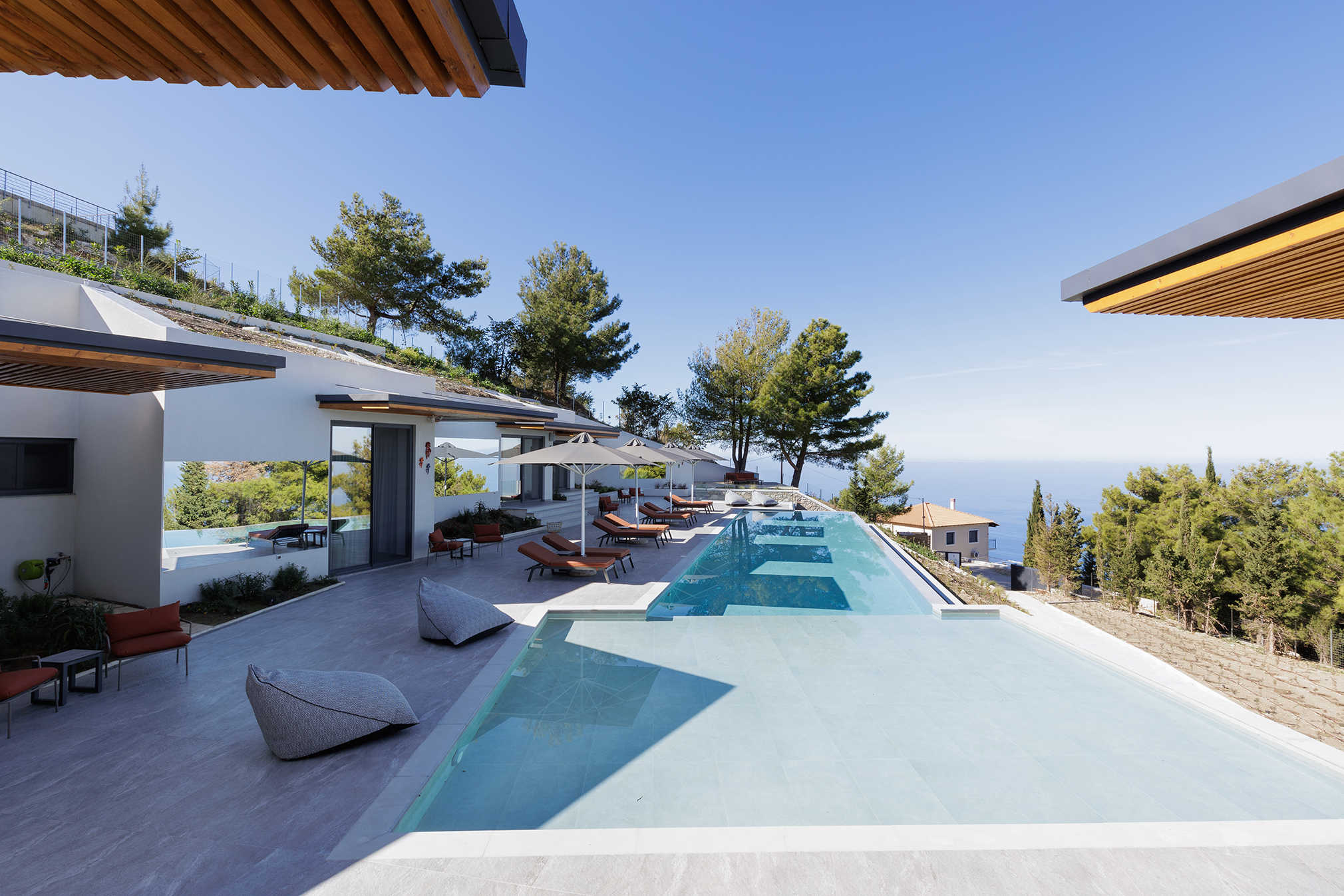 Οι άνετοι εξωτερικοί χώροι της βίλας είναι ιδανικοί για διασκέδαση, με ευρύχωρες βεράντες και μια υπέροχη πισίνα υπερχείλισης, ενώ απολαμβάνετε την εκπληκτική θέα προς τη θάλασσα και το καταπράσινο τοπίο της Λευκάδας.