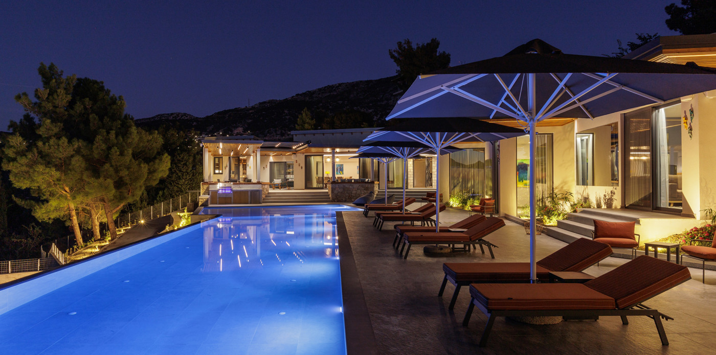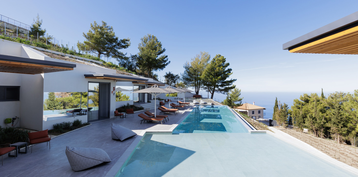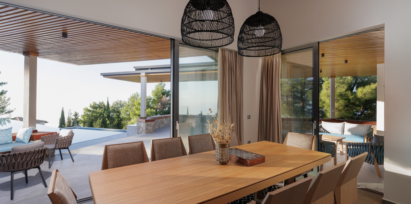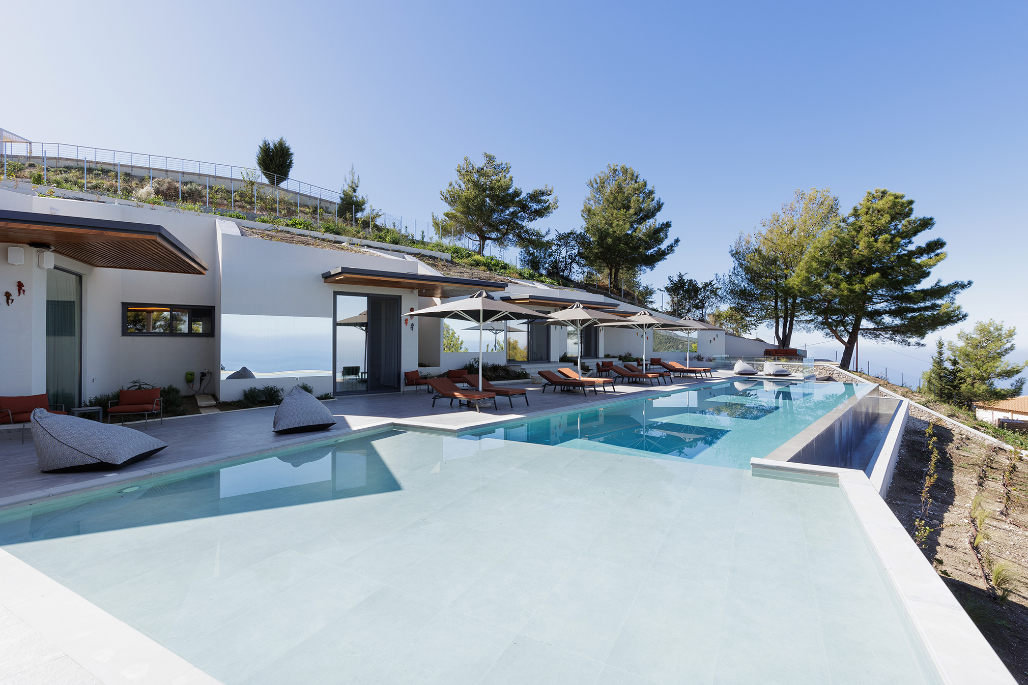 Οι άνετοι εξωτερικοί χώροι της βίλας είναι ιδανικοί για διασκέδαση, με ευρύχωρες βεράντες και μια υπέροχη πισίνα υπερχείλισης, ενώ απολαμβάνετε την εκπληκτική θέα προς τη θάλασσα και το καταπράσινο τοπίο της Λευκάδας.