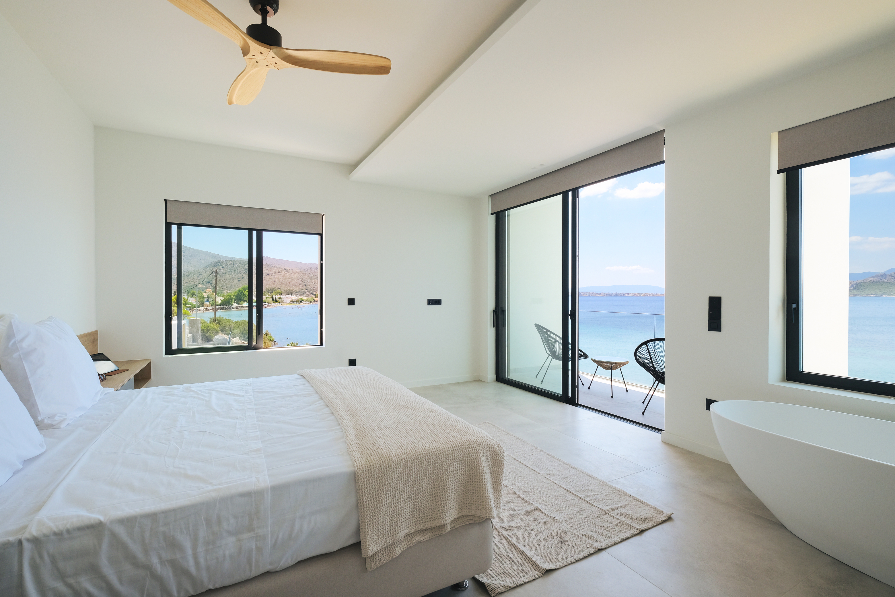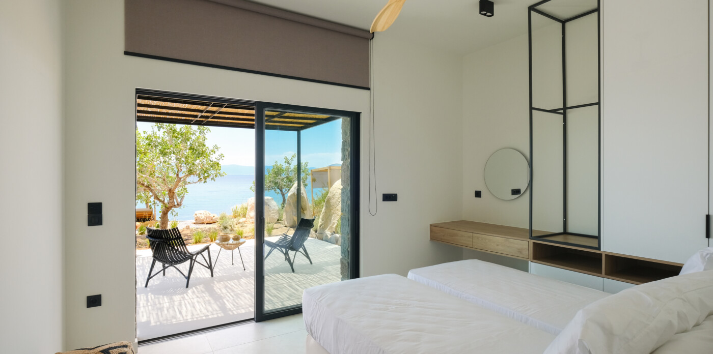 Το Callos διαθέτει τέσσερα εκλεπτυσμένα υπνοδωμάτια με ανεμπόδιστη πανοραμική θέα και τρία μπάνια. Η σουίτα του ιδιοκτήτη συνδυάζει αβίαστα την ηρεμία και τη χλιδή, διαθέτοντας ιδιωτικό μπάνιο, χαλαρωτική θέα και κομψές λεπτομέρειες.