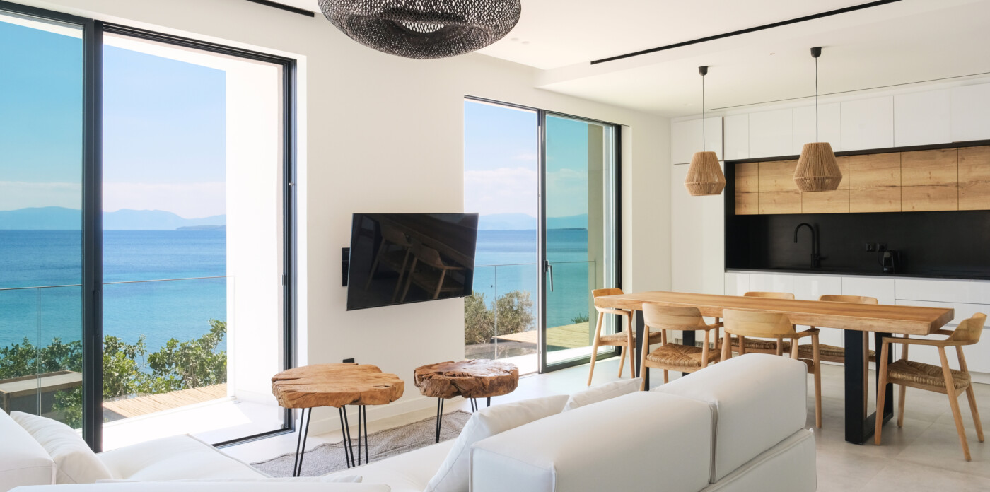 Μπείτε στο κομψό καθιστικό και την τραπεζαρία του ισογείου και απολαύστε τον άψογο σχεδιασμό και την εξαιρετική θέα. Η ανοιχτή κουζίνα ενσωματώνεται τέλεια στο χώρο. Ο κομψός σχεδιασμός και η διάταξη δημιουργούν μια ομαλή μετάβαση από την τραπεζαρία στην περιοχή μαγειρέματος.