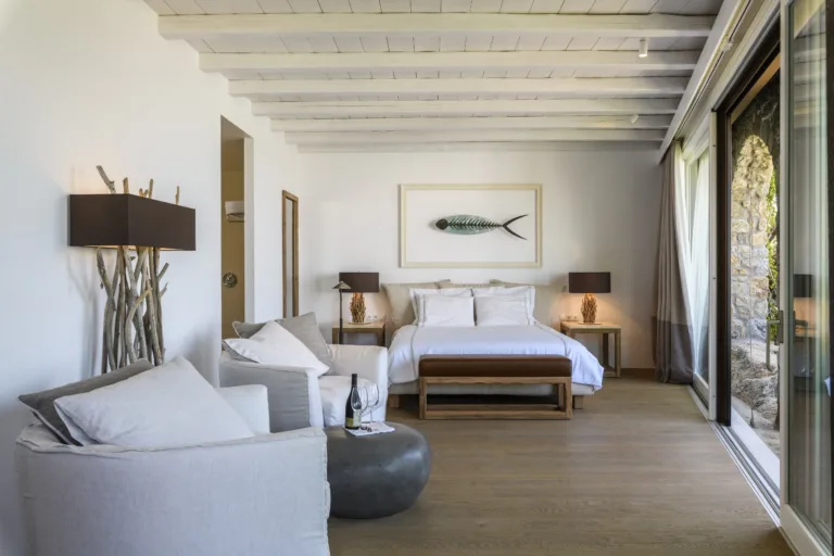 Καθένα από τα έξι υπνοδωμάτια διαθέτει ιδιωτικό μπάνιο, ιδιωτικό υπαίθριο καθιστικό και απεριόριστη θέα στη θάλασσα. Από τη σουίτα του καπετάνιου μέχρι τη σουίτα του κήπου, κάθε δωμάτιο έχει τη δική του ξεχωριστή γοητεία.