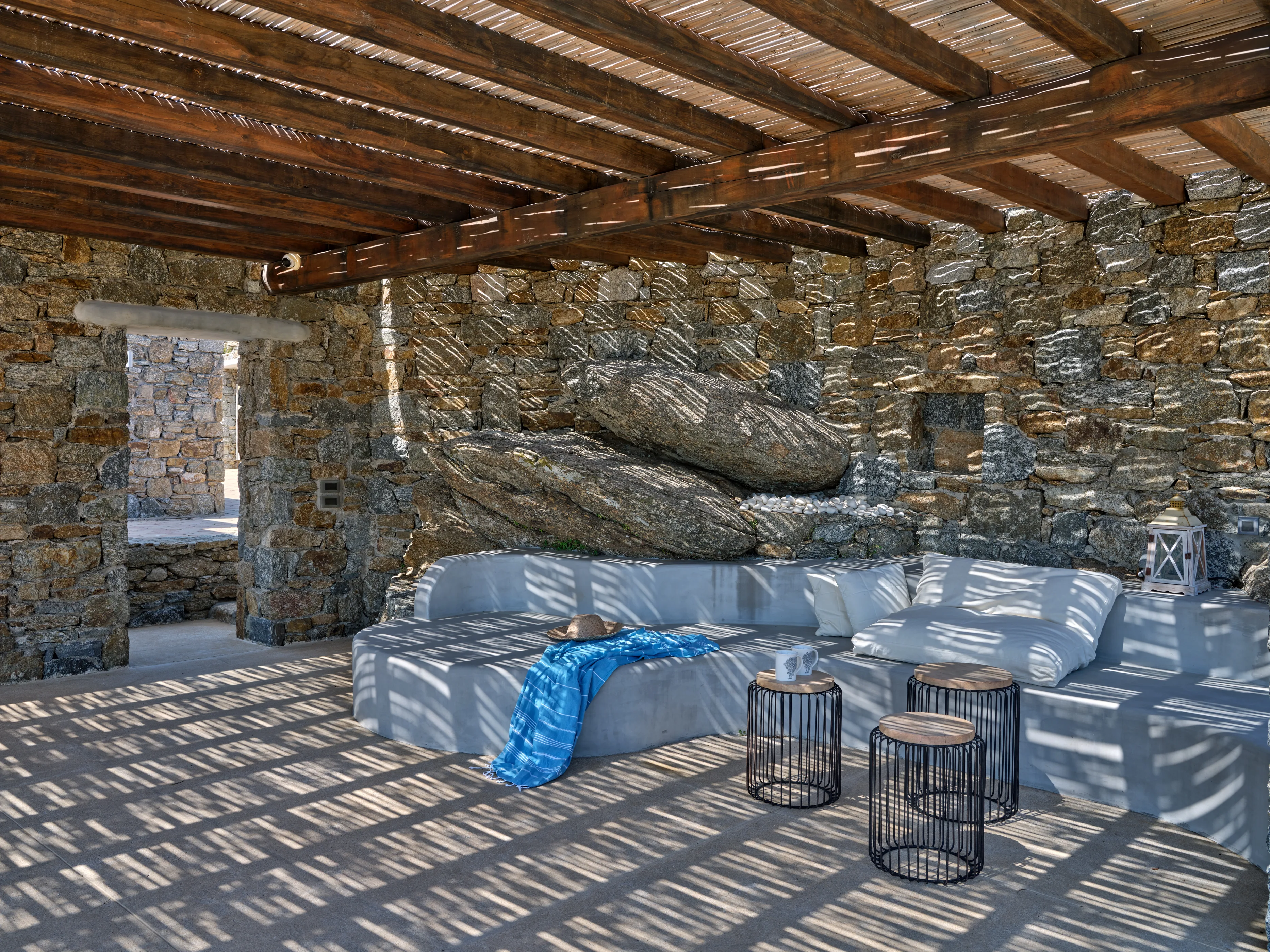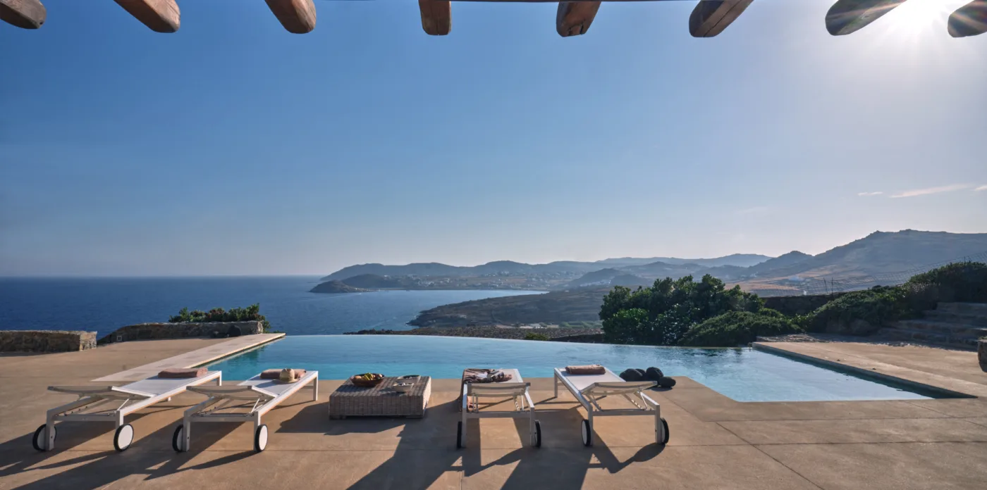 Η αρχιτεκτονική της βίλας βρίσκεται σε απόλυτη αρμονία με το φυσικό περιβάλλον των κυκλαδίτικων νησιών, προσφέροντας ένα μοναδικό μείγμα από τα καλύτερα και των δύο κόσμων, από τη θέα στη θάλασσα μέχρι το βουνό.
