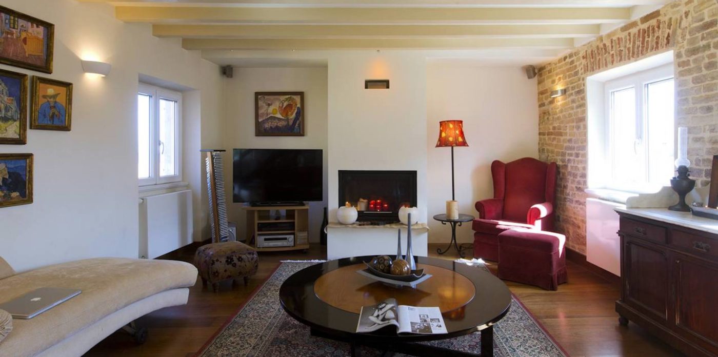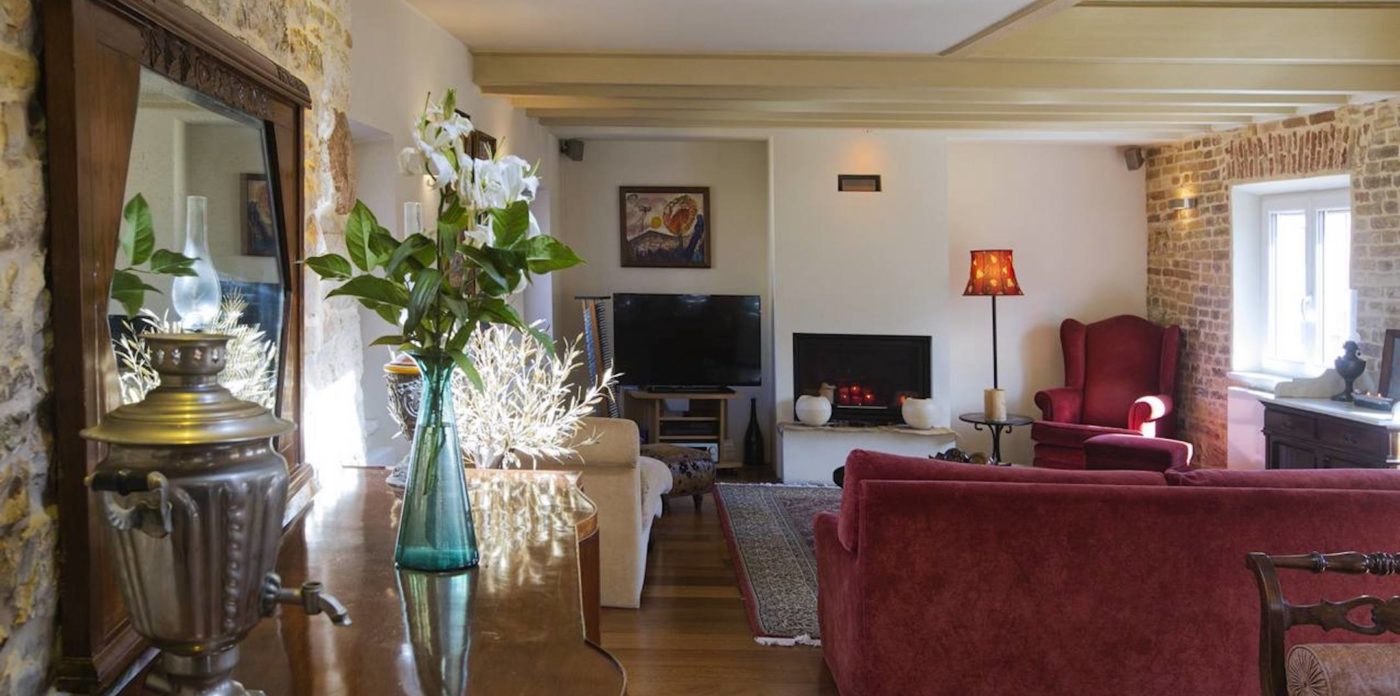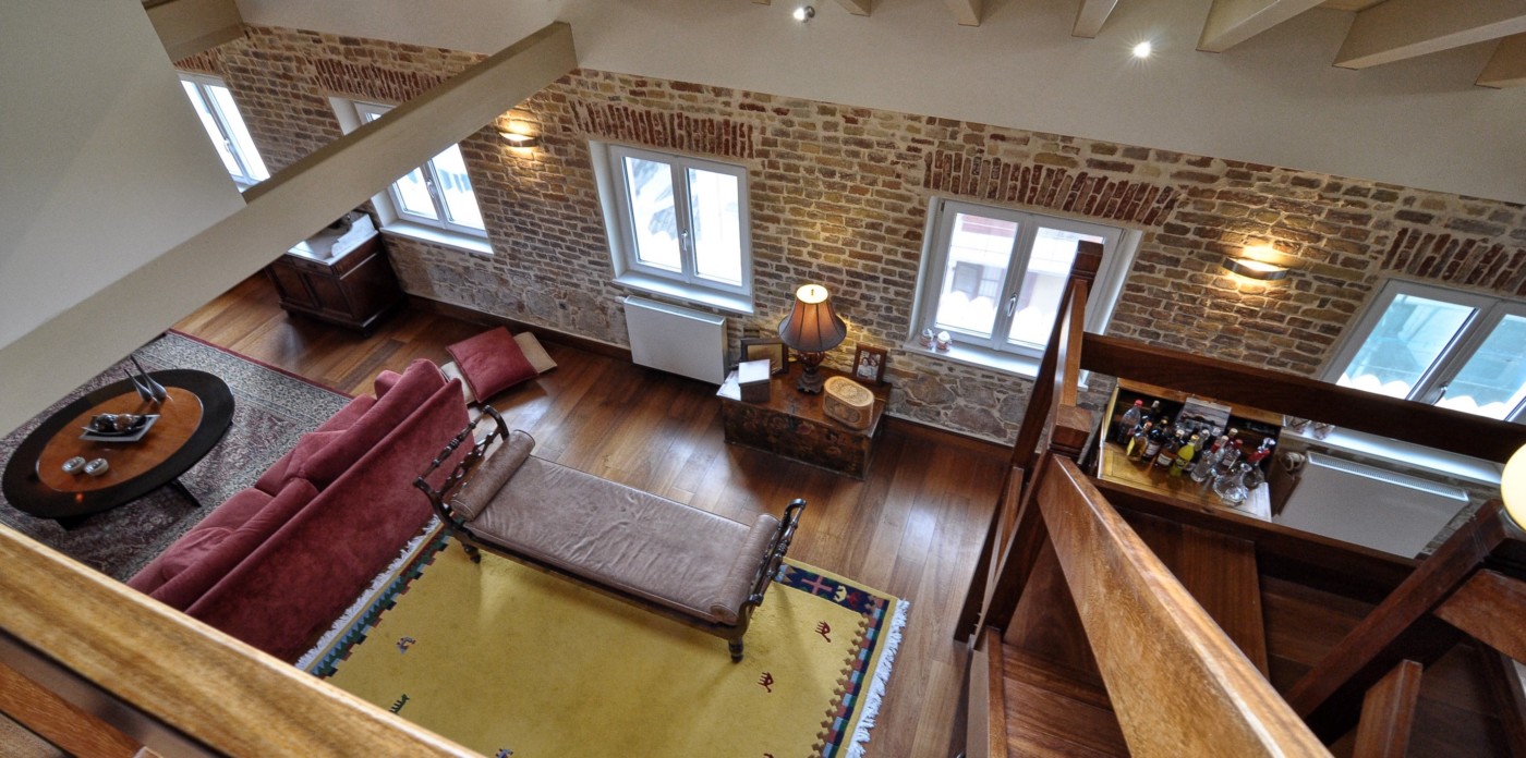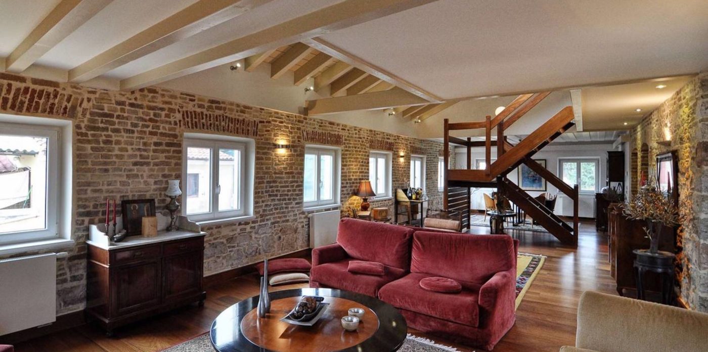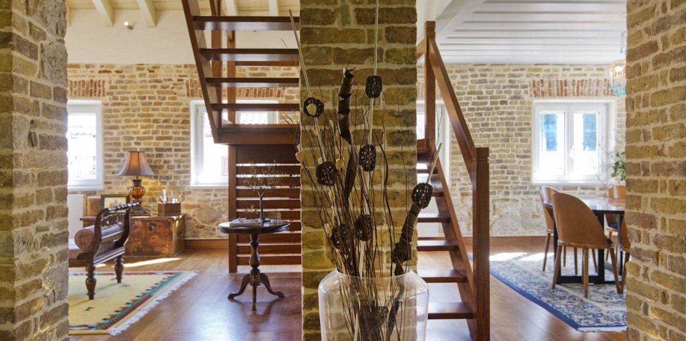 Ο παλιός σοβάς των τοίχων έχει αφαιρεθεί, αποκαλύπτοντας τα πέτρινα τούβλα, και μαζί με τα εκτεθειμένα ξύλινα δοκάρια της οροφής, έχουν προσθέσει εξαιρετική γοητεία στο ακίνητο.