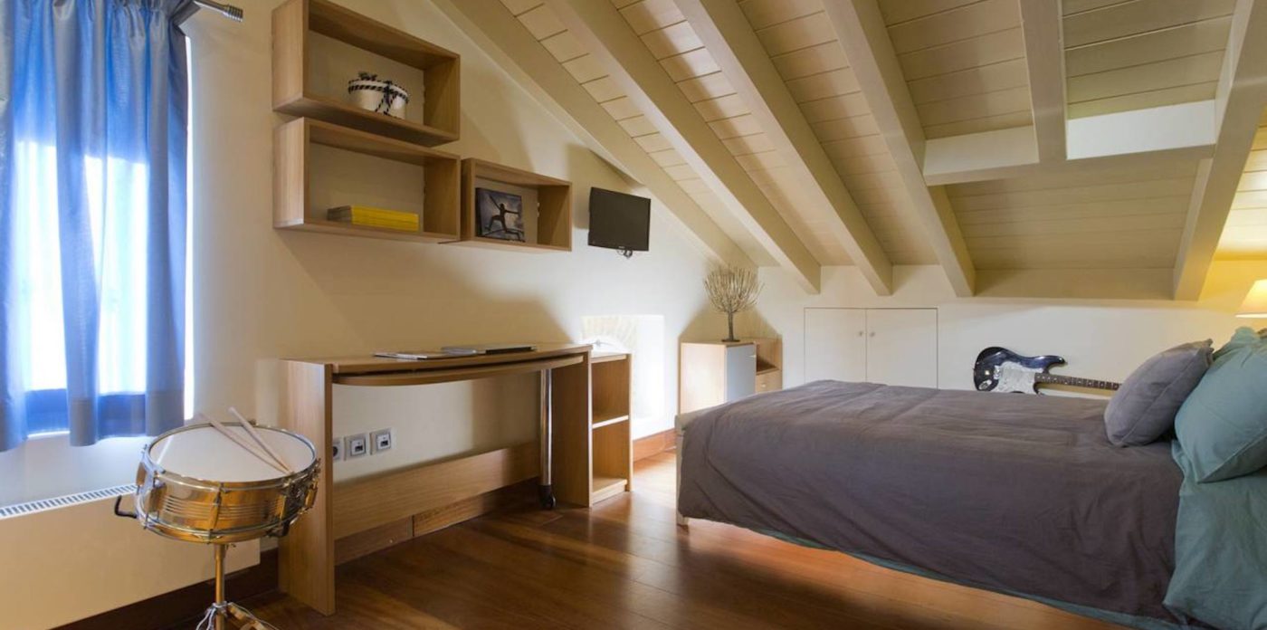 Στο ίδιο επίπεδο, υπάρχουν 3 υπνοδωμάτια και ένα κοινόχρηστο μπάνιο. Μια μικρή μελέτη, μια αποθήκη μεγάλου μεγέθους και ένα δωμάτιο μηχανημάτων, συμπληρώνουν το υπόλοιπο αυτό το επίπεδο.