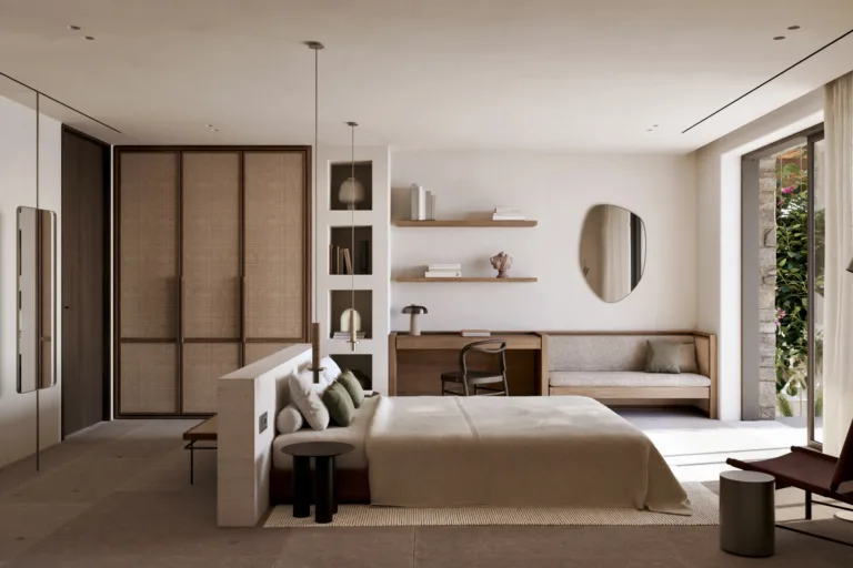 Στο Cyllene, όλα τα δωμάτια έχουν σχεδιαστεί έτσι ώστε το φως να διεισδύει πλήρως και τα πανοράματα να συνεχίζονται μέχρι εκεί που φτάνει το μάτι.