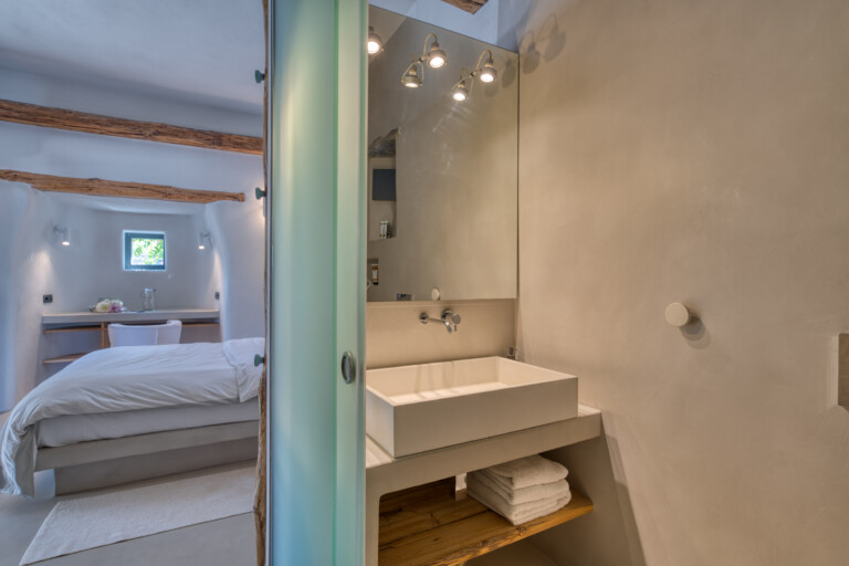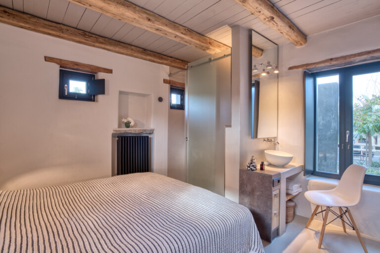 Η κύρια κατοικία διαθέτει μια φωτεινή, ανοιχτή κουζίνα που καταλήγει άψογα σε ένα φιλόξενο καθιστικό, το οποίο συμπληρώνεται από δύο υπνοδωμάτια με ιδιωτικό μπάνιο. Ένας ιδιωτικός ξενώνας επεκτείνει τα καταλύματα με δύο επιπλέον υπνοδωμάτια με ιδιωτικό μπάνιο, προσφέροντας άνεση και ιδιωτικότητα για την οικογένεια και τους φίλους.