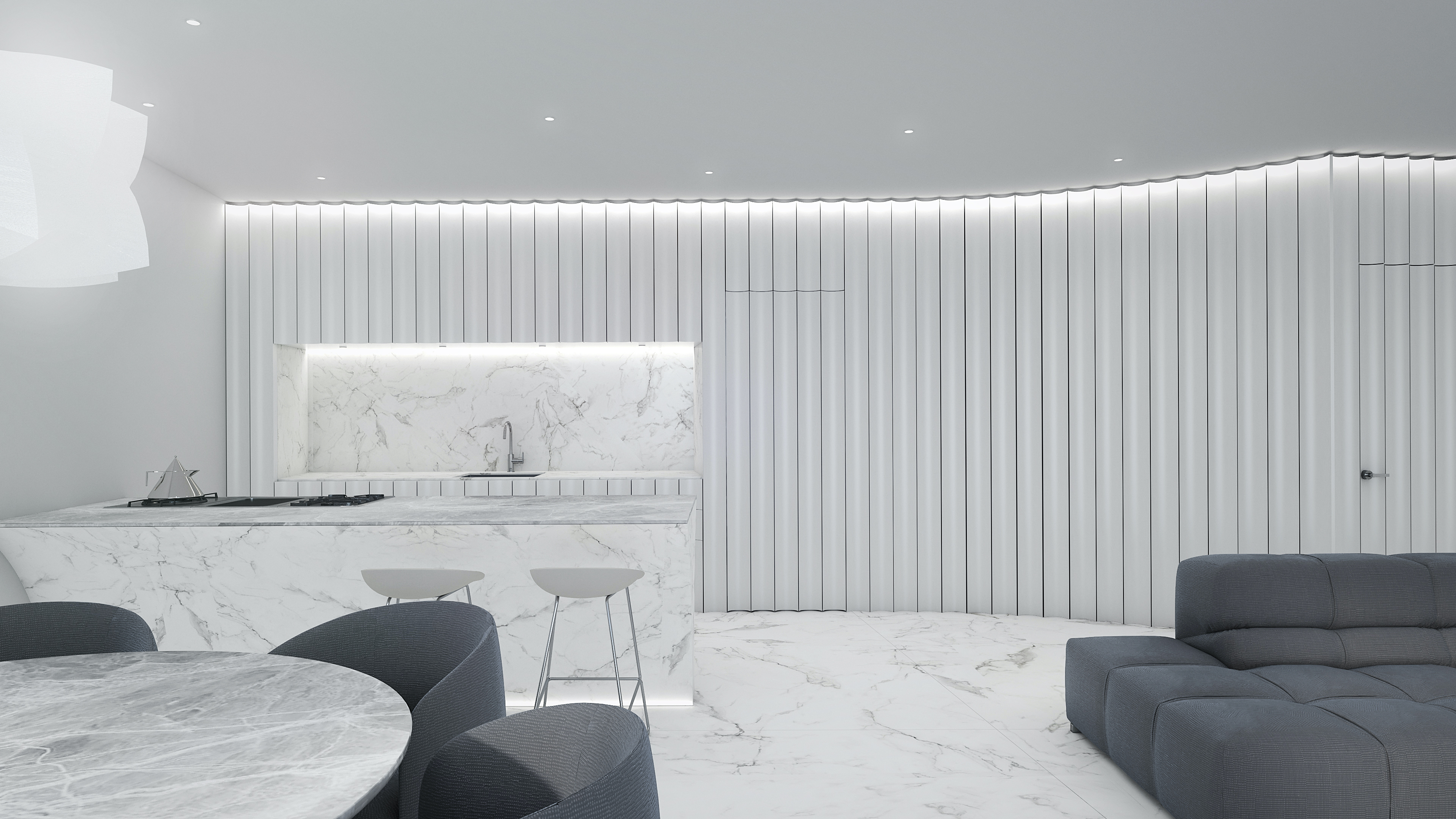 Τα ψηλά ταβάνια σε συνδυασμό με τα παράθυρα πλήρους μήκους δημιουργούν μεγαλοπρεπείς, φωτεινούς χώρους. Όλα τα υλικά που χρησιμοποιήθηκαν έχουν επιλεγεί και μελετηθεί προσεκτικά για τη δημιουργία ενός ιδανικού σπιτιού.