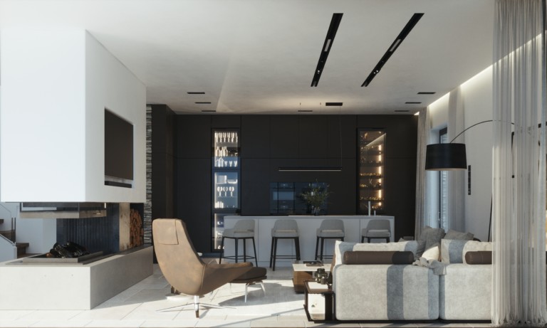 Σε όλη τη βίλα επικρατεί ένα υψηλό επίπεδο πολυτελούς εσωτερικής διακόσμησης και αίσθηση του στυλ. Η κουζίνα είναι πλήρως εξοπλισμένη και φέρει το σήμα κατατεθέν της κομψής απλότητας, ενώ συρόμενες πόρτες -από το δάπεδο μέχρι την οροφή- θα σας οδηγήσουν από το ευρύχωρο σαλόνι στην εκπληκτική πισίνα υπερχείλισης, δημιουργώντας μια απρόσκοπτη μετάβαση μεταξύ των εσωτερικών και εξωτερικών χώρων.