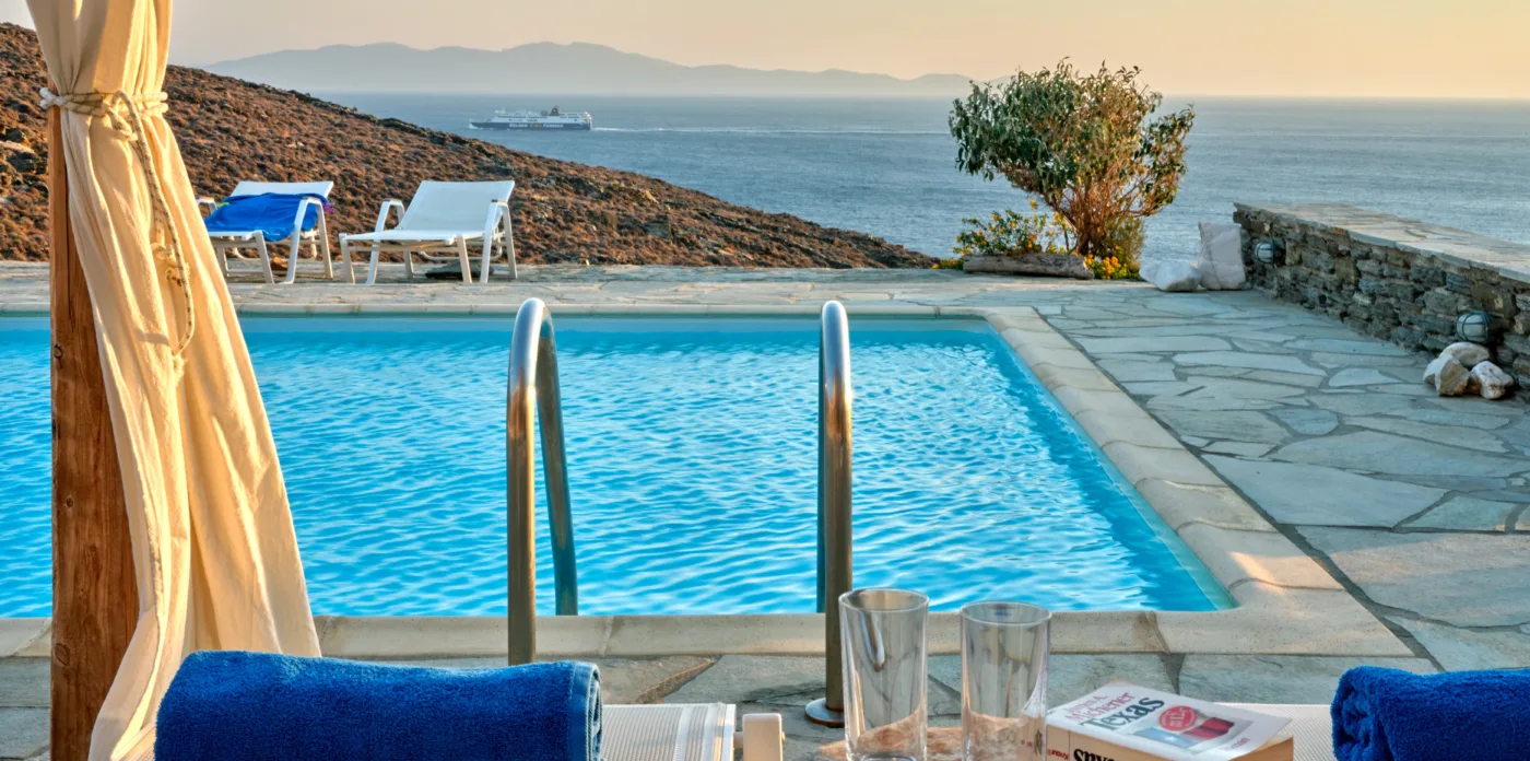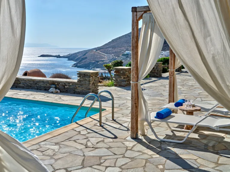 Με την παραλία σε μικρή απόσταση με τα πόδια, το Everglow προσφέρει την απόλυτη πολυτέλεια της άνεσης και της πρόσβασης στα κρυστάλλινα νερά και τις αμμώδεις ακτές της Τήνου.