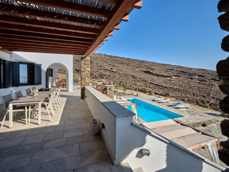 Οι εξωτερικοί χώροι του Everglow είναι μια μαγευτική όαση χαλάρωσης. Το επίκεντρο είναι αναμφίβολα η εκθαμβωτική πισίνα, ιδανική για μια δροσιστική βουτιά ή απλά για να απολαύσετε τη γύρω θέα. Οι χώροι καθιστικού και τραπεζαρίας είναι στρατηγικά τοποθετημένοι ώστε να αξιοποιούν στο έπακρο τη θέα.