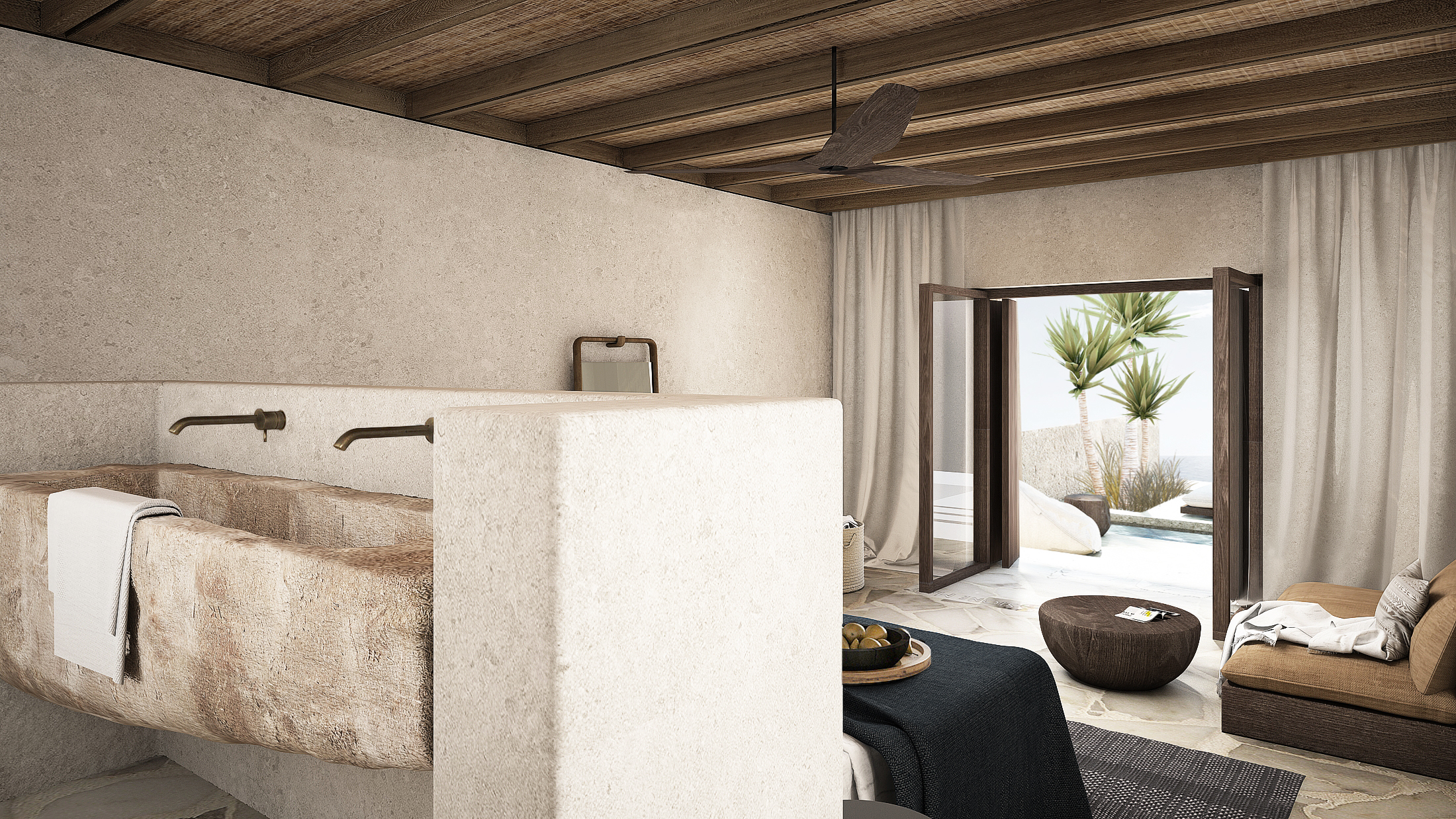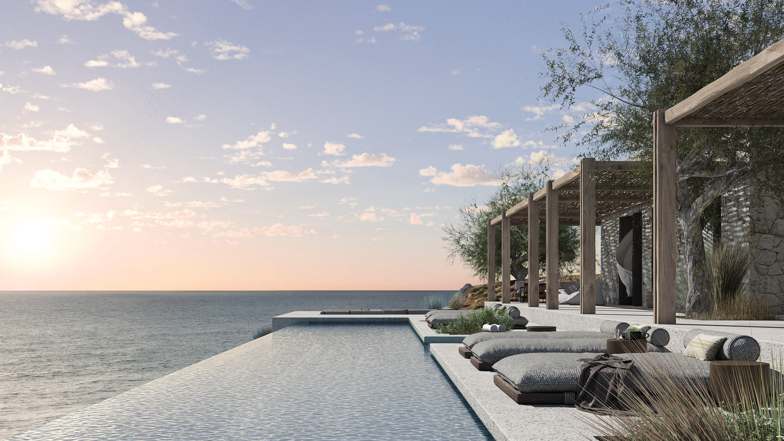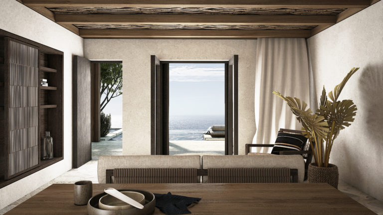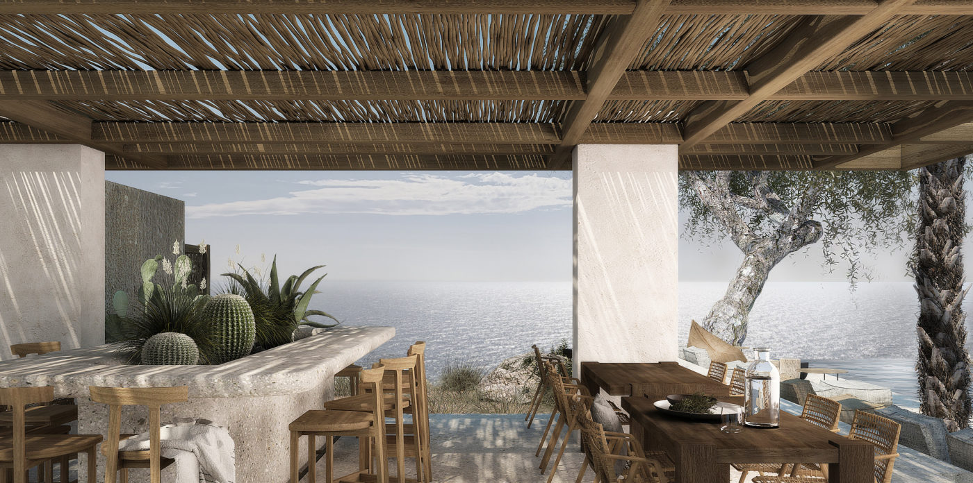 Θα προβλεφθούν τέσσερα ευρύχωρα υπνοδωμάτια με όλα τα δωμάτια να έχουν θέα στη θάλασσα και ένα υπαίθριο μπάνιο για να χαζεύετε τα αστέρια. Περισσότερα από 200 τ.μ. εξωτερικού χώρου διαβίωσης, εκτός από μια πισίνα υπερχείλισης 60 τ.μ., θα περιλαμβάνουν ηλιόλουστες βεράντες, αίθρια με υπαίθρια κουζίνα και τραπεζαρία και ένα βυθισμένο σαλόνι με φωτιά, ενώ θα βλέπουν την υπέροχη θέα.