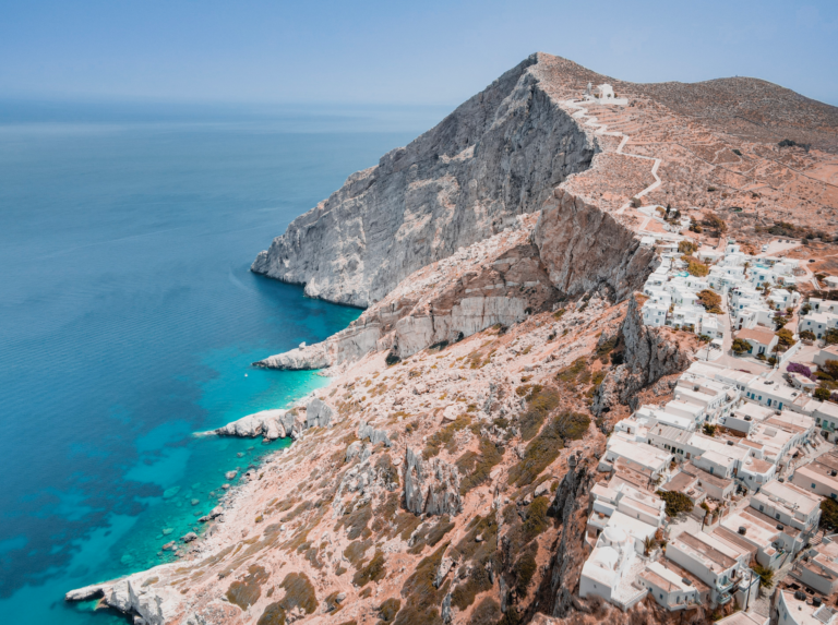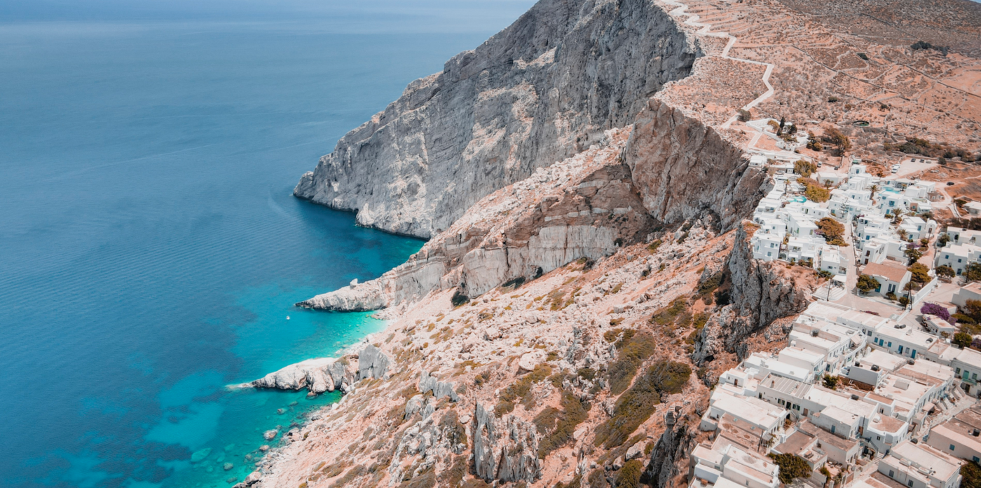 Το ήπια επικλινές τοπίο προσφέρει ειδυλλιακή θέα στο Αιγαίο που φτάνει μέχρι το γαλάζιο του ορίζοντα και το κυκλαδίτικο ηλιοβασίλεμα με τα χρώματα των εσπεριδοειδών.
