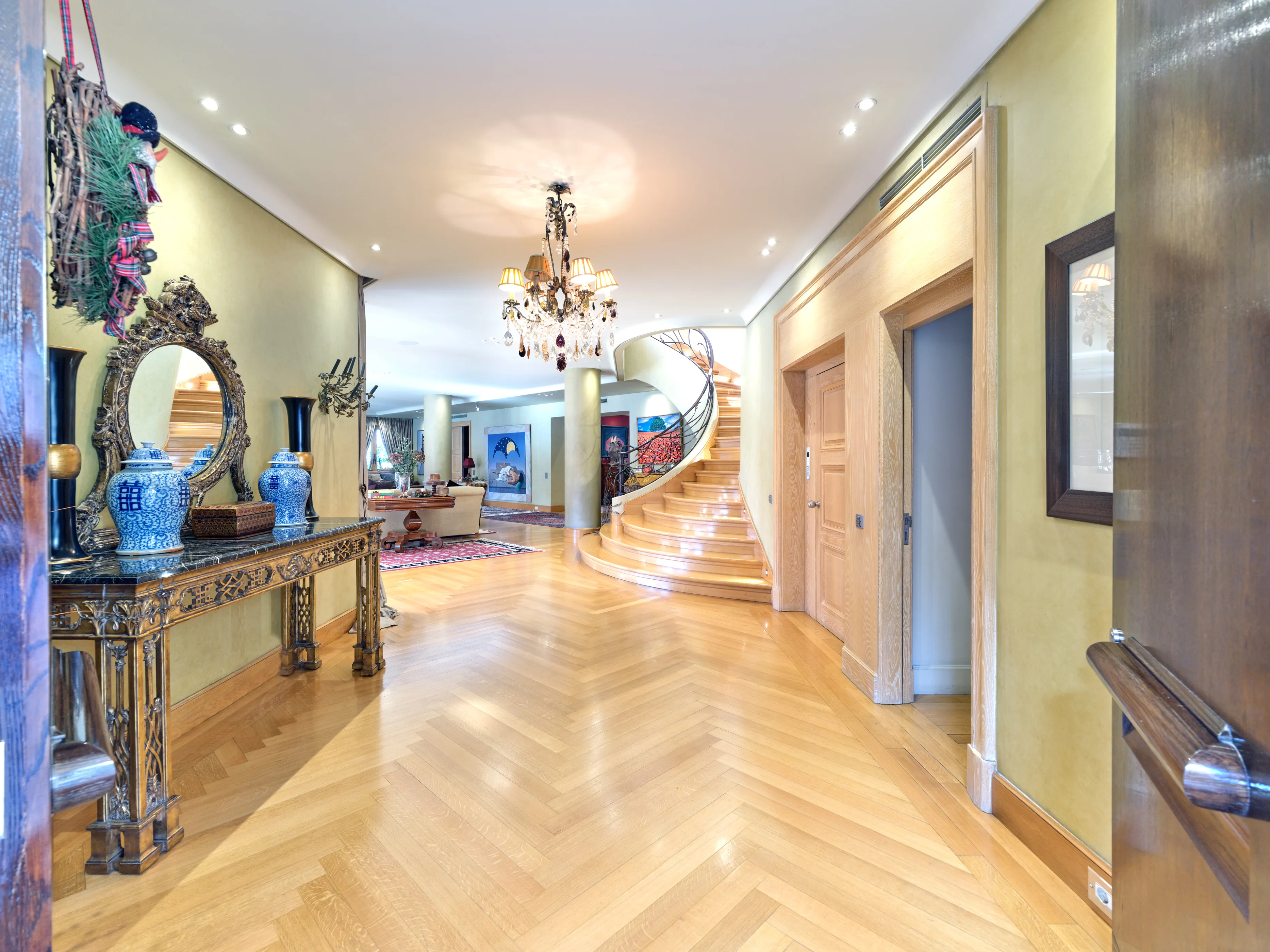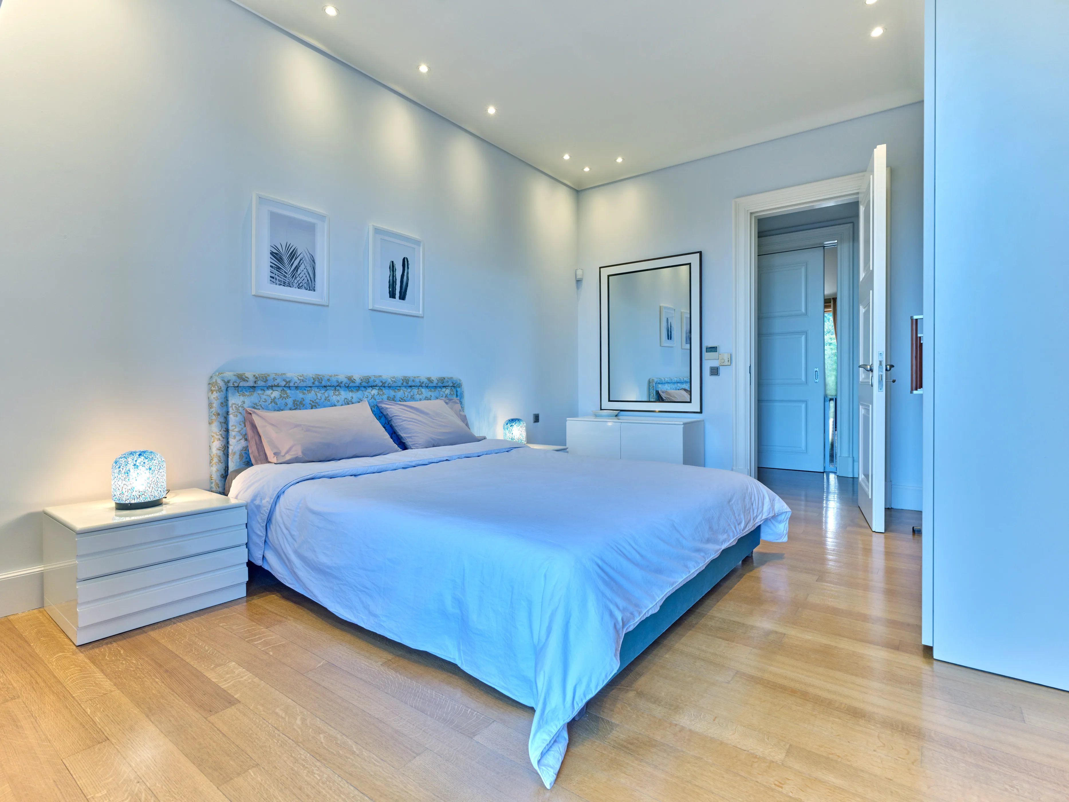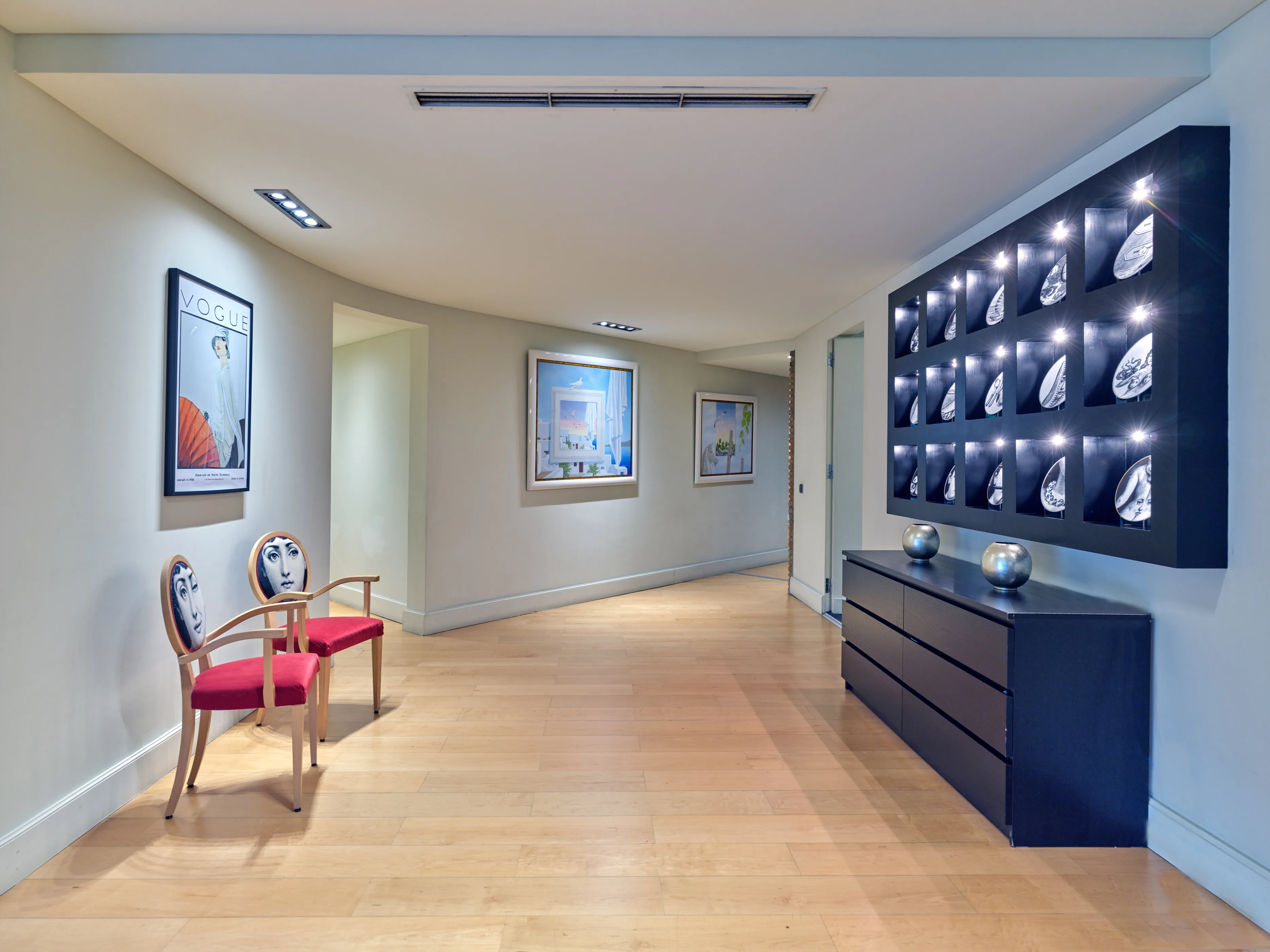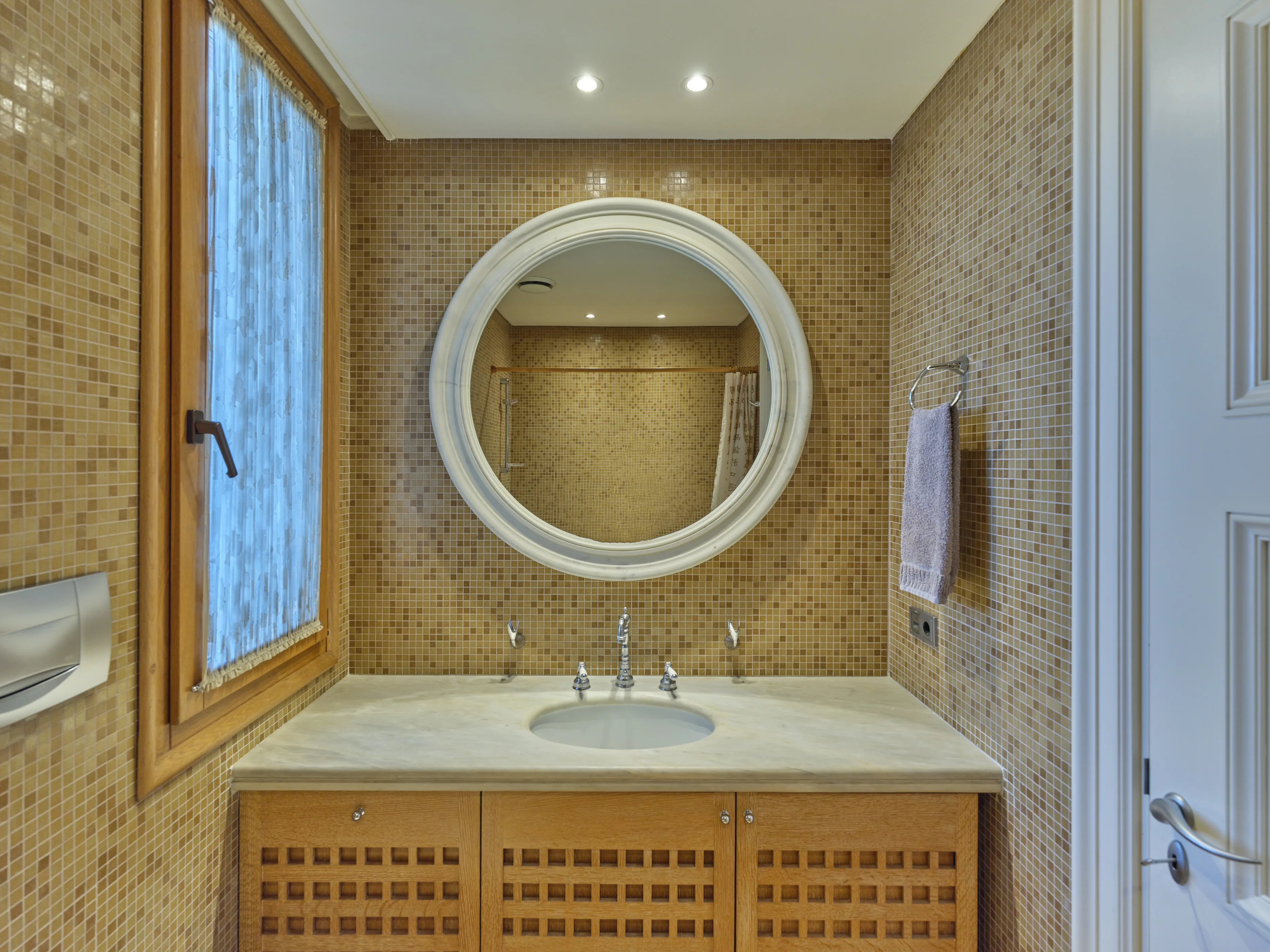 Στο κάτω επίπεδο υπάρχει ένα playroom με πρόσβαση στον κήπο, μια επιπλέον τραπεζαρία και μια κουζίνα με πλυντήριο. Υπάρχει επίσης ένα μπάνιο, ένα δωμάτιο οικονόμου και άνετος χώρος στάθμευσης για 2-3 οχήματα. Ένας ανελκυστήρας συνδέει αβίαστα κάθε όροφο.