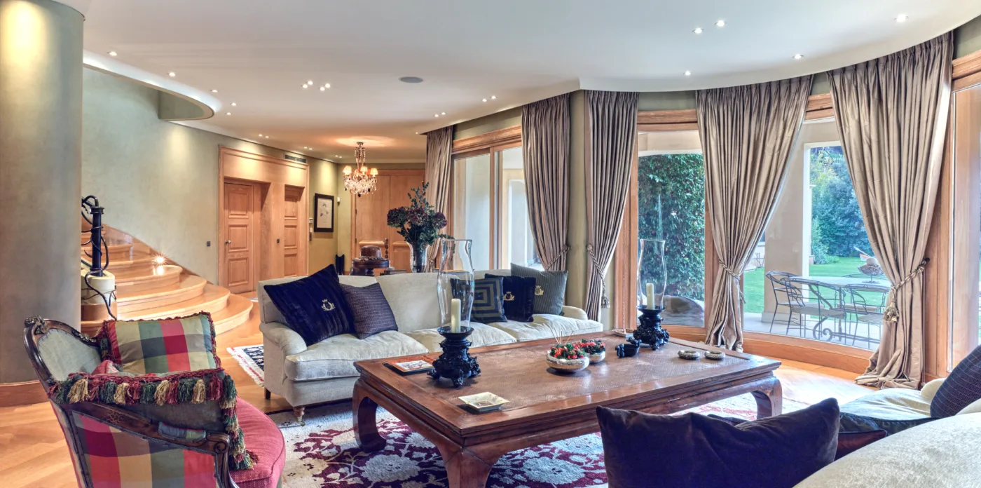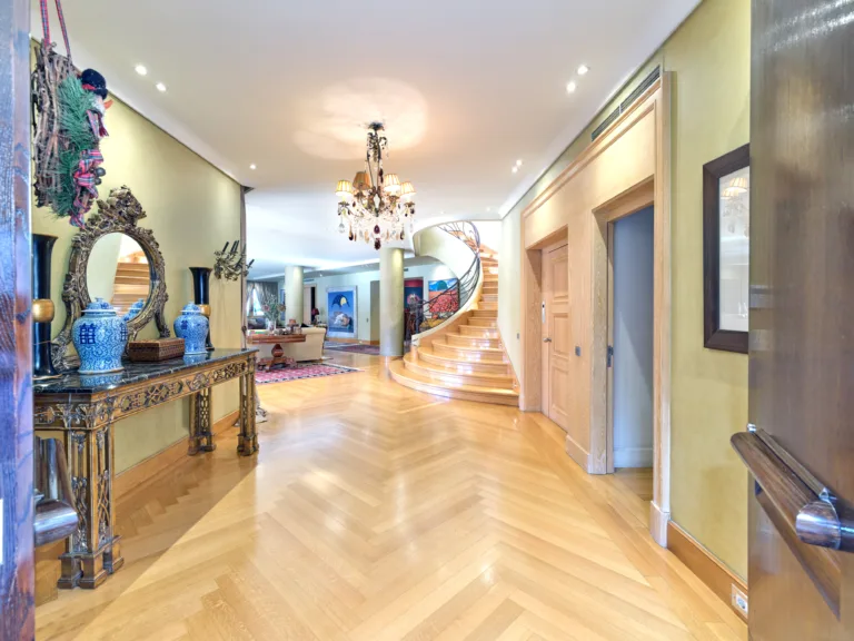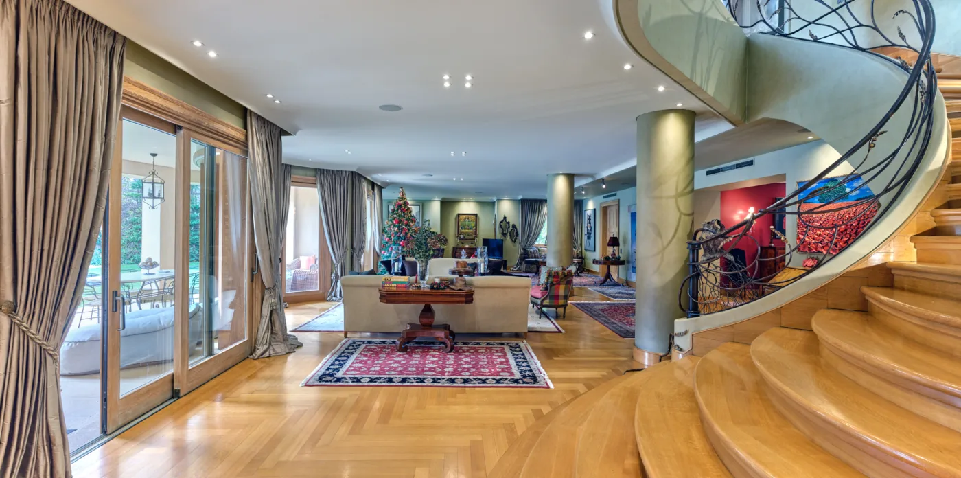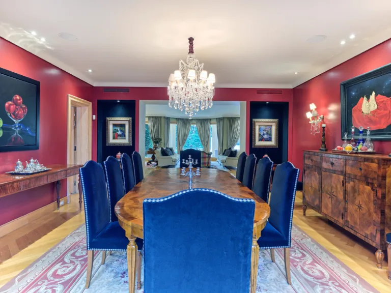 Η δεύτερη κατοικία, έκτασης 1.091 τ.μ., αντικατοπτρίζει την κομψότητα της αντίστοιχης κατοικίας της. Η χλιδή του ισογείου ξεδιπλώνεται με ευρύχωρους χώρους καθιστικού, ενώ ο πρώτος όροφος φιλοξενεί τρία υπνοδωμάτια με ιδιωτικό μπάνιο. Η κύρια σουίτα διαθέτει ένα εντυπωσιακό τζάκι, δημιουργώντας την απόλυτη ατμόσφαιρα χαλάρωσης. Ένα κελάρι, μια σάουνα και δύο δωμάτια καθαριότητας συμπληρώνουν κομψά τις ανέσεις στο κάτω επίπεδο.