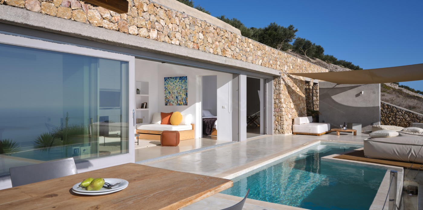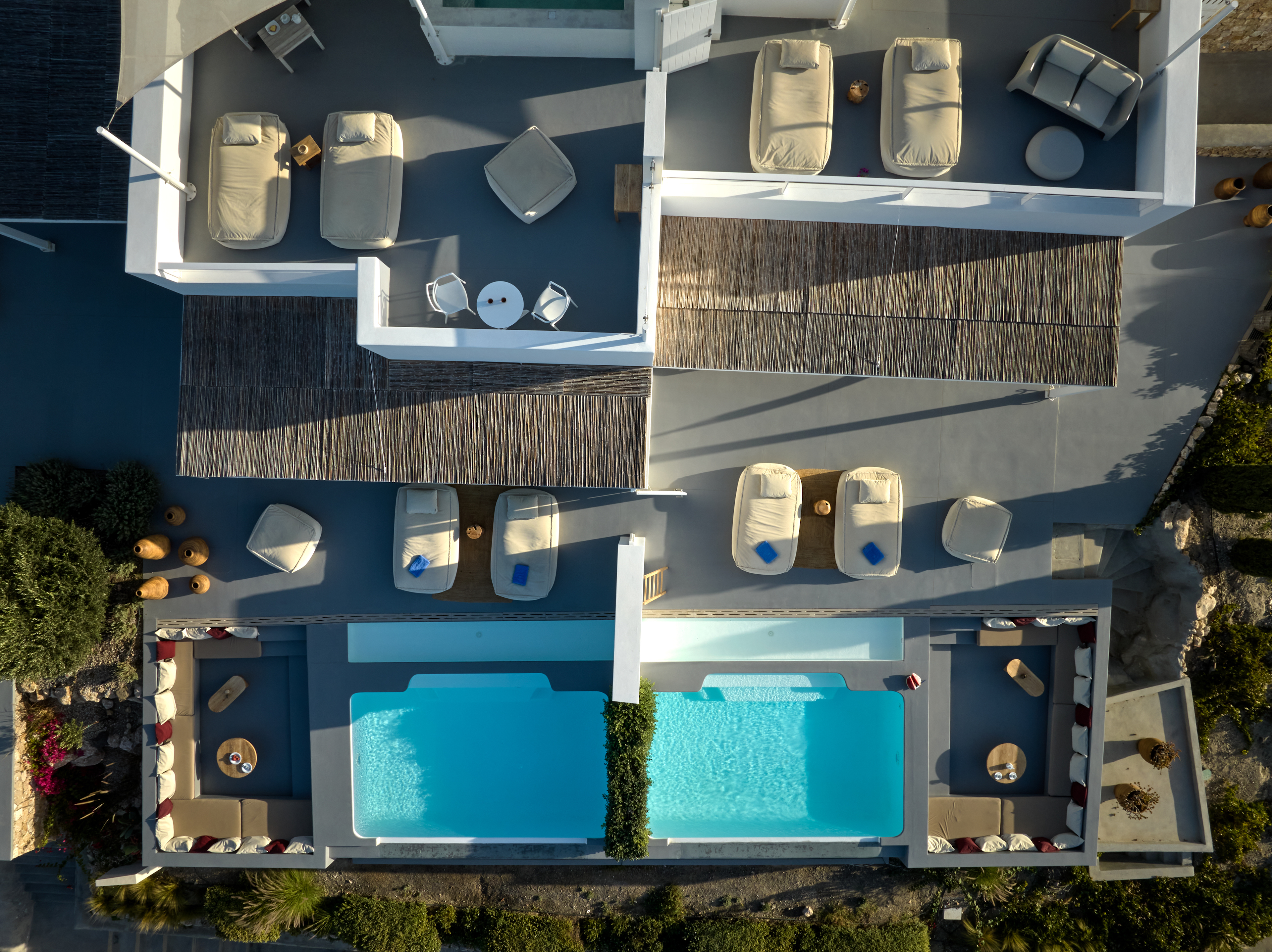 Το ξενοδοχείο χαρακτηρίζεται από το αυθεντικό του στυλ και τον μίνιμαλ σχεδιασμό του. Σε δύο επίπεδα, το ανώτερο επίπεδο διαθέτει σουίτες με δύο υπνοδωμάτια η καθεμία με ιδιωτικές βεράντες και ιδιωτικές πισίνες. Η κάτοψη στο κάτω επίπεδο περιλαμβάνει έναν χώρο υποδοχής, την κουζίνα και δύο ακόμη σουίτες υπνοδωματίων. Κάθε μία από αυτές τις σουίτες διαθέτει μια σκεπαστή βεράντα με πισίνα καθώς και "βυθισμένες" ξαπλώστρες δίπλα στην πισίνα. Διατίθενται τρισδιάστατες κατόψεις που δείχνουν πώς μπορεί να μετατραπεί το ξενοδοχείο σε βίλα κατοικιών.