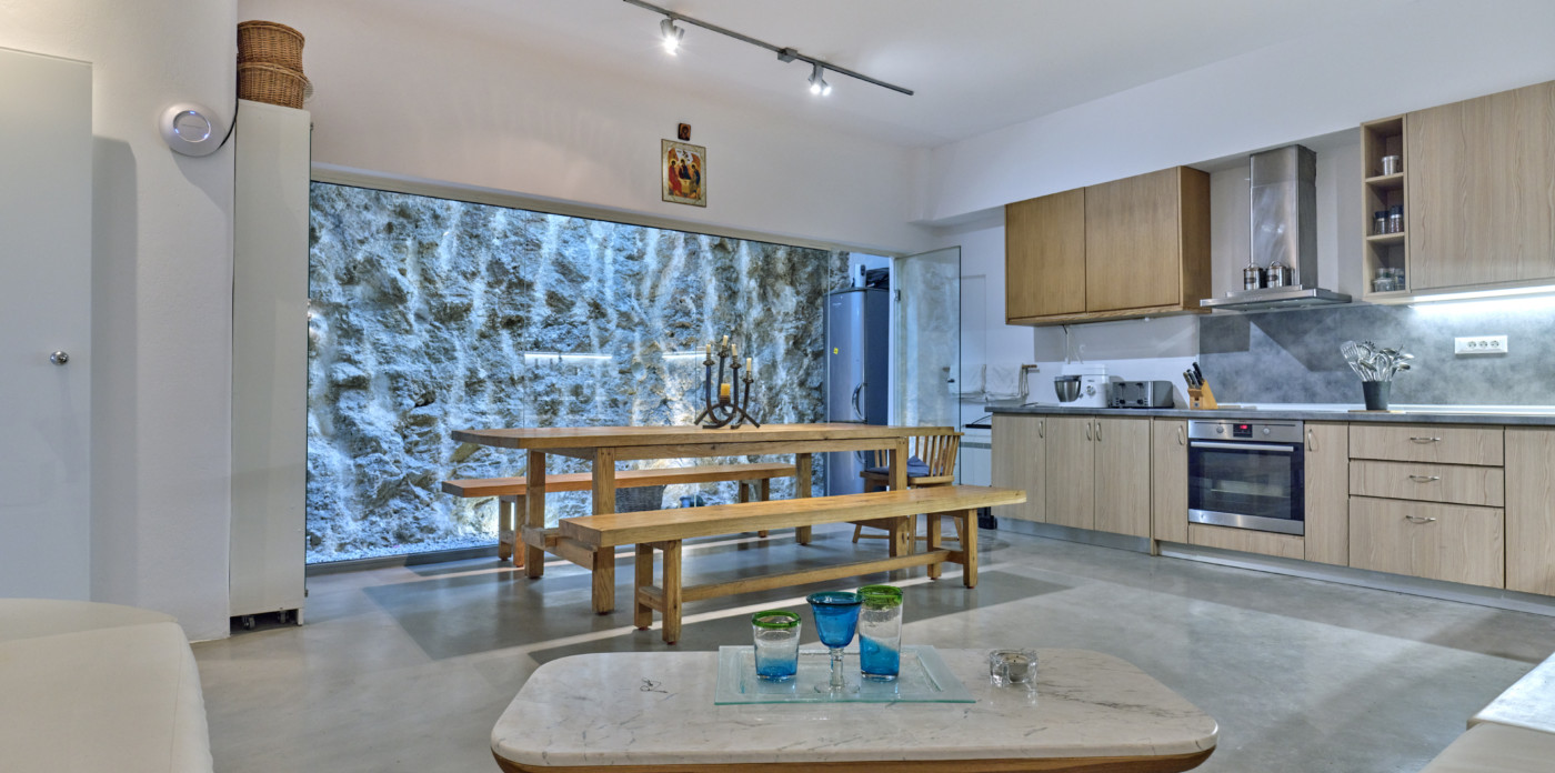 Το δεύτερο ακίνητο στο κτήμα είναι μια όμορφη βίλα με πέτρινη πρόσοψη. Τέλεια σχεδιασμένη ώστε να εναρμονίζεται με το φυσικό περιβάλλον, προσφέρει μια κύρια κρεβατοκάμαρα, μια πλήρως εξοπλισμένη κουζίνα και έναν ενιαίο χώρο καθιστικού/τραπεζαρίας. Ένα σύγχρονο τζάκι φέρνει ένα στοιχείο ζεστασιάς στον ελάχιστο χώρο.