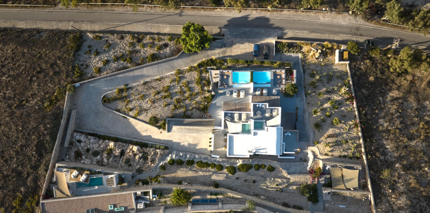 Δύο ξεχωριστές ιδιοκτησίες αποτελούν το Harpa Estate στη Σαντορίνη, η μία κατοικία και η άλλη ένα μικρό μπουτίκ ξενοδοχείο. Βρίσκονται στο υψηλότερο σημείο του νησιού και τα δύο ακίνητα φιλοξενούν τα πιο όμορφα ηλιοβασιλέματα του νησιού.