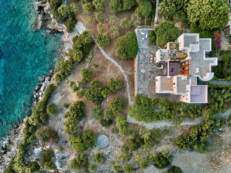 Με την είσοδο στο ακίνητο από την κεντρική πύλη, ένα πέτρινο μονοπάτι σας οδηγεί στην είσοδο αυτής της εξαιρετικής κατοικίας που εκτείνεται σε δύο ορόφους 300 και 500 τετραγωνικών μέτρων. Το επίκεντρο του εσωτερικού χώρου είναι ένα εντυπωσιακό εσωτερικό σιντριβάνι που δεσπόζει με χάρη στο σαλόνι. Δίπλα σε αυτή την όαση ηρεμίας, μια φαρδιά γυάλινη πόρτα ανοίγει στην ευρύχωρη βεράντα που τυλίγεται γύρω από ολόκληρο το σπίτι. Εδώ, η ανεμπόδιστη θέα του απέραντου ουρανού και της καταγάλανης θάλασσας εκτείνεται μέχρι εκεί που φτάνει το μάτι.