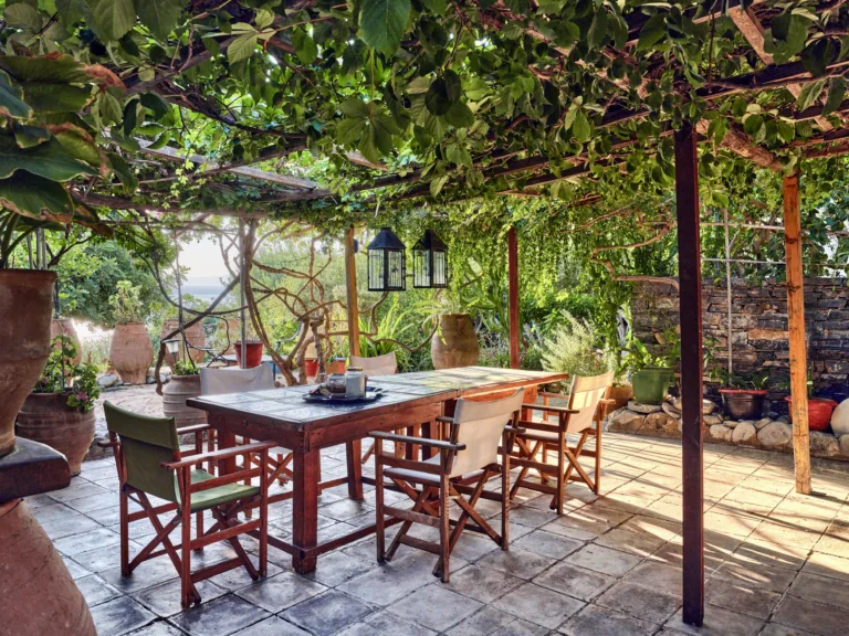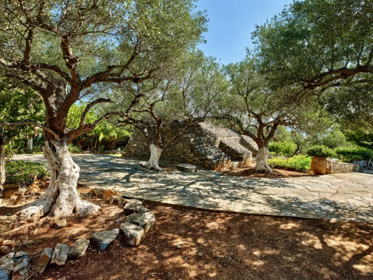 Το πραγματικό στολίδι αυτού του ακινήτου βρίσκεται στους σχολαστικά καλλιεργημένους κήπους του, γεμάτους δέντρα και ανθισμένα λουλούδια, που συντηρούνται με αγάπη για πάνω από τρεις δεκαετίες. Εδώ, μια κολοσσιαία χαρουπιά 300 ετών στέκεται ως μαρτυρία του ίδιου του χρόνου. Διακριτικά στο κτήμα βρίσκεται το Atelier, ένας ευχάριστος ξενώνας κατασκευασμένος από τερακότα και μπαμπού. Αρχικά σχεδιάστηκε ως εργαστήριο καλλιτεχνών και αποτελεί ένα ξεχωριστό καταφύγιο για δημιουργικές ψυχές. Ολοκληρώνοντας την εικόνα της απόλαυσης και της χαλάρωσης, μια πισίνα γλυκού νερού σας καλεί να χαλαρώσετε και να αναζωογονηθείτε στην αγκαλιά αυτού του υπέροχου κτήματος.