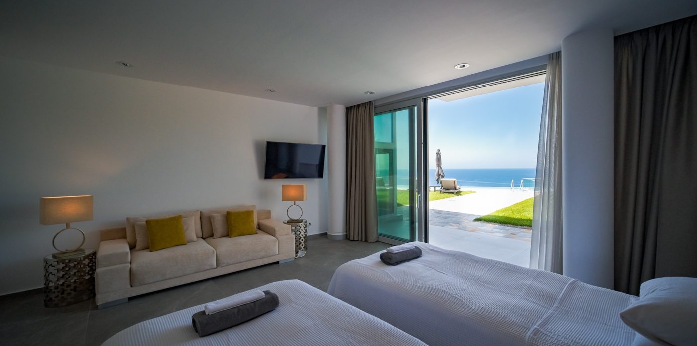 Υπάρχουν άλλα 4 ευρύχωρα υπνοδωμάτια με ιδιωτικό μπάνιο και εκπληκτική θέα στη θάλασσα. Η βίλα διαθέτει μία πισίνα 5 Χ 12 με τζακούζι δίπλα στο σαλόνι, μία δεύτερη μεγάλη πισίνα (με παιδική πλευρά στο τέλος) κάτω από τα υπνοδωμάτια, μπάρμπεκιου με πλήρως εξοπλισμένη κουζίνα και ένα lounge bar ανάμεσα στις πισίνες.
