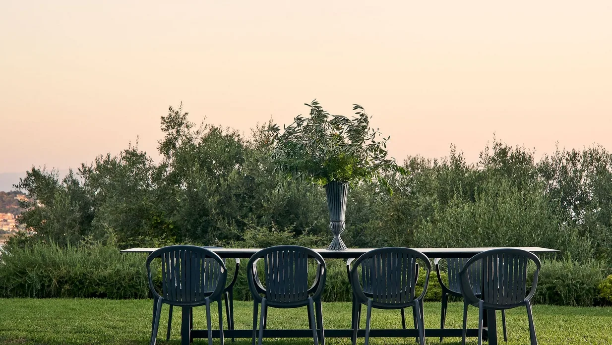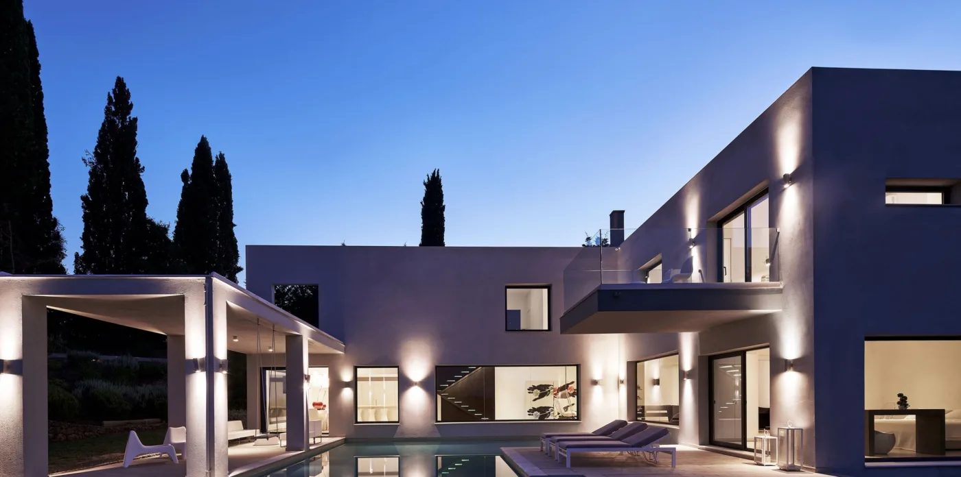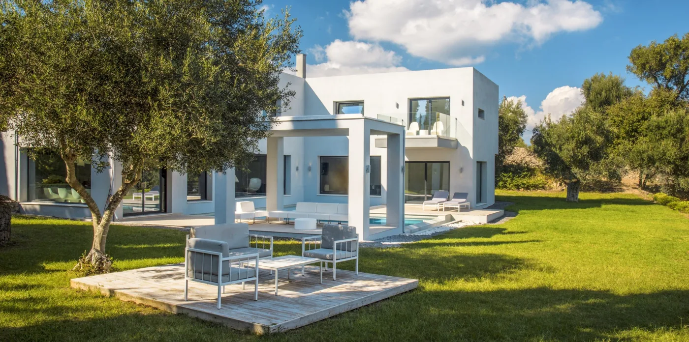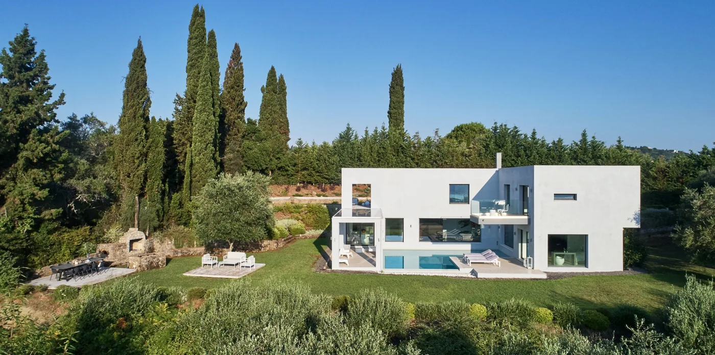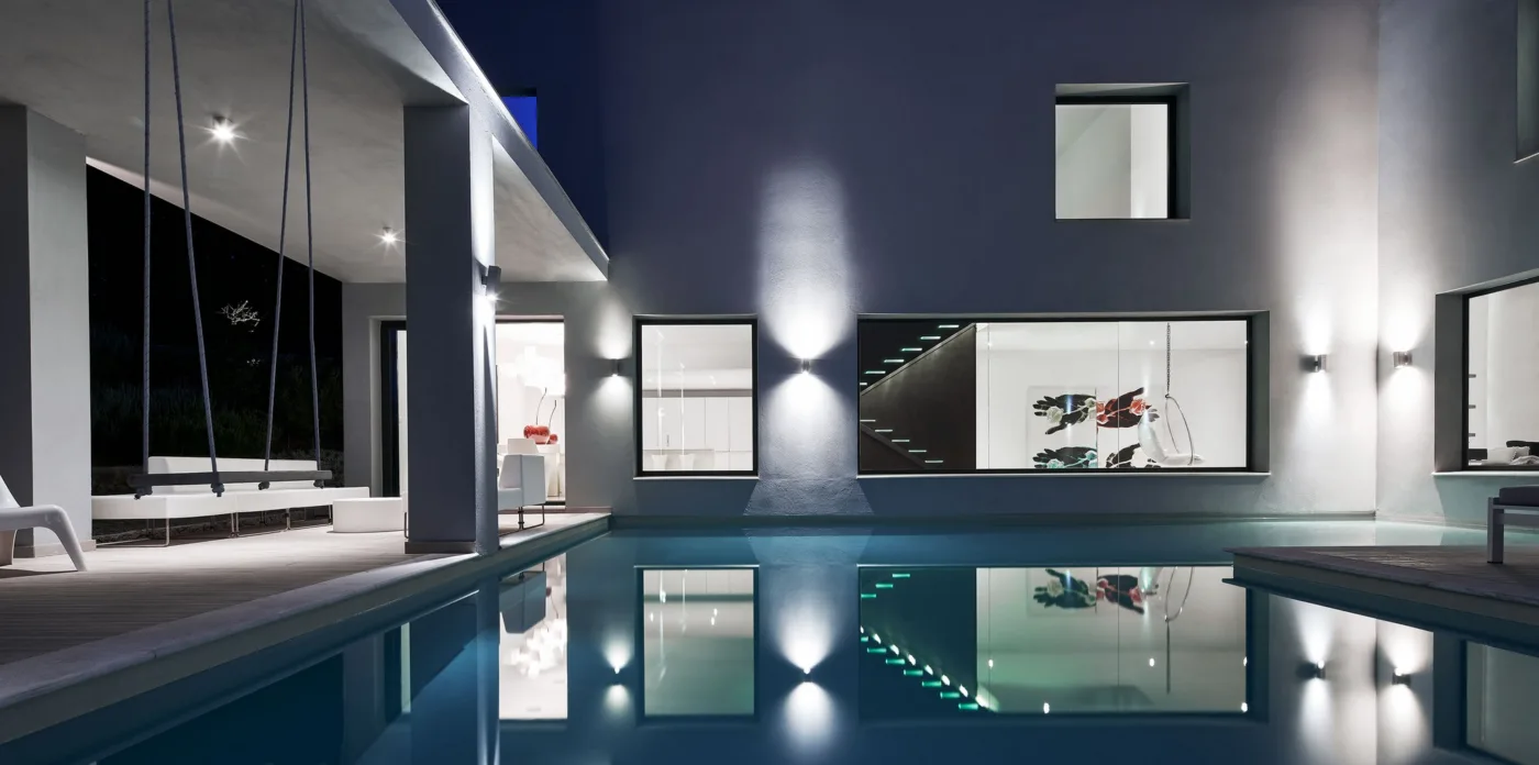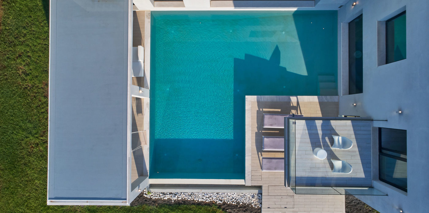 Οι εξωτερικοί χώροι είναι εξίσου εντυπωσιακοί με τους εσωτερικούς, με εκπληκτική ιδιωτική πισίνα σε σχήμα L που περιβάλλεται από ξαπλώστρες, υπαίθριο σαλόνι και σκεπαστή υπαίθρια τραπεζαρία.