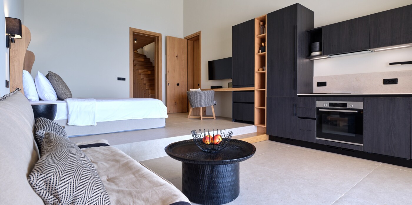Το ανώτερο επίπεδο διαθέτει ανεξάρτητες σουίτες που προσφέρουν την ευελιξία της διασύνδεσης, ιδανικές για τη φιλοξενία μεγαλύτερων ομάδων ή οικογενειών που αναζητούν μια ισορροπία μεταξύ συντροφικότητας και ιδιωτικότητας. Οι σουίτες διαθέτουν άνετους χώρους ύπνου, κομψό μπάνιο, ιδιωτική πισίνα για δροσιστικές βουτιές, ειδική τραπεζαρία και μπάρμπεκιου για φαγητό στο ύπαιθρο. Αυτή η προσεγμένη διαρρύθμιση εξασφαλίζει ότι η οικογένεια και οι φίλοι απολαμβάνουν τη δυνατότητα να επικοινωνούν και να συναναστρέφονται, ενώ παράλληλα έχουν τη δυνατότητα να ξεκουράζονται και να χαλαρώνουν.