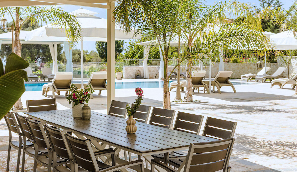 Εξαιρετικοί κήποι περιβάλλουν την ιδιωτική πισίνα 90 τ.μ., που πλαισιώνεται από εκτεταμένες ηλιόλουστες βεράντες, ιδανικές για να απολαύσετε τις μεγάλες καλοκαιρινές μέρες της Κεφαλονιάς. Μια πλήρως εξοπλισμένη κουζίνα δίπλα στην πισίνα και ένα κιόσκι δημιουργούν έναν φιλόξενο χώρο για φαγητό και χαλάρωση στην ύπαιθρο.