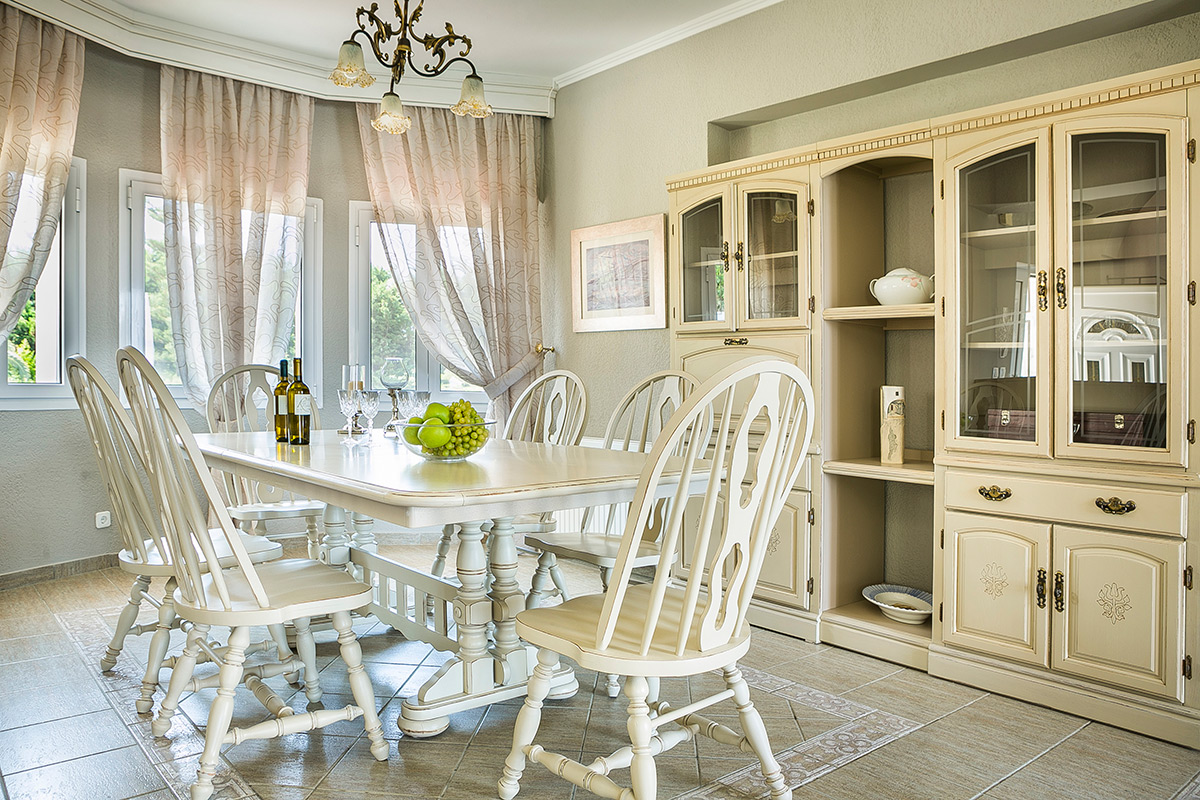 Ο ενιαίος χώρος καθιστικού, με τη ρουστίκ ατμόσφαιρά του, είναι λουσμένος στο φυσικό φως. Ένα εντυπωσιακό τζάκι από τούβλα λειτουργεί ως σημείο εστίασης, ενώ η ουδέτερη διακόσμηση δημιουργεί μια ήρεμη ατμόσφαιρα. Η παρακείμενη τραπεζαρία και η γκουρμέ κουζίνα καταλήγουν άψογα σε μια κλειστή περιοχή μπάρμπεκιου και βεράντας, ιδανική για διασκέδαση. Οι πόρτες βεράντας ανοίγουν στη βεράντα από το καθιστικό, αναδεικνύοντας τη θέα στη θάλασσα.