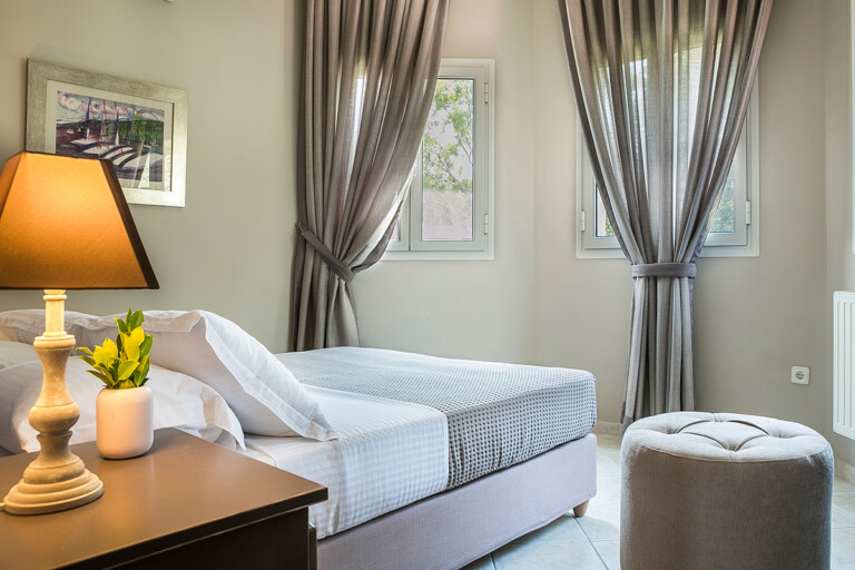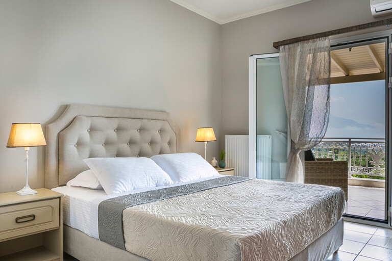 Από κάθε μπαλκόνι, ξεδιπλώνεται πανοραμική θέα στη θάλασσα, το βουνό και τον κήπο.