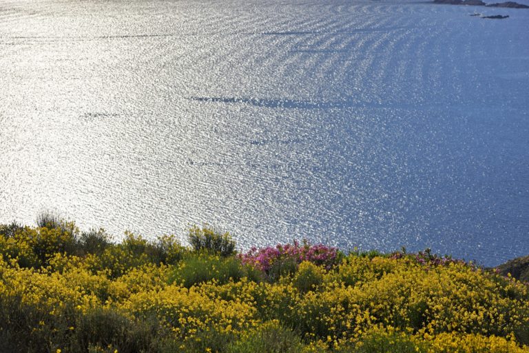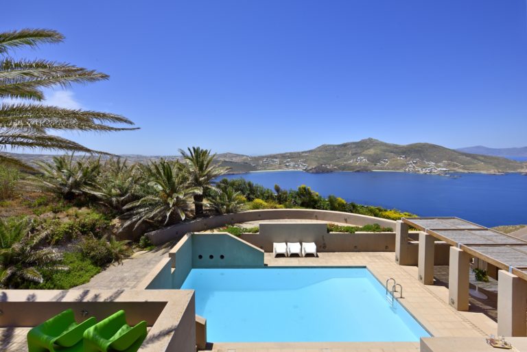 Κατά μήκος του μονοπατιού μιας σπάνιας πηγής γλυκού νερού βρίσκεται το κτήμα Miramare, ένα από τα αληθινά θαύματα της φύσης. Τρία βαθιά πηγάδια εδώ παρέχουν αρκετό νερό για τους δύο αμπελώνες cabernet. Μια όαση ομορφιάς ανάμεσα στο συχνά άγονο κυκλαδίτικο τοπίο, το αρχοντικό σε στυλ κάστρου δεσπόζει από ύψος 130 μέτρων στην κορυφή του λόφου.