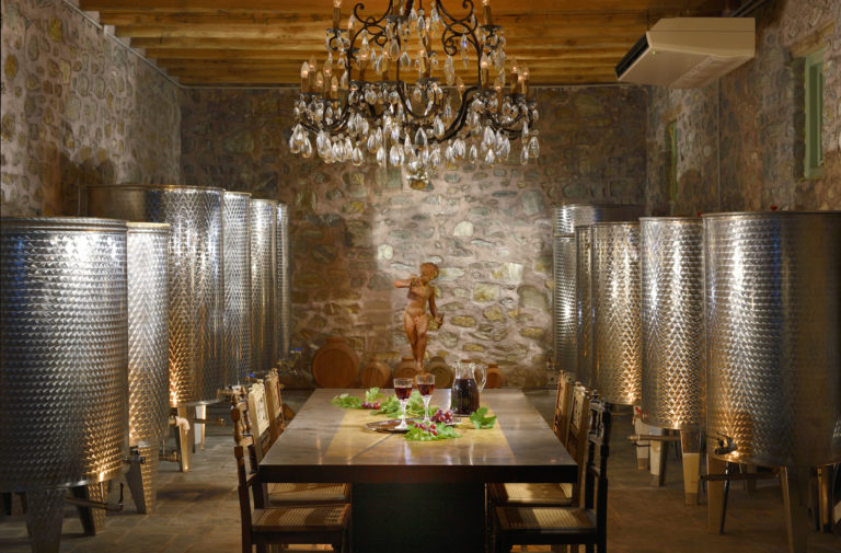 Ένα από τα σημαντικότερα σημεία της βίλας είναι το πέτρινο κελάρι. Τέλεια ελεγχόμενη θερμοκρασία για την αποθήκευση κρασιού σε ιδανικές συνθήκες και για την αποθήκευση των 2000 λίτρων κρασιού που παράγονται εδώ κάθε χρόνο.