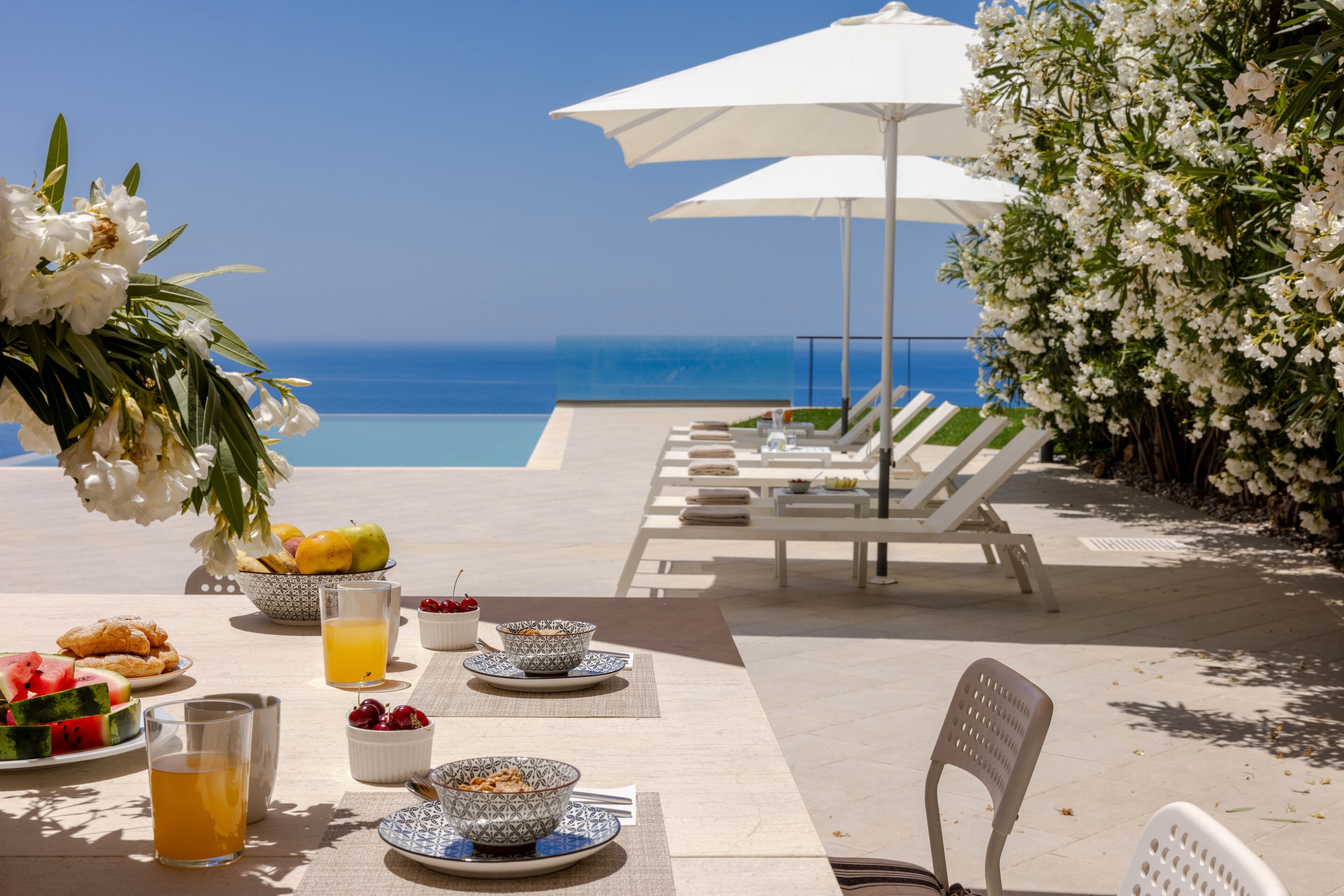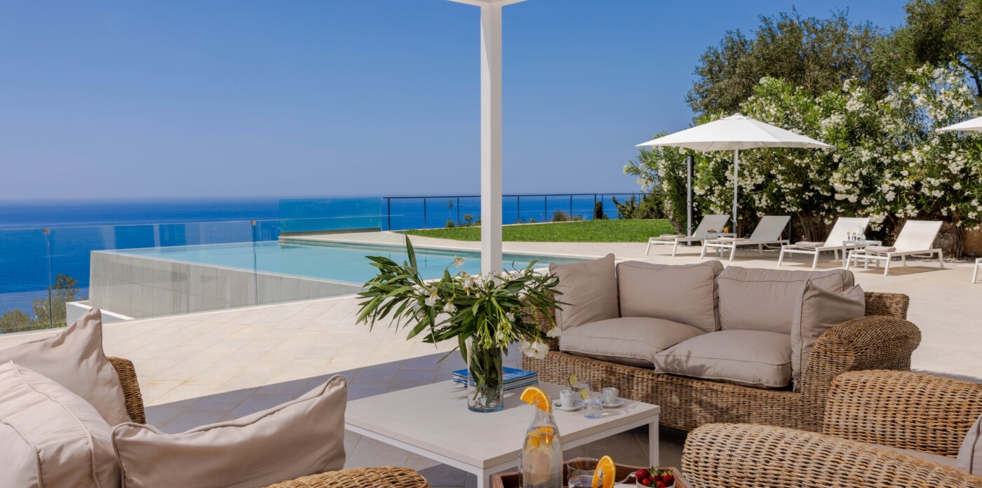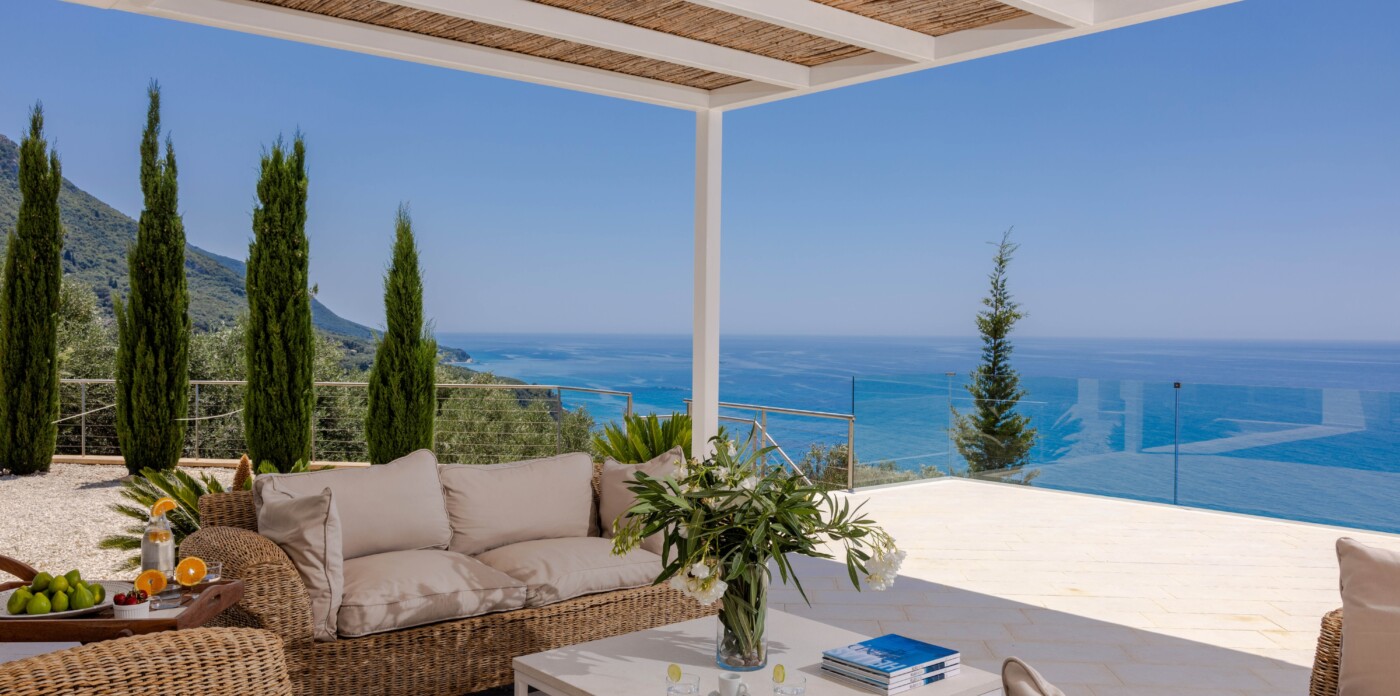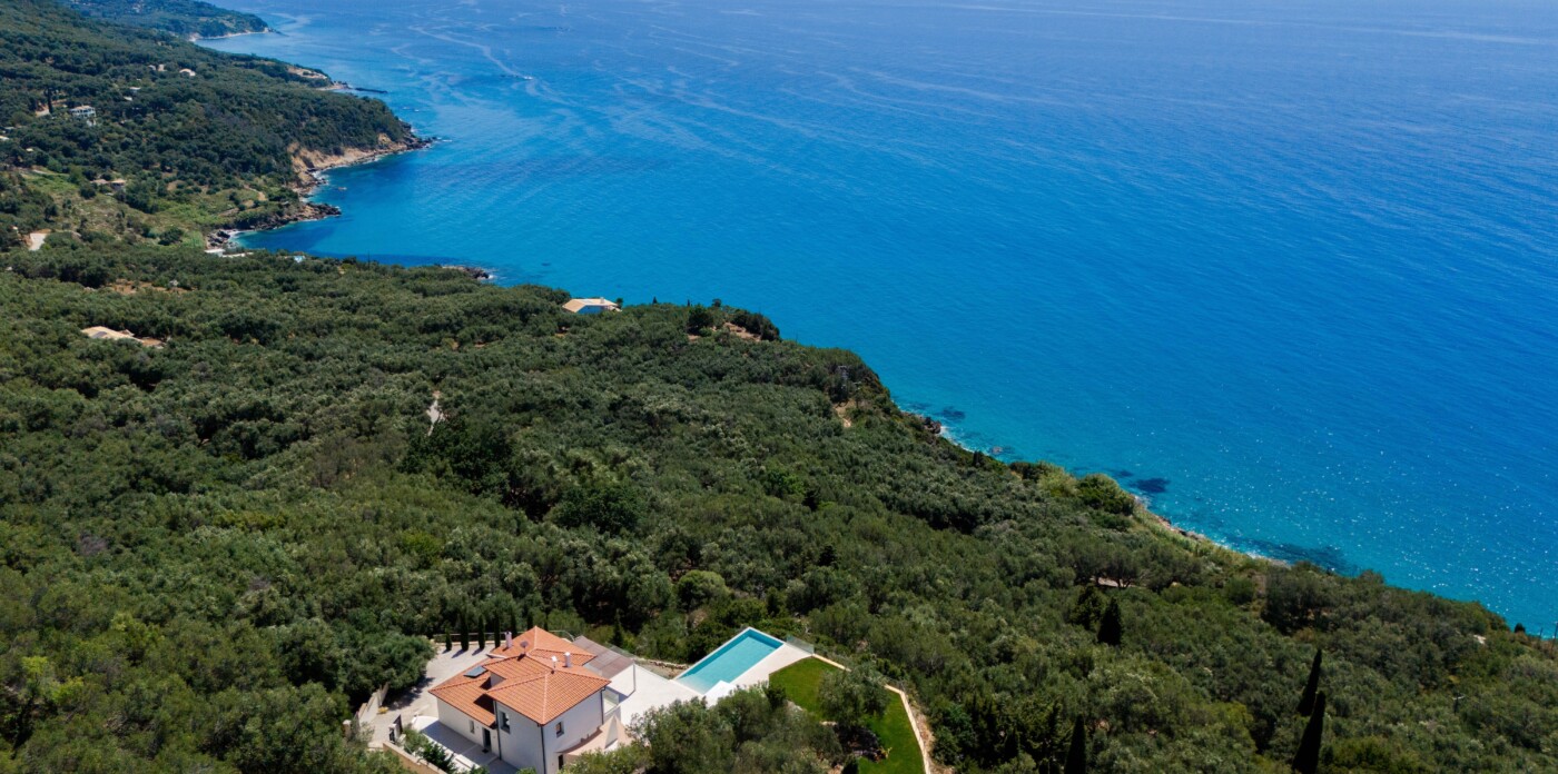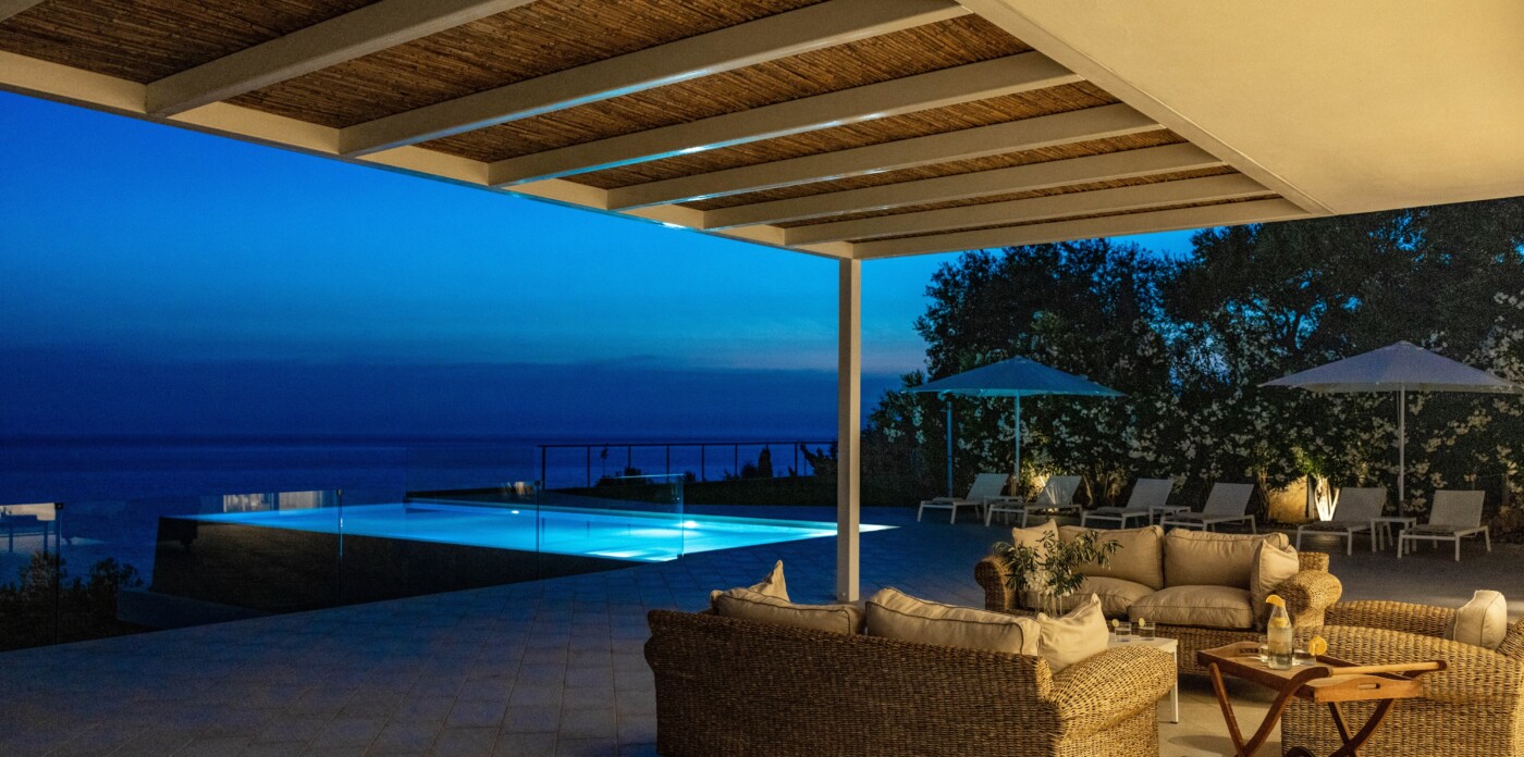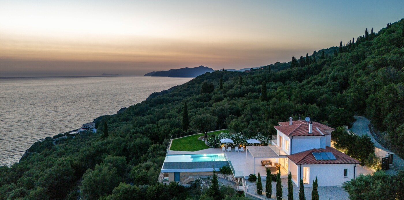 Βρίσκεται στους λόφους της Κέρκυρας, αυτή η όμορφη βίλα προσφέρει μαγευτική θέα στη θάλασσα και τον ουρανό, βαμμένη με όλα τα χρώματα του ηλιοβασιλέματος.
