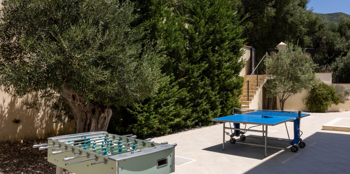 Αυτή η μεγάλη και ευάερη πολυτελής κατοικία προστατεύεται από τα δέντρα και είναι το τέλειο κρυφό καταφύγιο για οικογένειες και φίλους. Διαθέτει άνετους χώρους διαβίωσης, όπως ένα ευρύχωρο σαλόνι, τραπεζαρία και μεγάλες βεράντες που πλαισιώνουν την πισίνα. Οι εκλεπτυσμένοι εσωτερικοί χώροι είναι διακοσμημένοι με μίνιμαλ τρόπο, που διακρίνει αυτή τη βίλα ως ένα μέρος με στυλ και κομψότητα. Το ακίνητο διαθέτει αρκετά μπαλκόνια και βεράντες, ιδανικές για