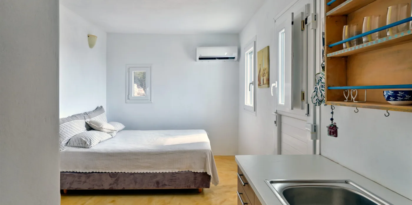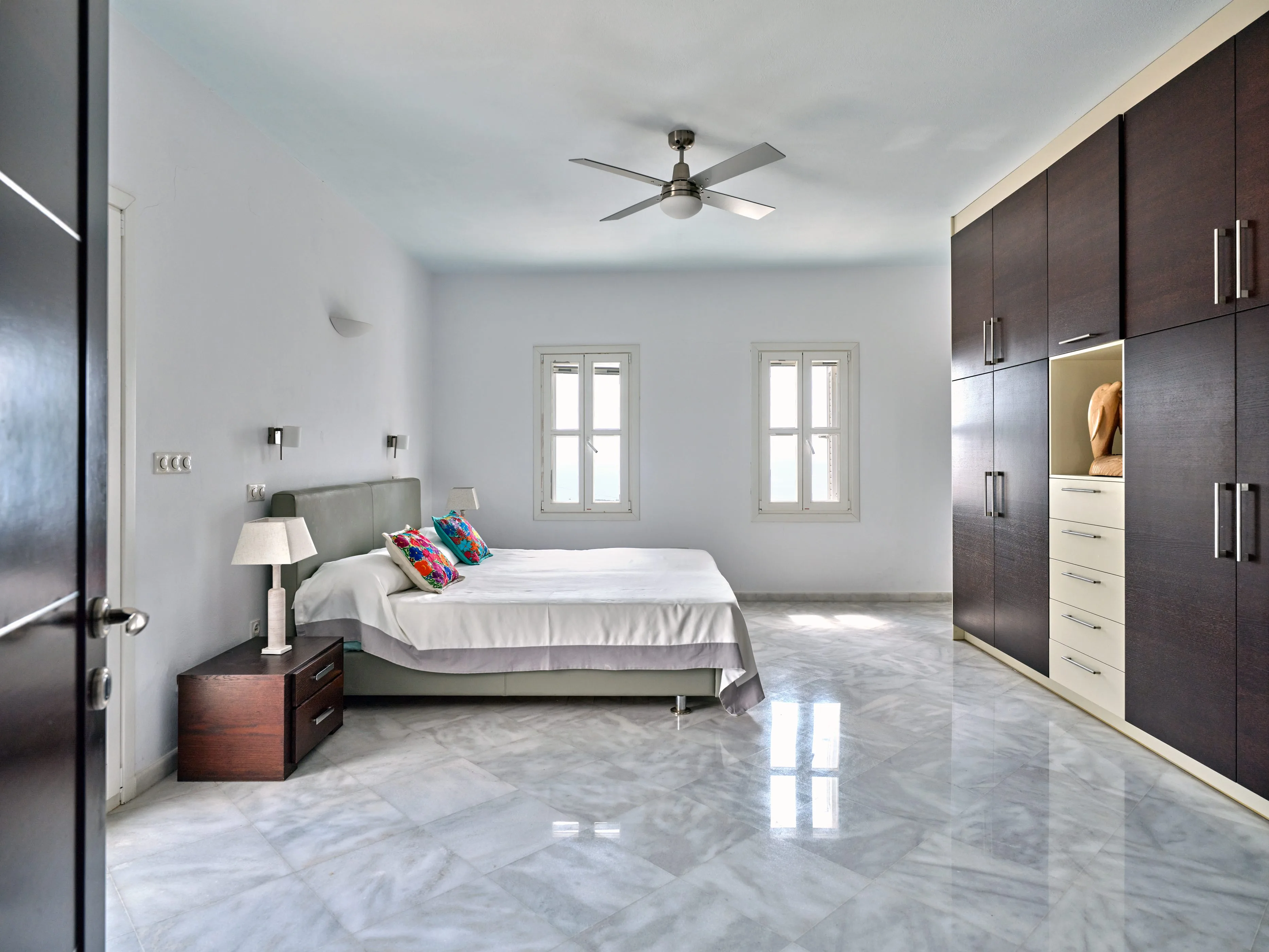 Τρία ευρύχωρα υπνοδωμάτια με ιδιωτικό μπάνιο προσφέρουν απλή αλλά καλόγουστη διακόσμηση, υπέροχη θέα στη θάλασσα και άμεση πρόσβαση στην πισίνα. Στο ανώτερο επίπεδο βρίσκεται το κύριο υπνοδωμάτιο που προσφέρει πρόσβαση σε ιδιωτική βεράντα. Επιπλέον, υπάρχει μια ανεξάρτητη σουίτα επισκεπτών που είναι διαθέσιμη εντός του χώρου, παρέχοντας ευκολία στους επισκέπτες να έχουν ένα ξεχωριστό μέρος για να μείνουν.