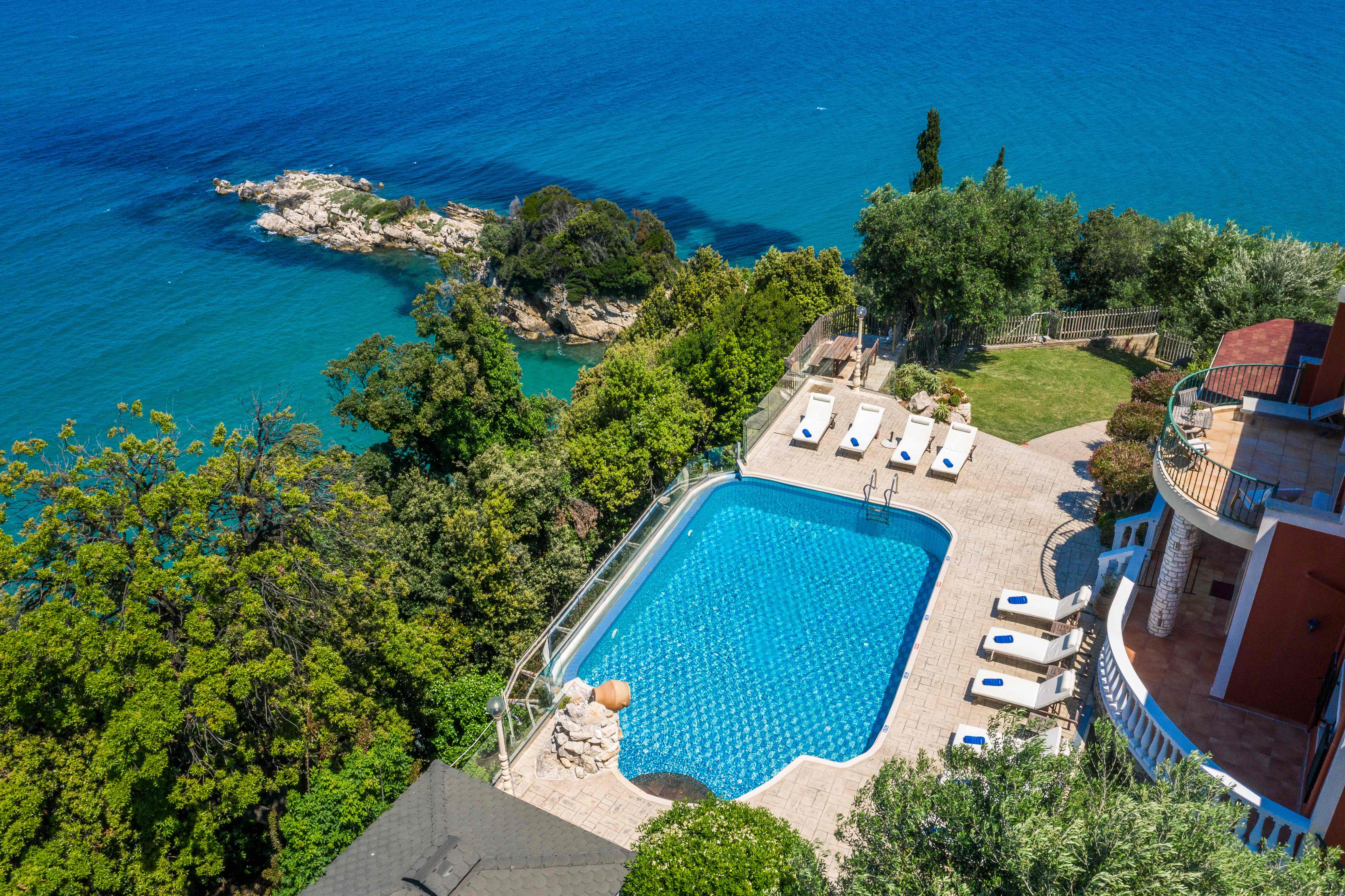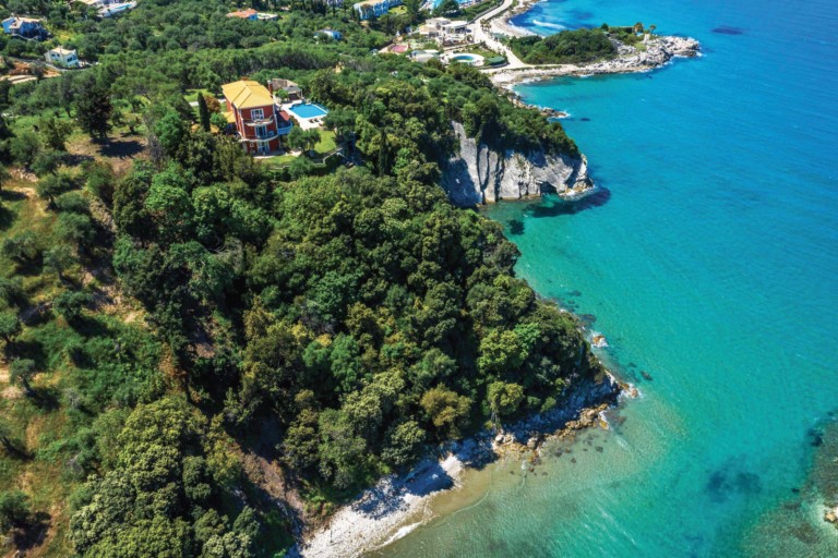 Αυτή η εξαιρετική βίλα βρίσκεται στον Άγιο Σπυρίδωνα, στη βορειοανατολική ακτογραμμή της Κέρκυρας, και επωφελείται από την εκπληκτική θέα στη θάλασσα και την εγγύτητα σε δύο όμορφες ιδιωτικές παραλίες.