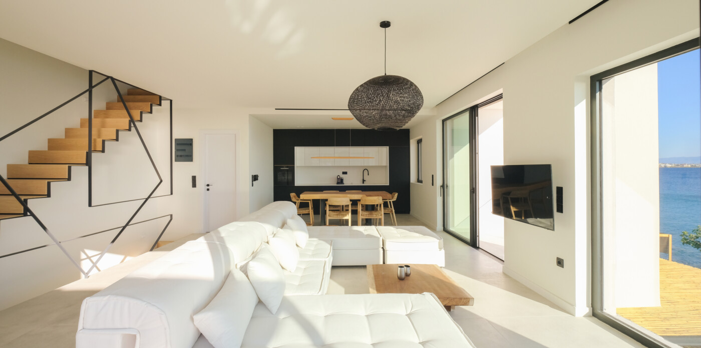 Μπείτε στο κομψό καθιστικό και την τραπεζαρία του ισογείου και απολαύστε τον άψογο σχεδιασμό και την εξαιρετική θέα. Η ανοιχτή κουζίνα ενσωματώνεται τέλεια στο χώρο. Ο κομψός σχεδιασμός και η διάταξη δημιουργούν μια ομαλή μετάβαση από την τραπεζαρία στην περιοχή μαγειρέματος.