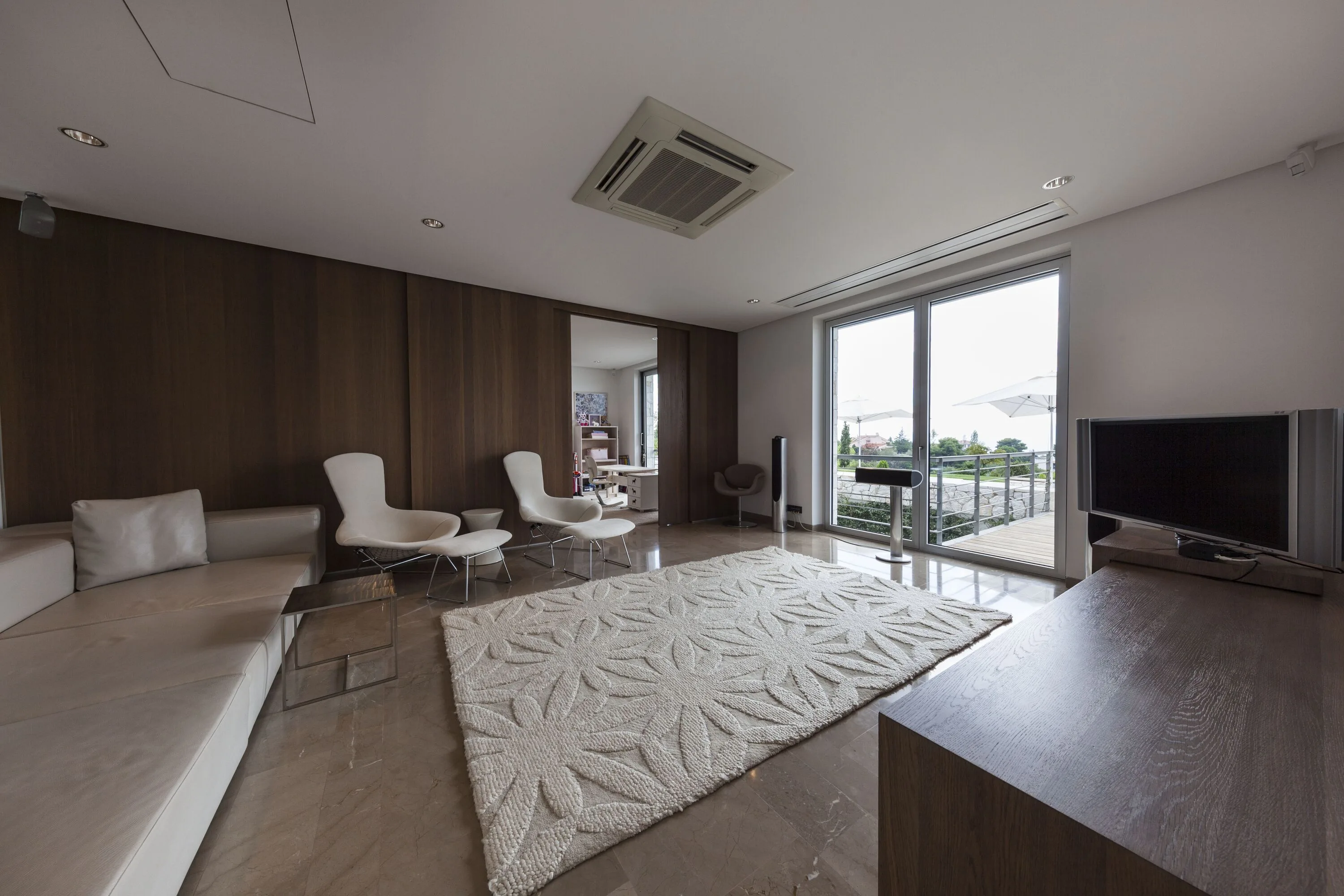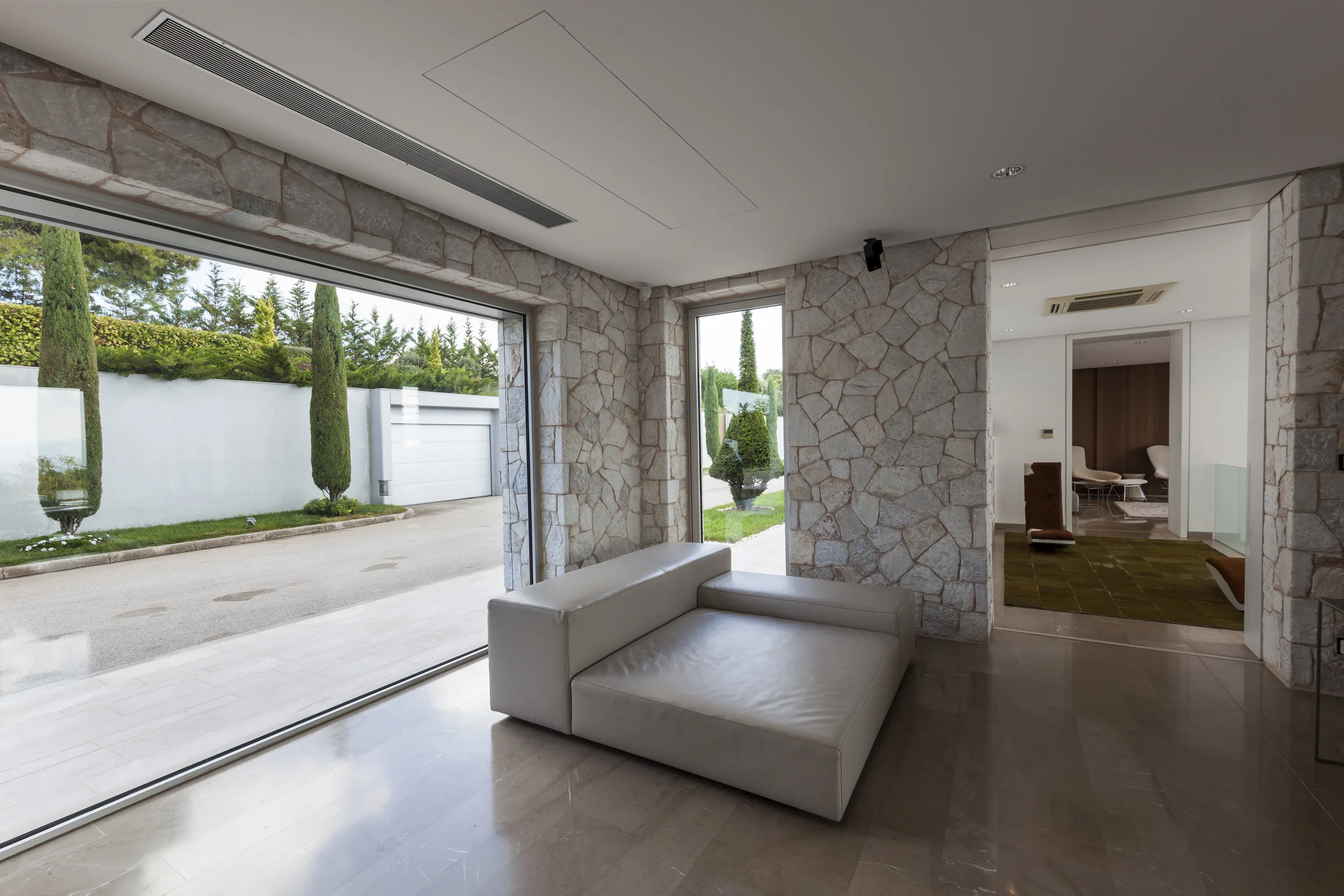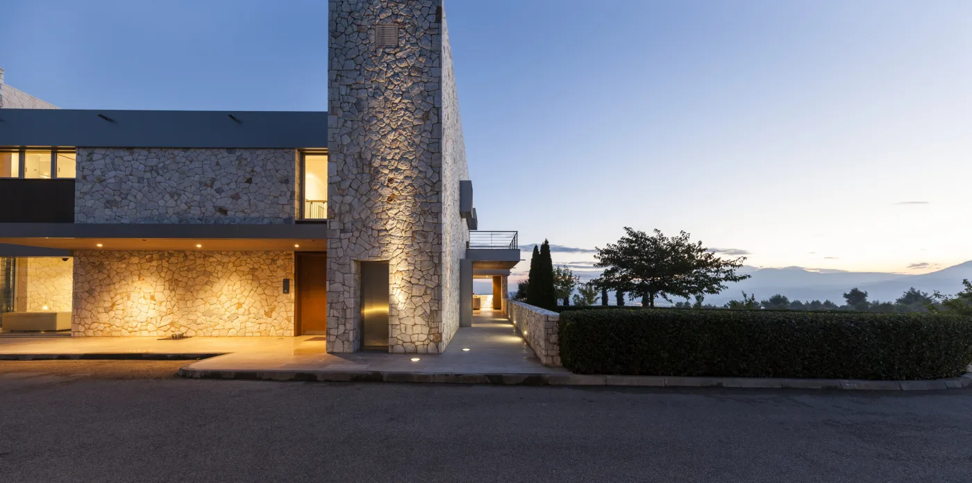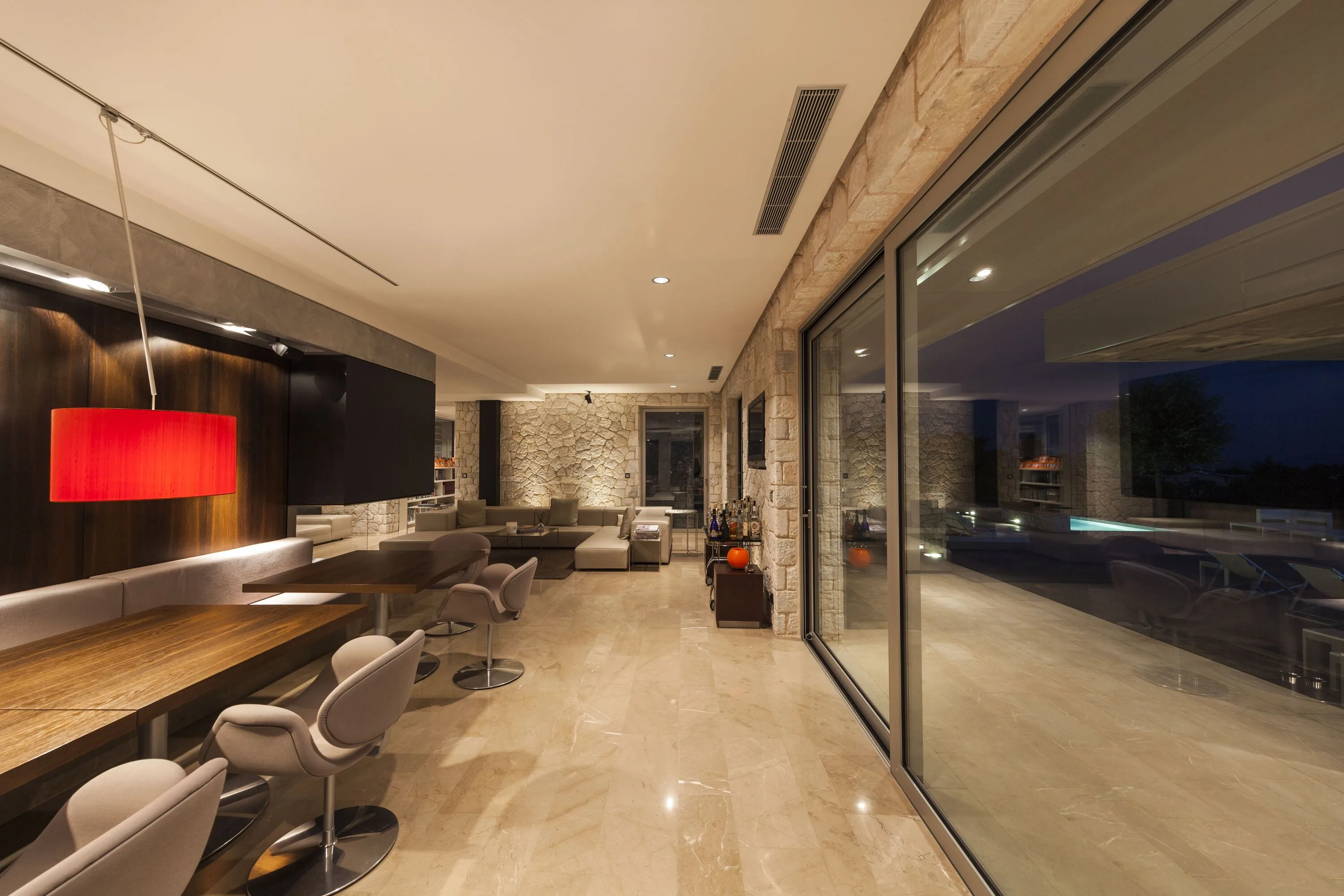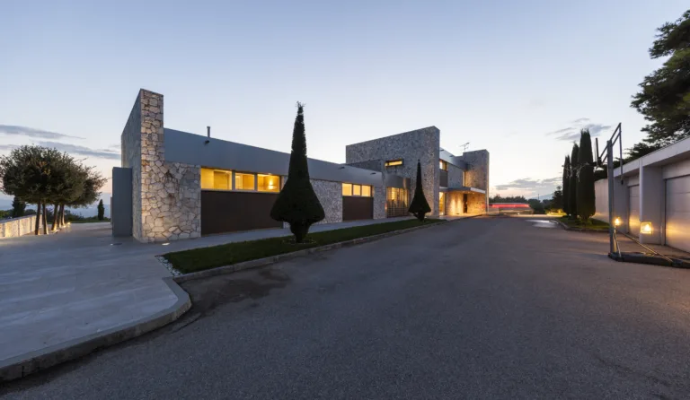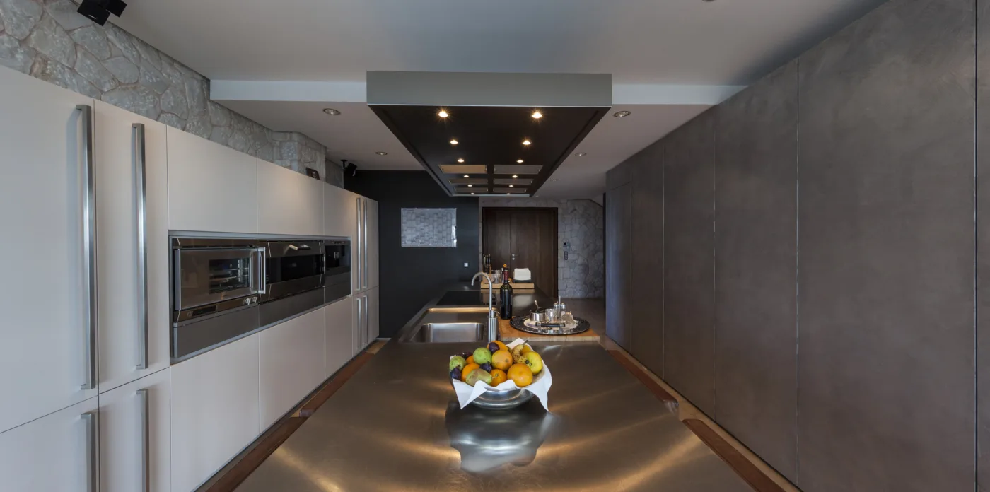 Το ευρύχωρο εσωτερικό των δύο ορόφων του σπιτιού διαθέτει καθιστικά, τραπεζαρία, ένα κύριο υπνοδωμάτιο με γκαρνταρόμπα, δύο επιπλέον υπνοδωμάτια με μπάνια, μια βιβλιοθήκη και ένα γραφείο. Η κουζίνα ανοίγει στην τραπεζαρία της πισίνας και στην εξωτερική κουζίνα μπάρμπεκιου, πλήρως εξοπλισμένη με σύγχρονες συσκευές.