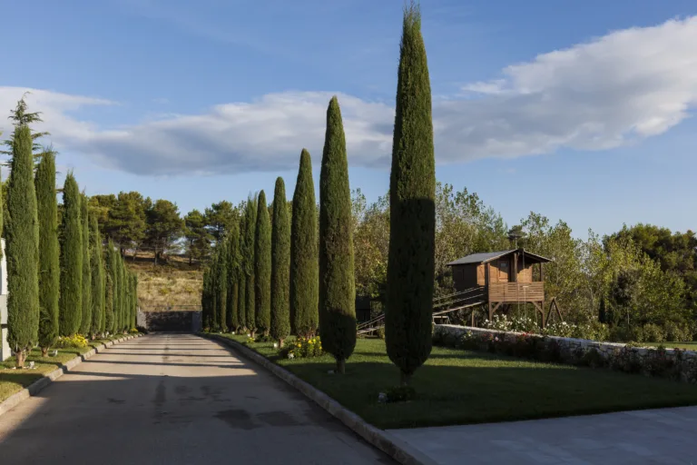 Μπορείτε να χαλαρώσετε στους διαμορφωμένους κήπους ή να διασκεδάσετε στο υπαίθριο καθιστικό και την τραπεζαρία. Το ακίνητο περιλαμβάνει 11.500 τ.μ. γης που έχει καλλιεργηθεί τέλεια με λουλούδια, δέντρα, αμπέλια, ακόμη και ένα δεντρόσπιτο κοντά στην είσοδο.