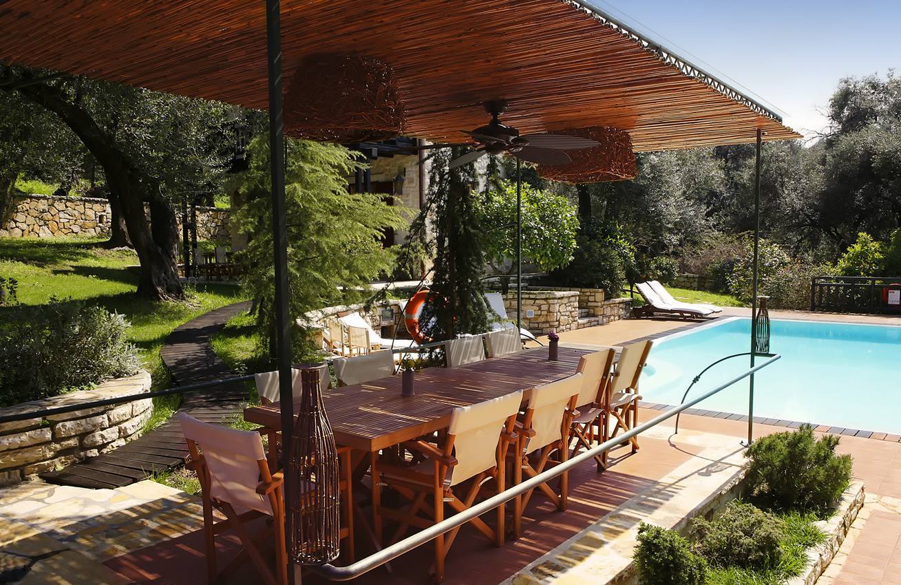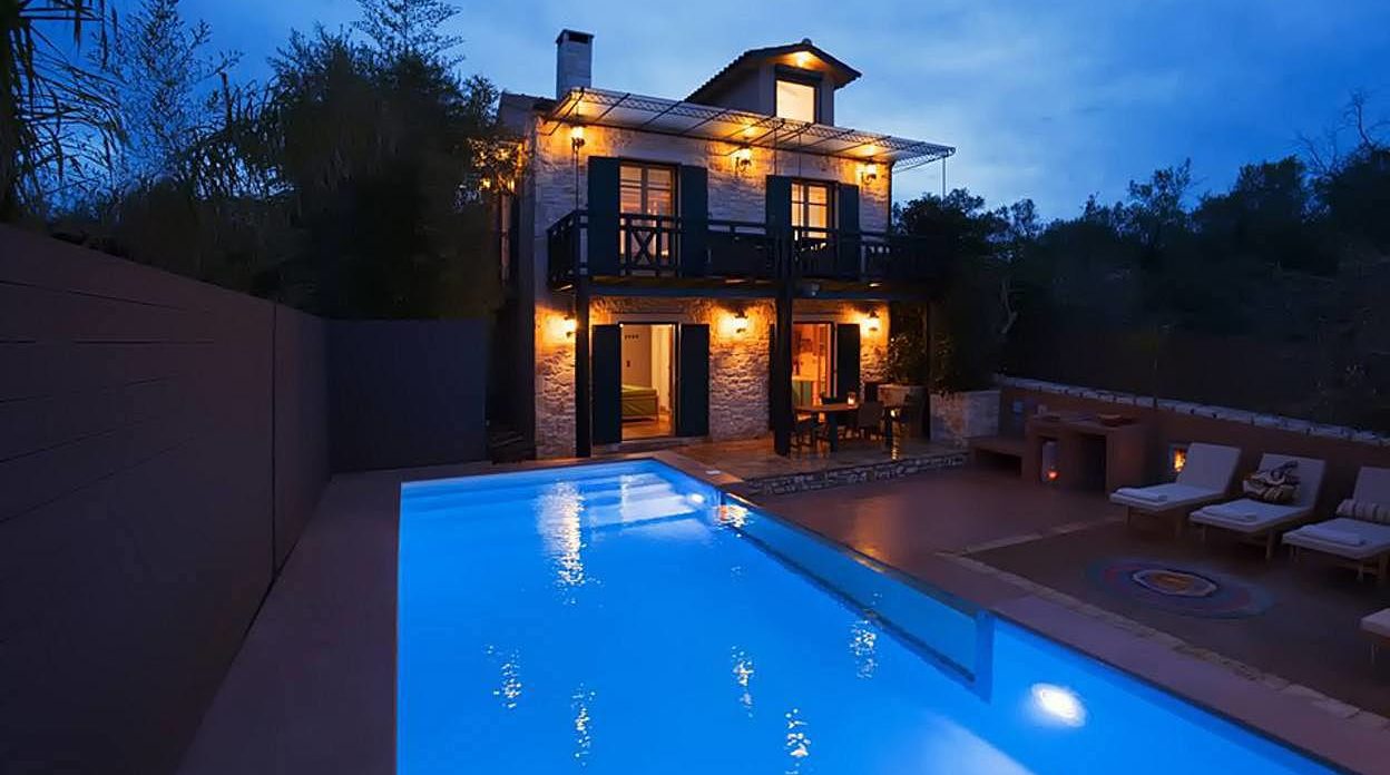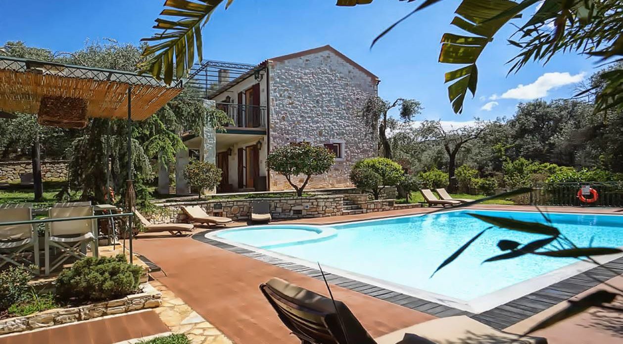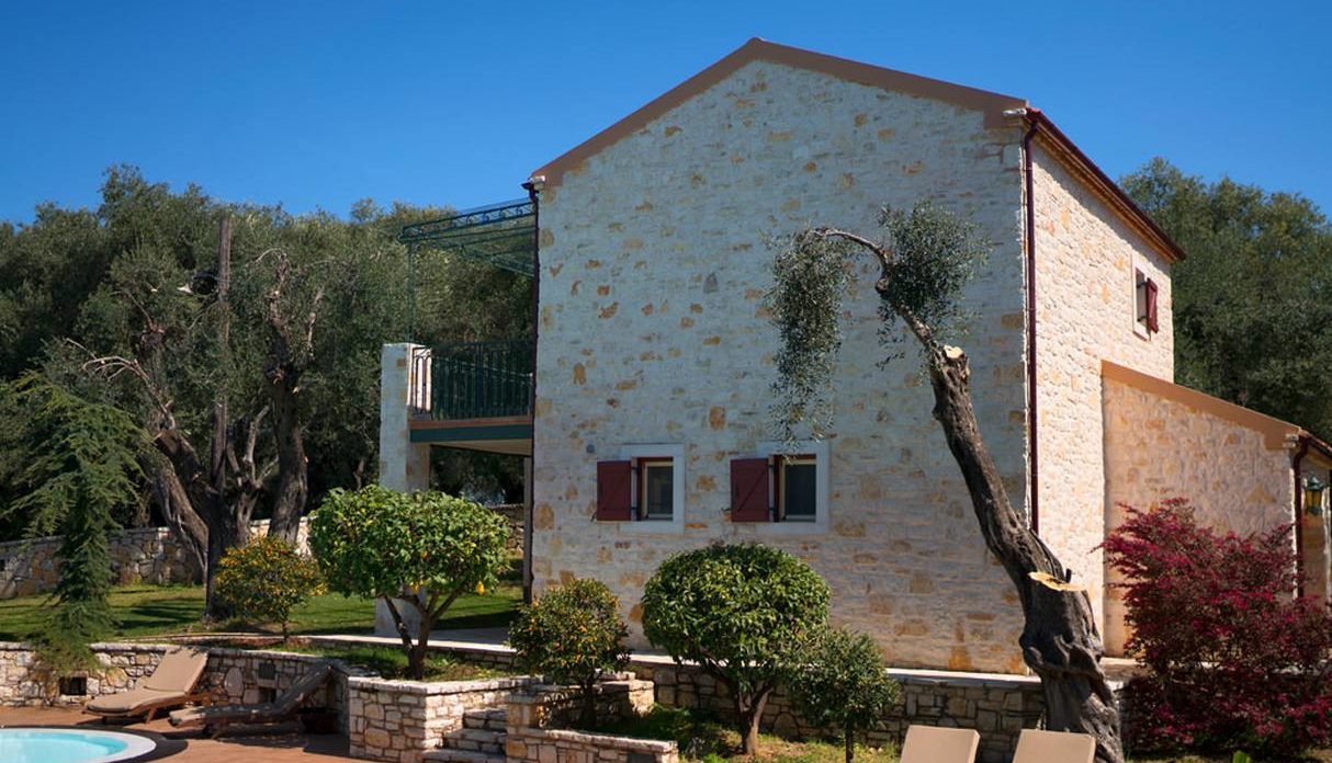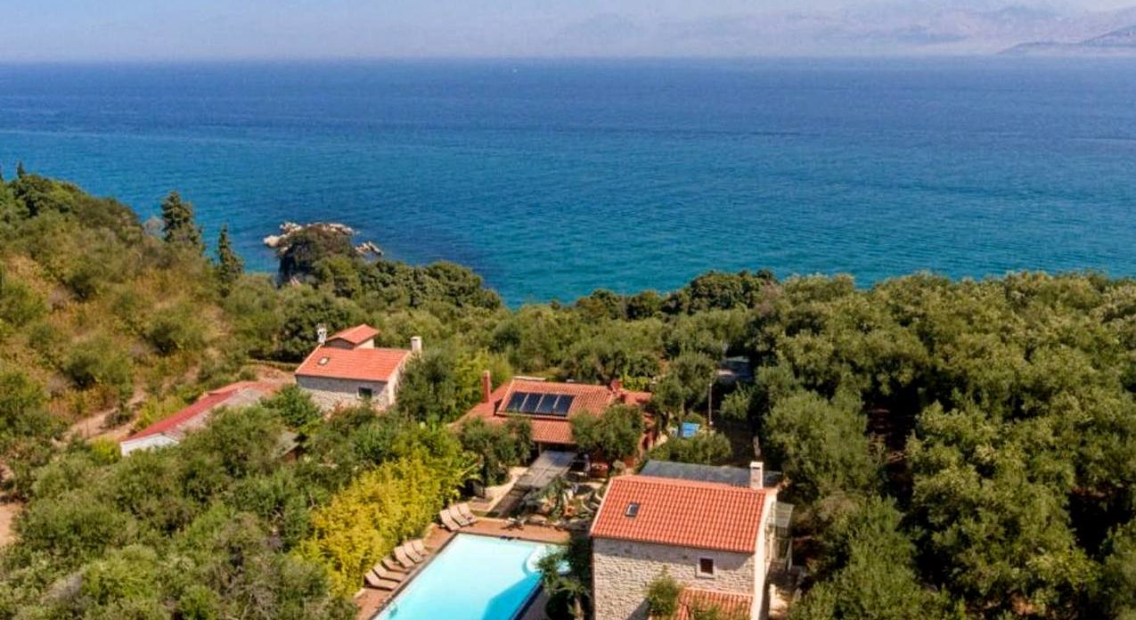 Αυτό το μοναδικό, προς πώληση κτήμα με θέα στη θάλασσα βρίσκεται σε μια απομονωμένη πλαγιά, ανάμεσα σε καταπράσινους ελαιώνες. Το κτήμα αποτελείται από ένα μικρό χωριουδάκι με ακίνητα, όλα παραδοσιακής κερκυραϊκής αρχιτεκτονικής, τα οποία συνδυάζονται αρμονικά με τη σύγχρονη αισθητική. Αποτελείται από 1 βίλα, 2 μπανγκαλόου και ένα ξεχωριστό εξοχικό που περιβάλλεται από έναν όμορφο κήπο με πισίνα. Η παραλία του Αγίου Σπυρίδωνα απέχει μόλις 500 μέτρα. Ένα μικρό πέτρινο μονοπάτι οδηγεί από την ιδιοκτησία απευθείας σε μια μικρή , πολύ απομονωμένη παραλία.